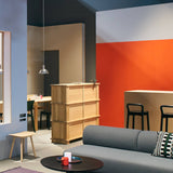 Here's a good argument for staying on the grid. With the Colour Stool, design superstars Scholten & Baijings pair their signature linear legerdemain with the heritage craftsmanship of Japanese cult brand Karimoku New Standard. The grid lines on this stool are fine indentations, spray-painted and then sanded away so that the bright hue remains only in the grooves. And the graceful curve of the seat as well as the anchoring joinery reflect time-honored standards of exacting workmanship. Realized in either warm or cool tones of whitewashed itaya, the prized Japanese maple, with corresponding pink or blue accent tones. Handy and compact, yet it packs a big decorative punch in spaces both small and large.