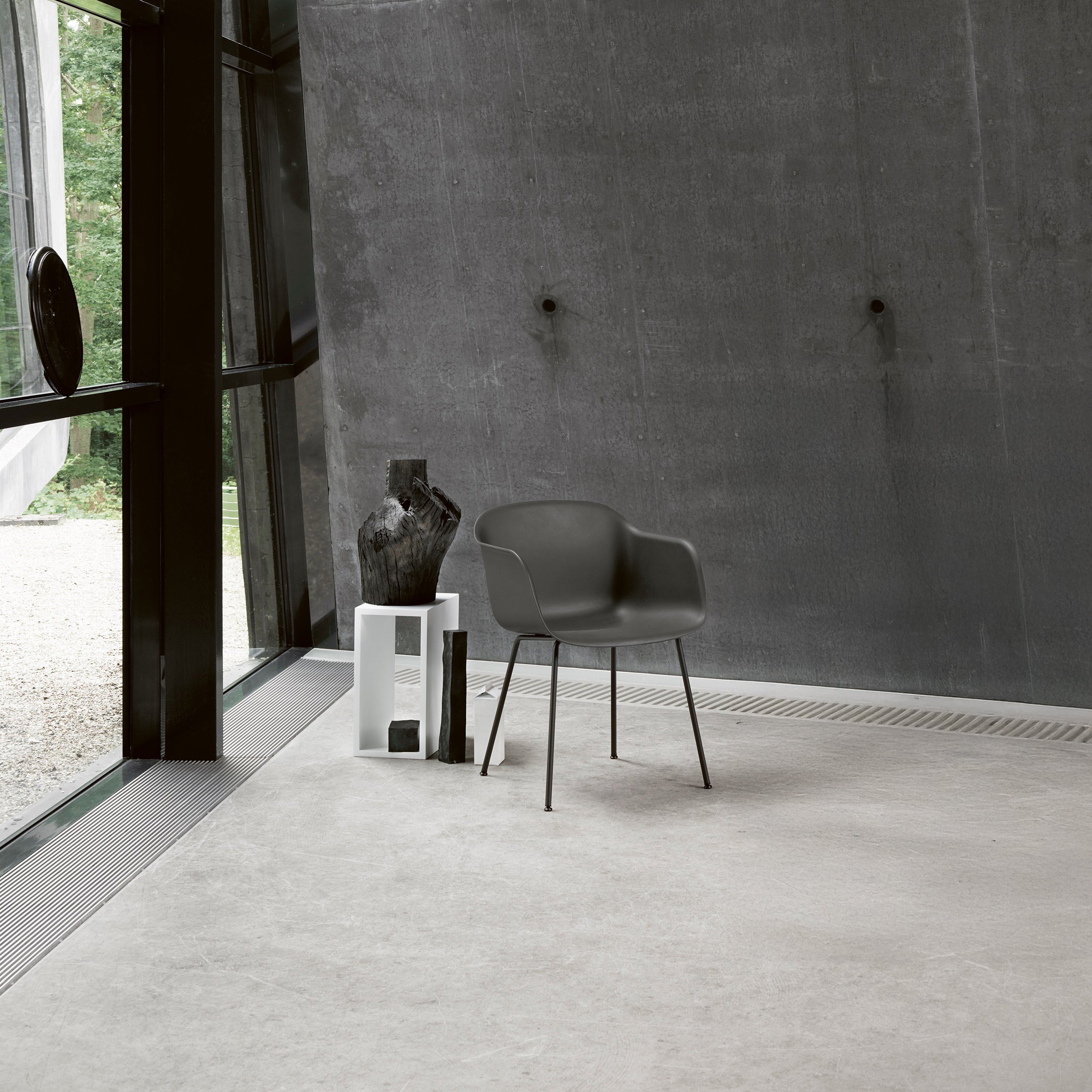This minimalist tube-base chair sets the standard for commonality in the Fiber collection, Muuto's rethinking of classic shell seating in an innovative composite of plastic and wood fibers. With a textured matte surface and inviting touch, it displays a versatility that suits multiple settings. As its designers at Copenhagen-based Iskos-Berlin explain, Fiber also embodies a "clear sculptural language that refuses to compromise on comfort.
