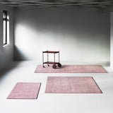 The Flick Rug is made from 100% recycled post-consumer PET yarn, repurposing plastic waste into a soft and durable floor covering. The yarn is spun from short textile fibers, creating a fine material that resists shedding and is easy to maintain. Featuring a subtle, mottled pattern, the rug is available in sand, dark grey, and versions with hints of green and blue. It comes in 3 sizes to fit different spaces.