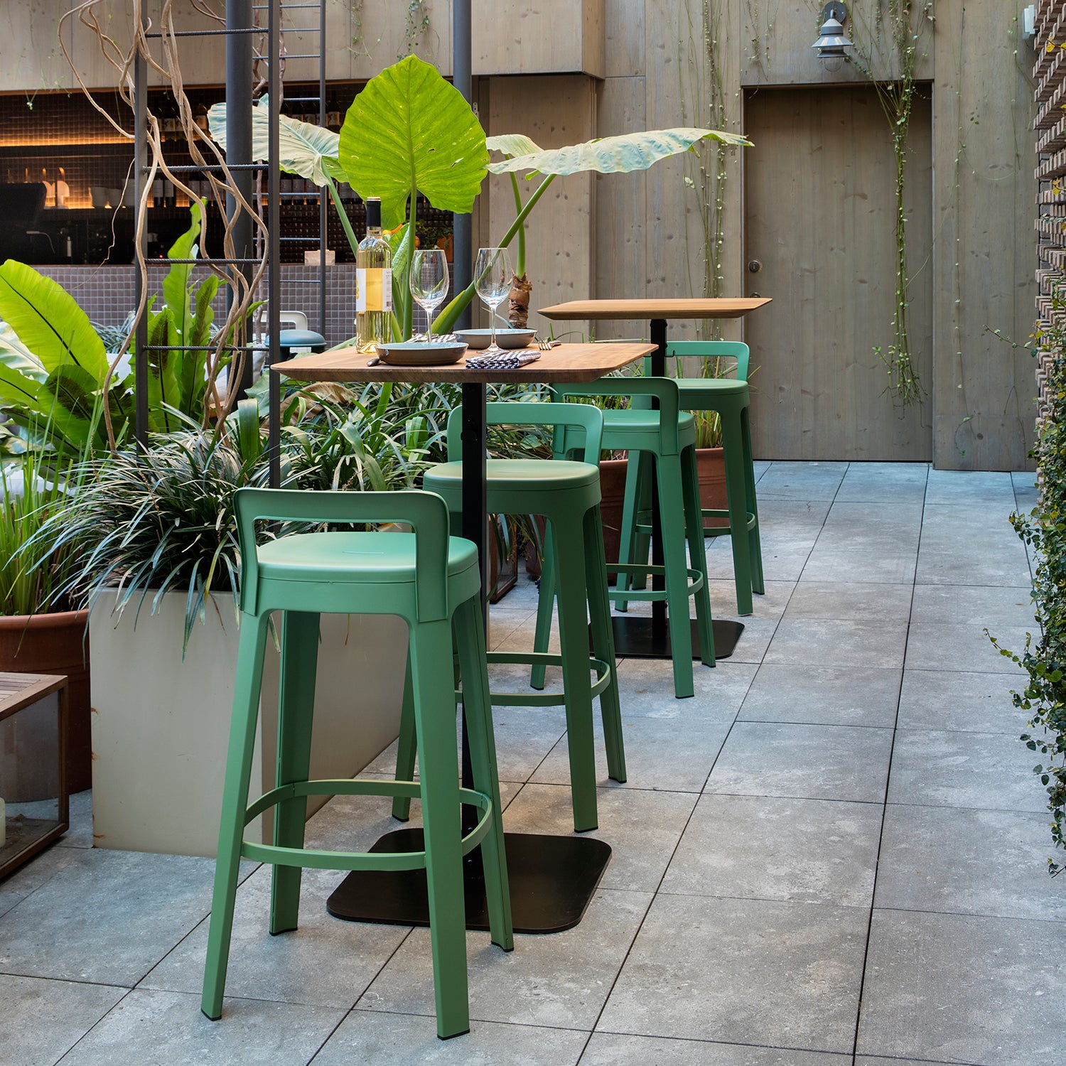 Adding a low backrest complements the "hang out" factor of RS Barcelona's sleek Ombra. In bar or counter version, the stool aptly reflects its name—which means "shadow"—with a sleek design that makes it pleasingly ubiquitous. Crafted in lightweight but sturdy steel, it's finished with a tough polyester-paint electro-coating. Emiliana Studio built hours of comfort into the design DNA, by way of generous proportions and an ergomatically contoured seat.