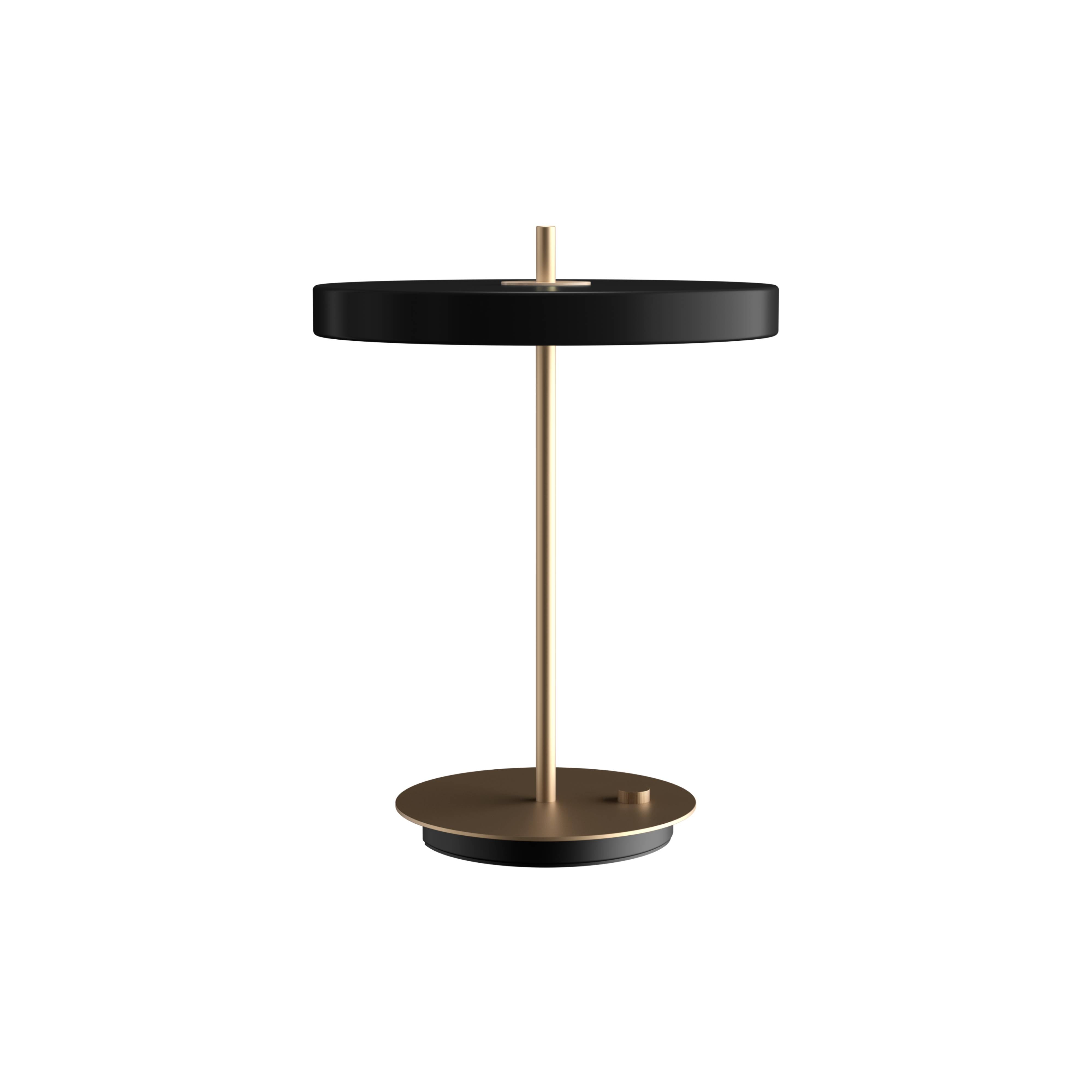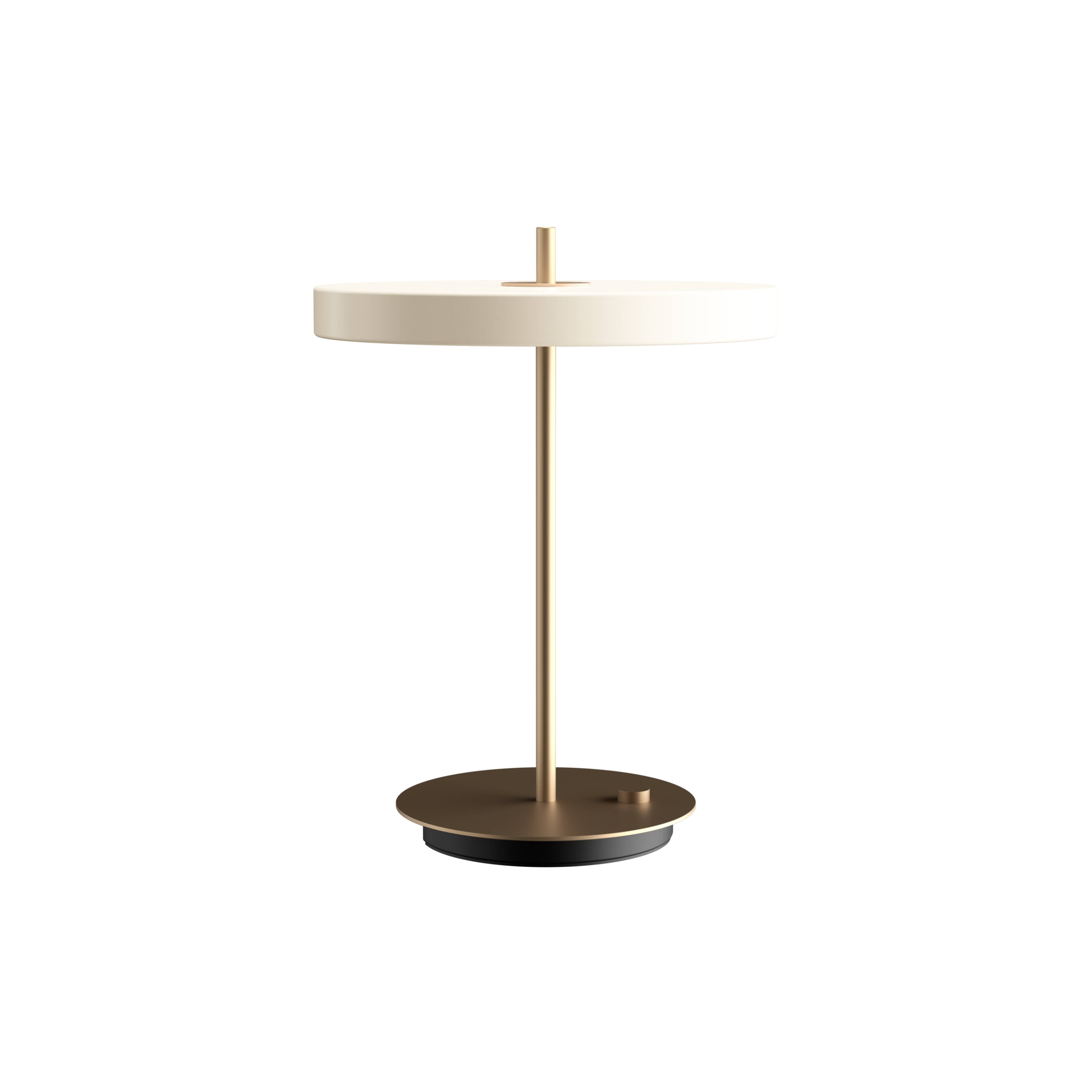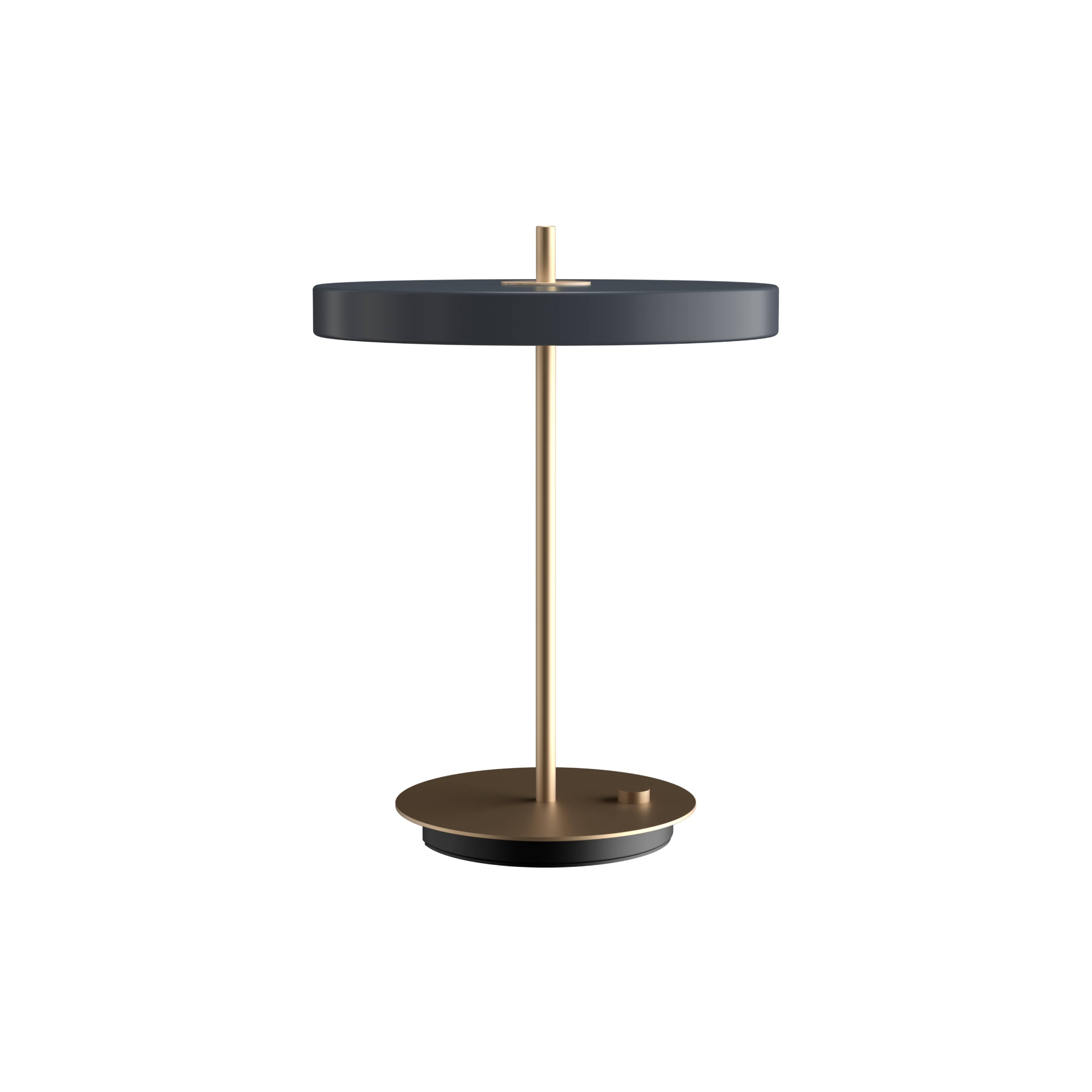 With the convenience of a hidden USB port to charge a phone even when the light is turned off, Umage adapts its minimalist Asteria as an essential desk or table lamp. It features a built-in LED panel with a white diffuser that ensures soft, even illumination in a strikingly minimalist design from Umage cofounder Sřren Ravn Christensen. Available in a range of colors with a brass stem and base to underscore its tight and sleek expression.