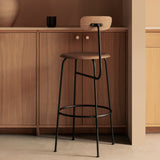Find exceptional comfort with the Afteroom Bar and Counter Chair, featuring a wide wood veneer backrest and a generously upholstered seat. Designed by the Stockholm-based Afteroom Studio, this chair reflects their dedication to creating timeless products that gain value over time. Its minimalist design, characterized by clean lines and a sturdy powder-coated steel frame, ensures long-lasting durability.