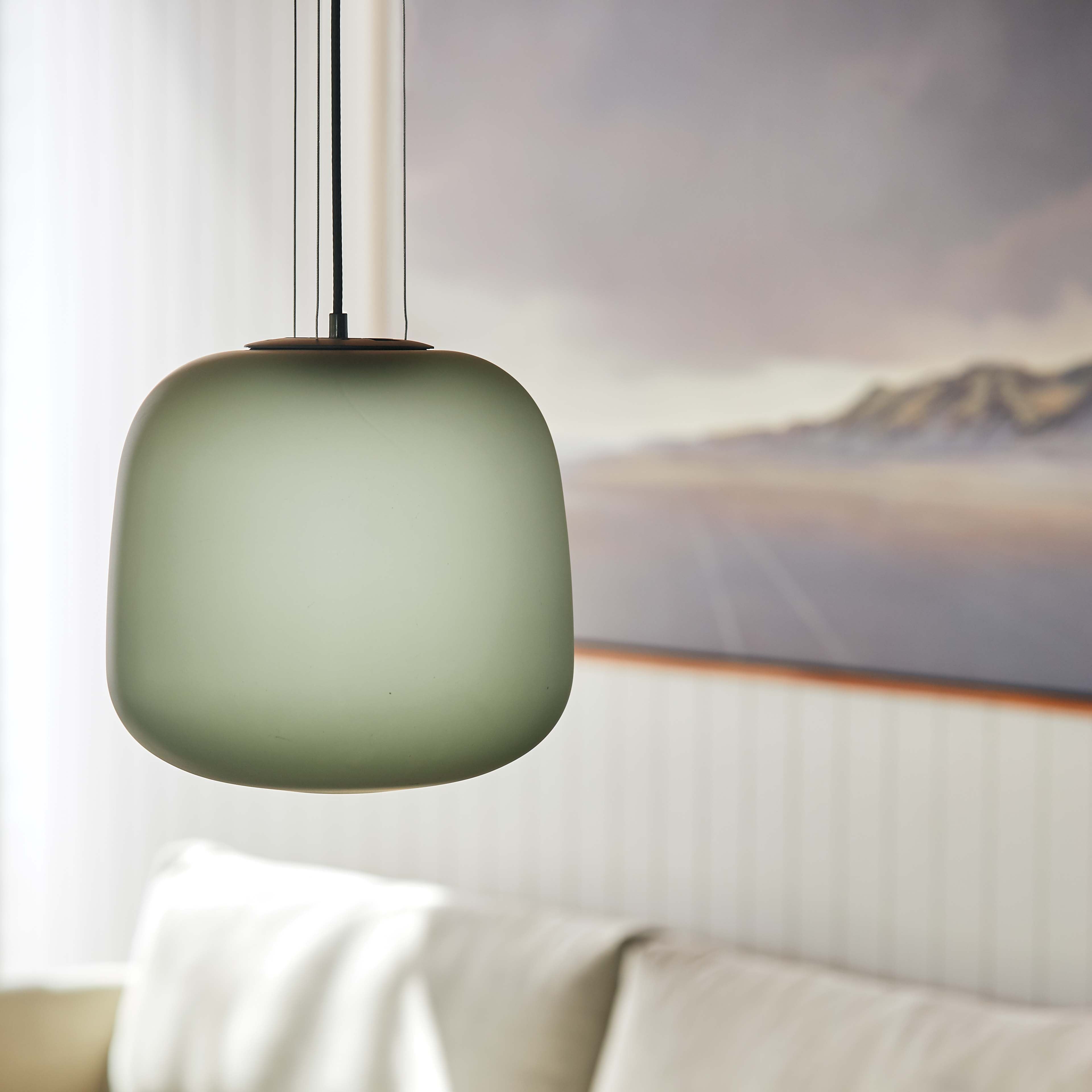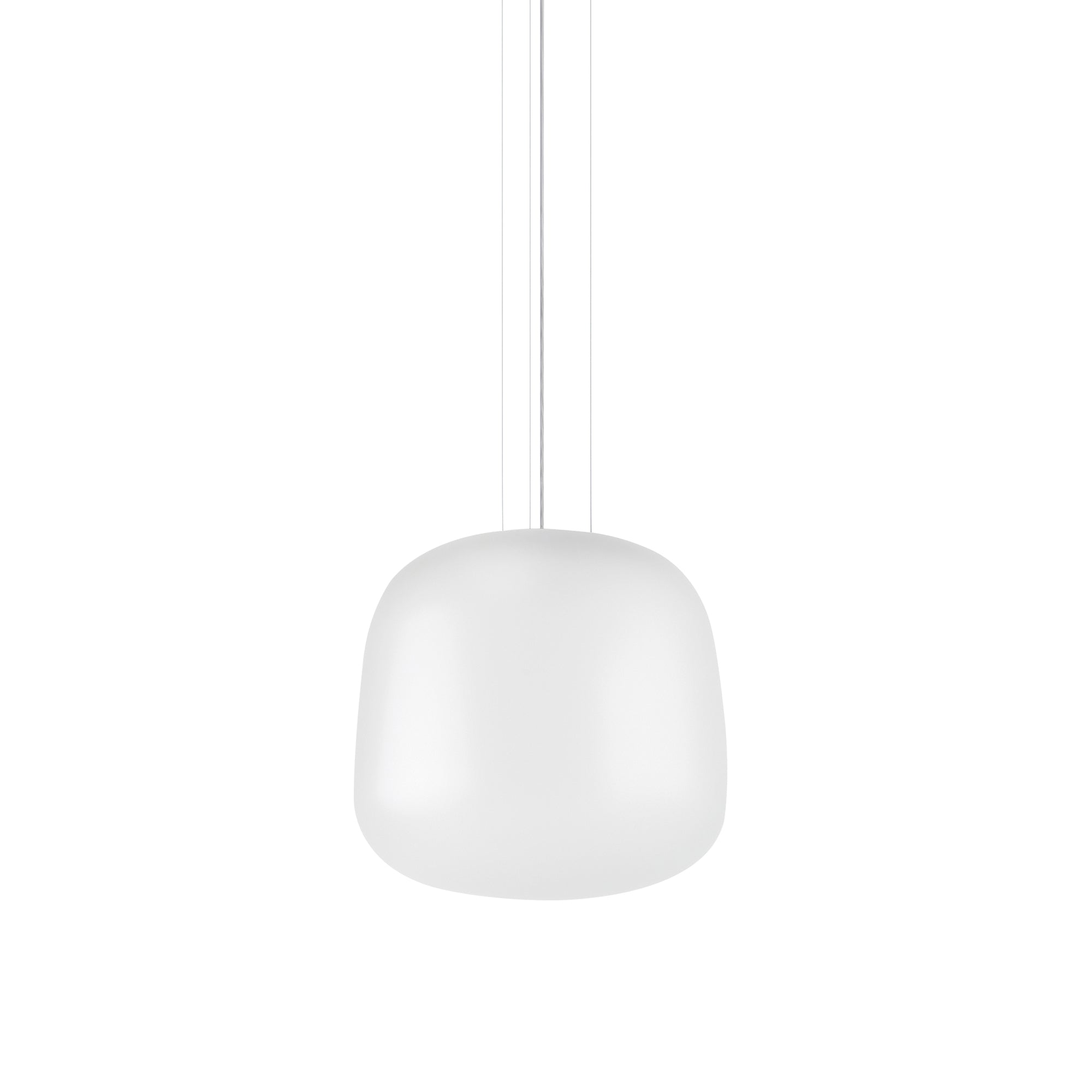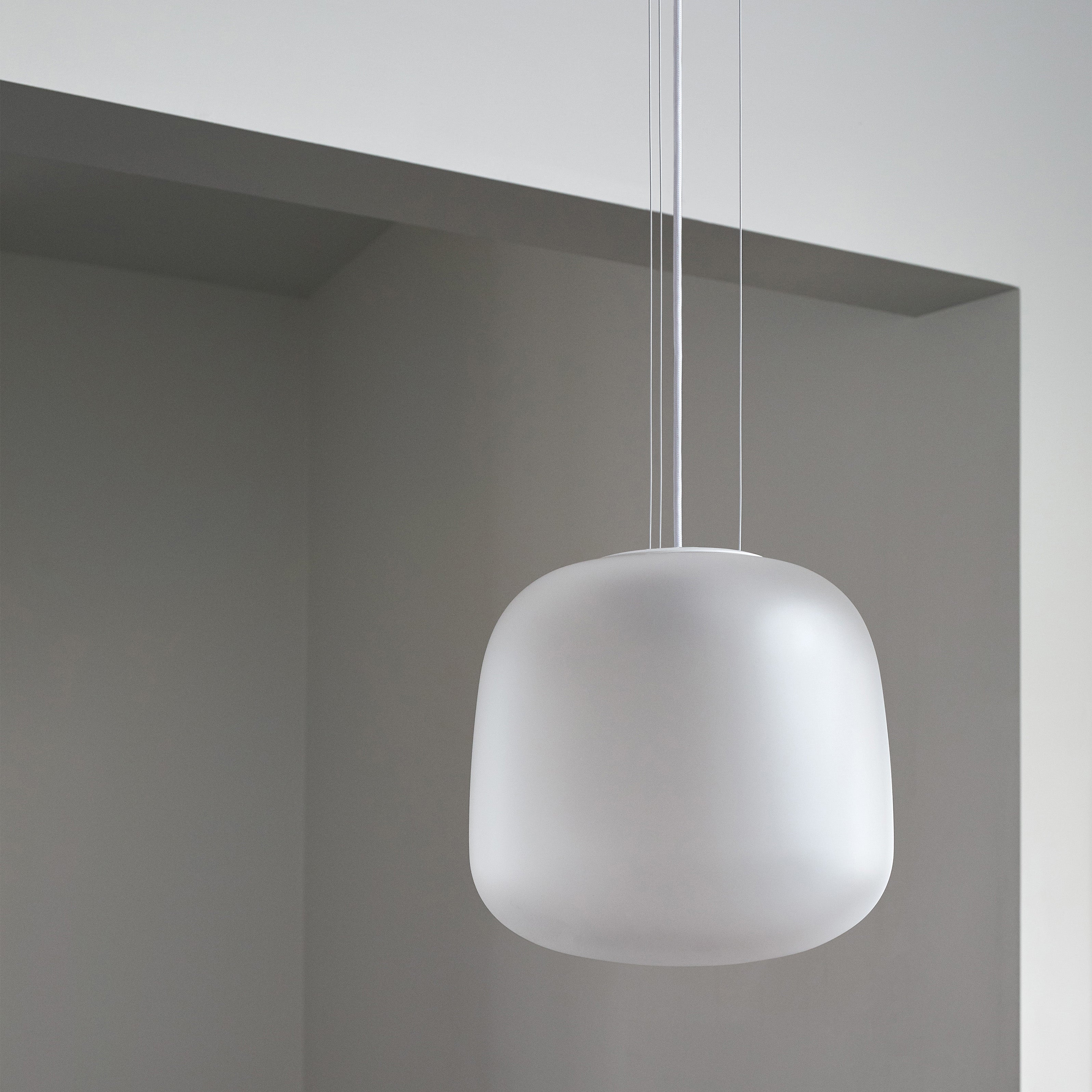 Adapted as a pendant in 2 sizes. AB’s organic frosted-glass shade subtly diffuses illumination from the dimmable state-of-the-art LED light source within. The form is crafted by skilled artisans using traditional techniques whereby molten glass is handled on the end of a blowpipe and then mouth-blown into a fixed-shaped mold.