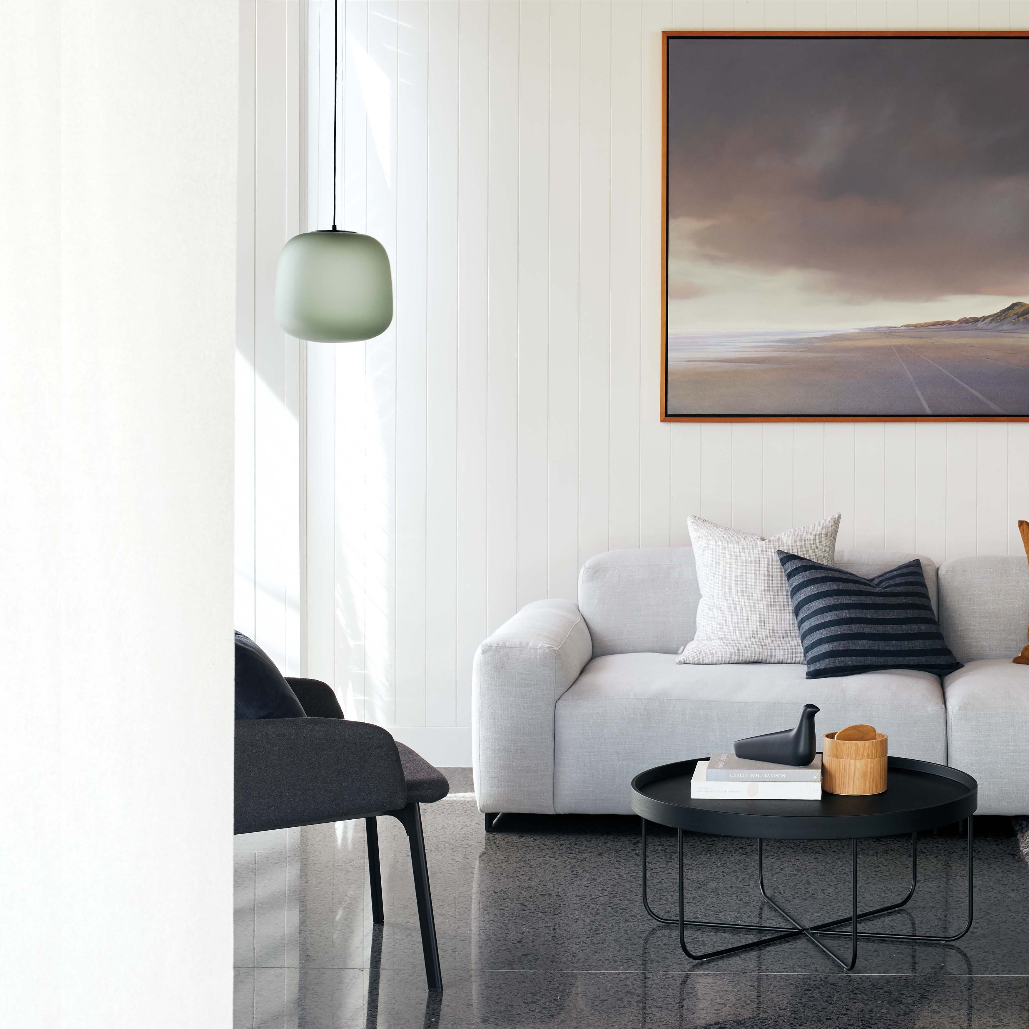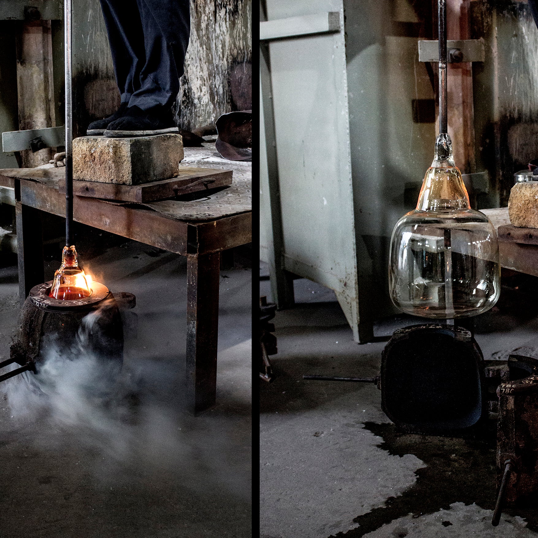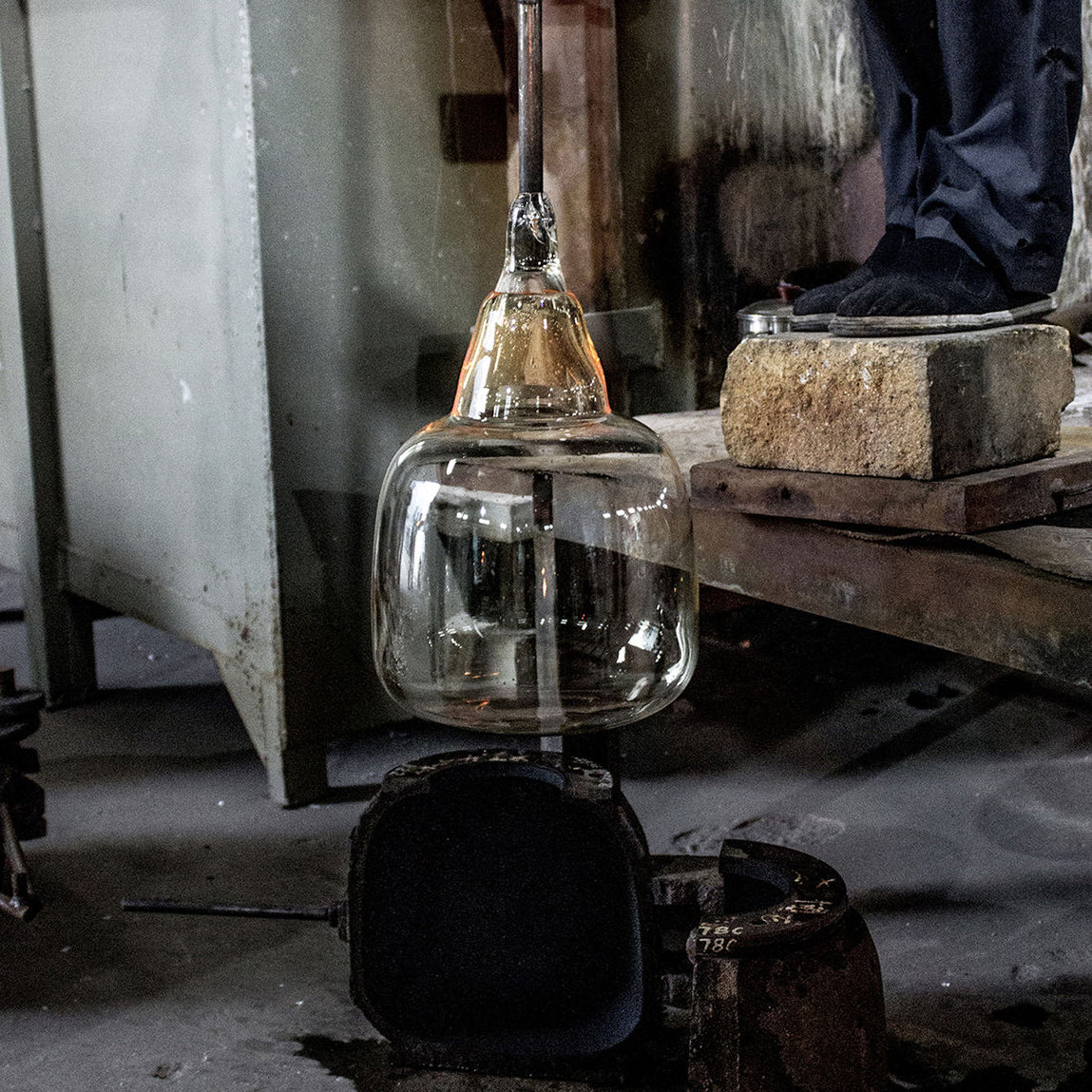 Adapted as a pendant in 2 sizes. AB’s organic frosted-glass shade subtly diffuses illumination from the dimmable state-of-the-art LED light source within. The form is crafted by skilled artisans using traditional techniques whereby molten glass is handled on the end of a blowpipe and then mouth-blown into a fixed-shaped mold.