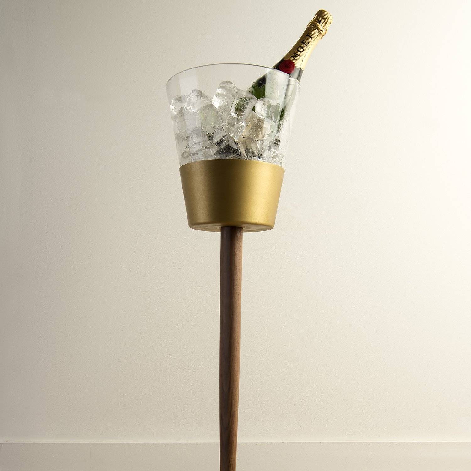 Pop your cork over this luxe bottle chiller. The crystal ice bucket is rimmed in a black or gold anodized-aluminum holder, with the added presence of the elegant pedestal stand in solid walnut and Emperador marble base. This Barcelona brand calls its range “jewelry” for interiors, and Champagnera embodies this to crisp perfection.
