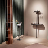 This “Home” arm is now under the design direction Andrés Martínez and Stefano Bigi. Cordoba-born Andrés hails from a family with a discerning jewelry tradition; Stefano is of French origin and educated in Italy. Their combined influences are reflected in the high standards of metal work and craftsmanship, and use of luxe materials. So, too, in the decided emphasis on living the good life—from valet stands and pedestal mirrors for a dressing area, to a bar station and standing Champagne bucket for entertaining.