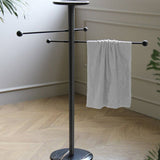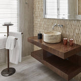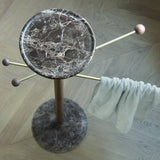 Andrés Martínez manages to turn a prosaic and functional bathroom accessory into a stunning design statement for Barcelona's Nomon Home. Inspired by art gallery display pedestals, Towel Stand features a circular platform and matching base of precious marble in a choice of varieties, each with its own unique veined pattern. While the shelf holds bath-time necessities, rotating metal towel bars in polished brass or matte black complement the walnut or stained-ash structure.