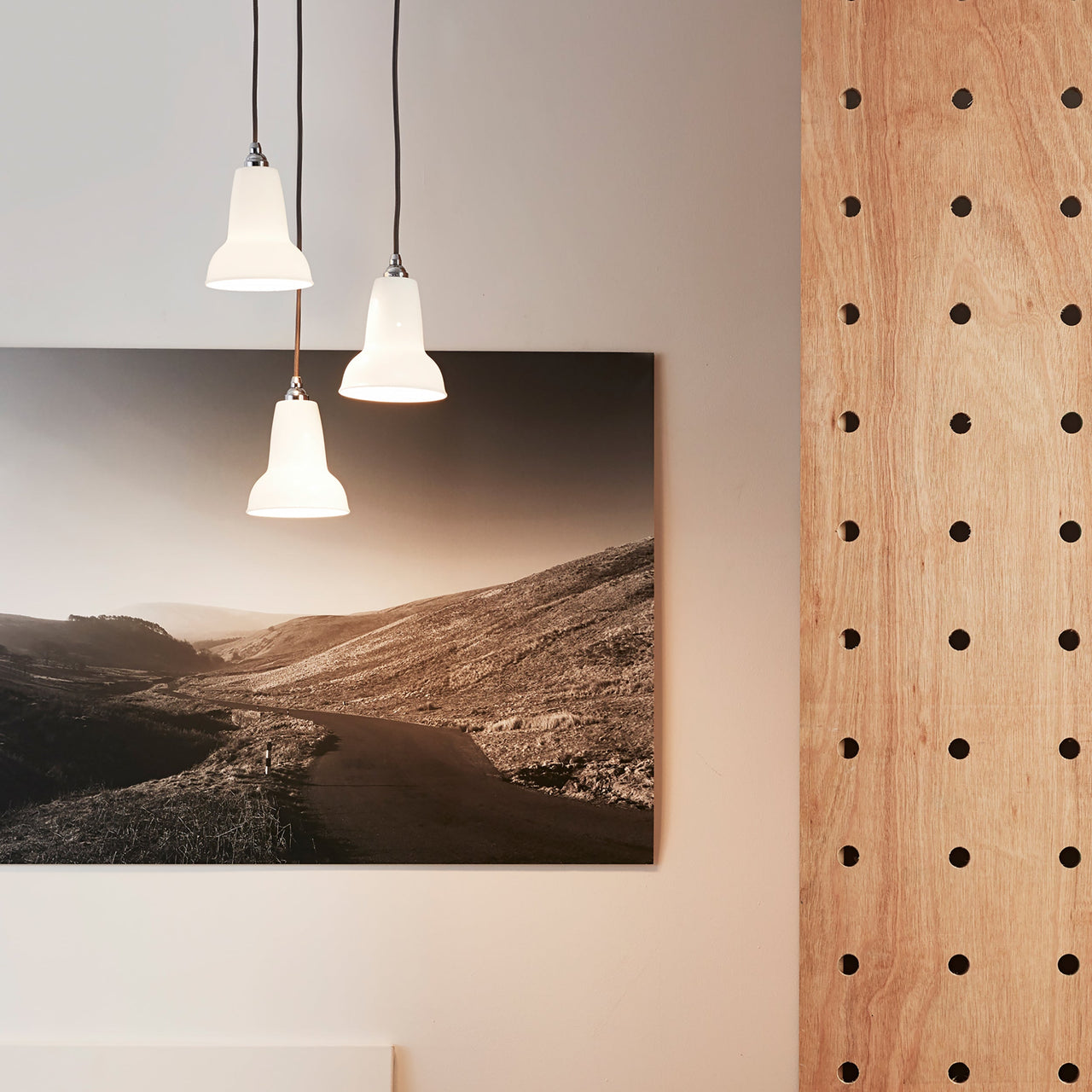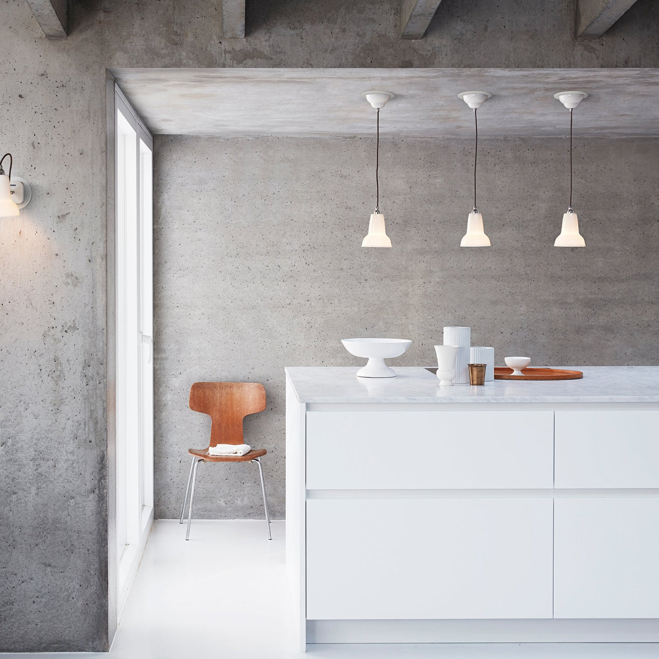 Angelpoise’s gloss-finished ceramic shade turns translucent when the light is switched on and radiates soft ambient light around a room. A variation on George Cawardine's iconic 1227 metal lamp, the bone china shade is complemented by chrome-plated fittings and a braided grey cord. Hang a single Mini as a space-saving alternative to a table lamp or array a row of lights over a worktop, bar or dining table.