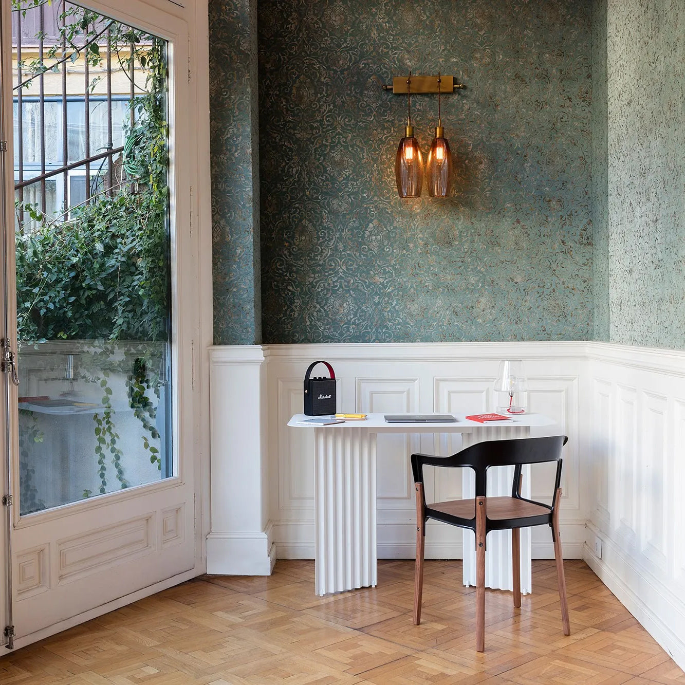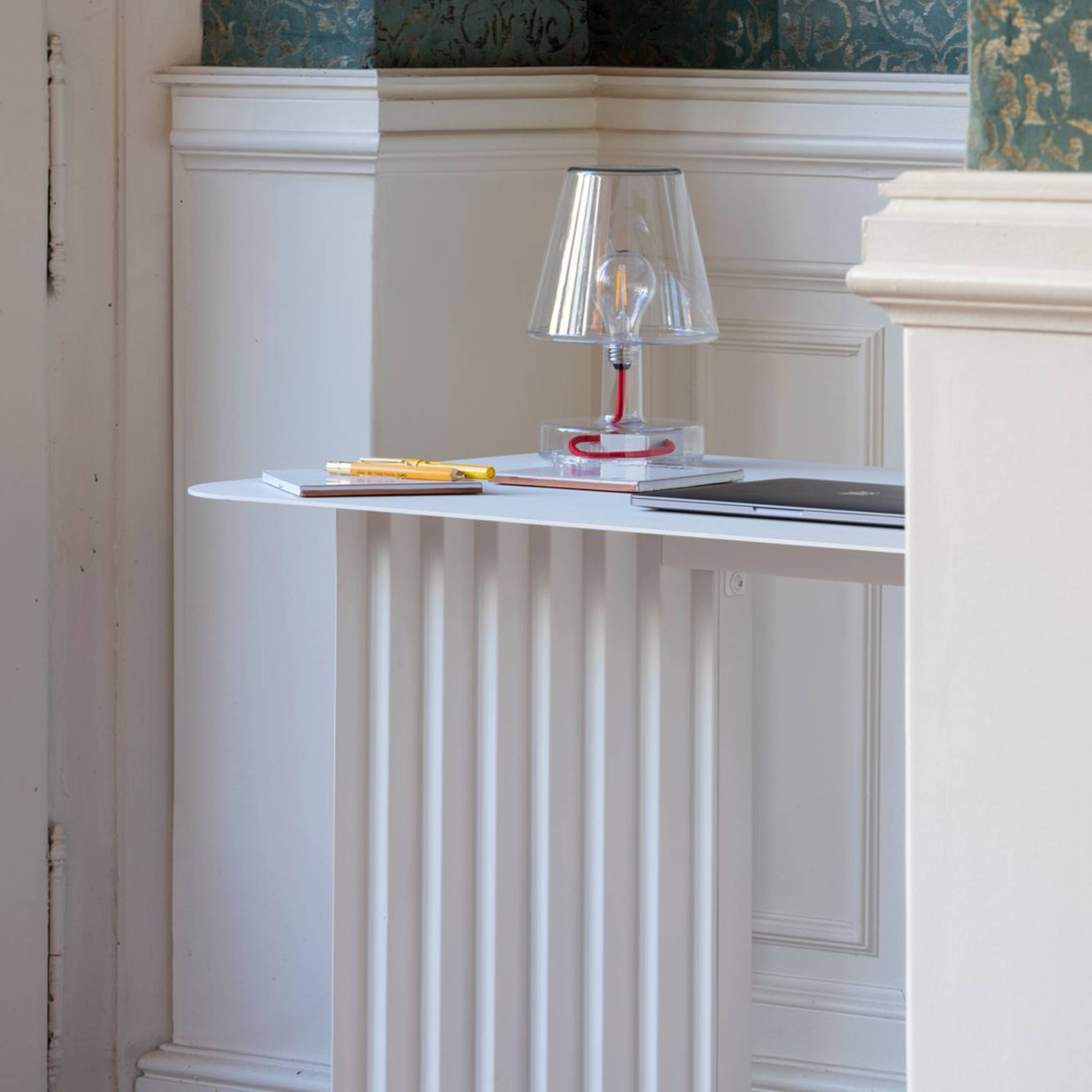 Plec Desk fits stylishly into nearly any setting, whether as a workaday task surface, a console table or even in the garden surrounded by plants and flowers. With a cataphoretic coating applied to its functional steel form, RS Barcelona’s sturdy table is as welcome inside as outdoors, with its striking accordion-shaped legs that create intriguing light and shadow effects.