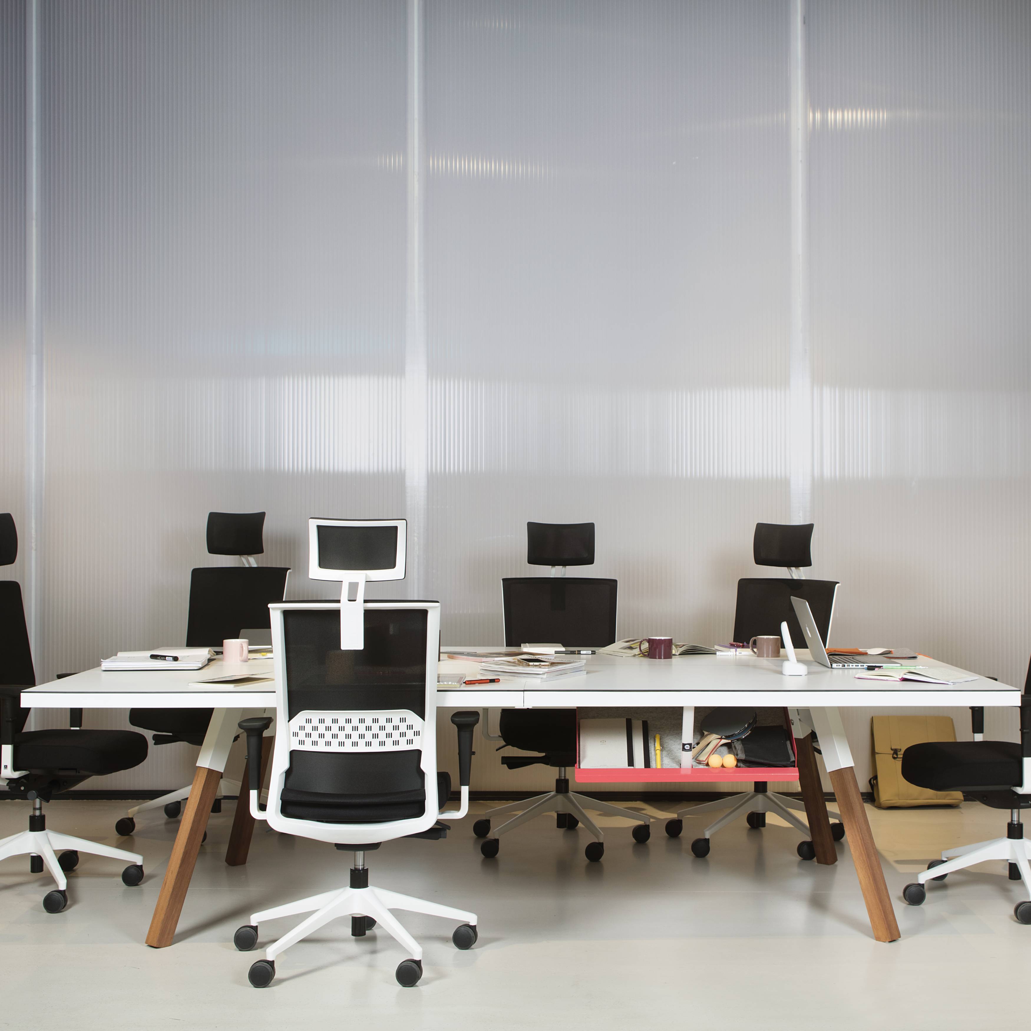 Walnut or oak, steel, powder-coated polyester, iroko wood, HPL