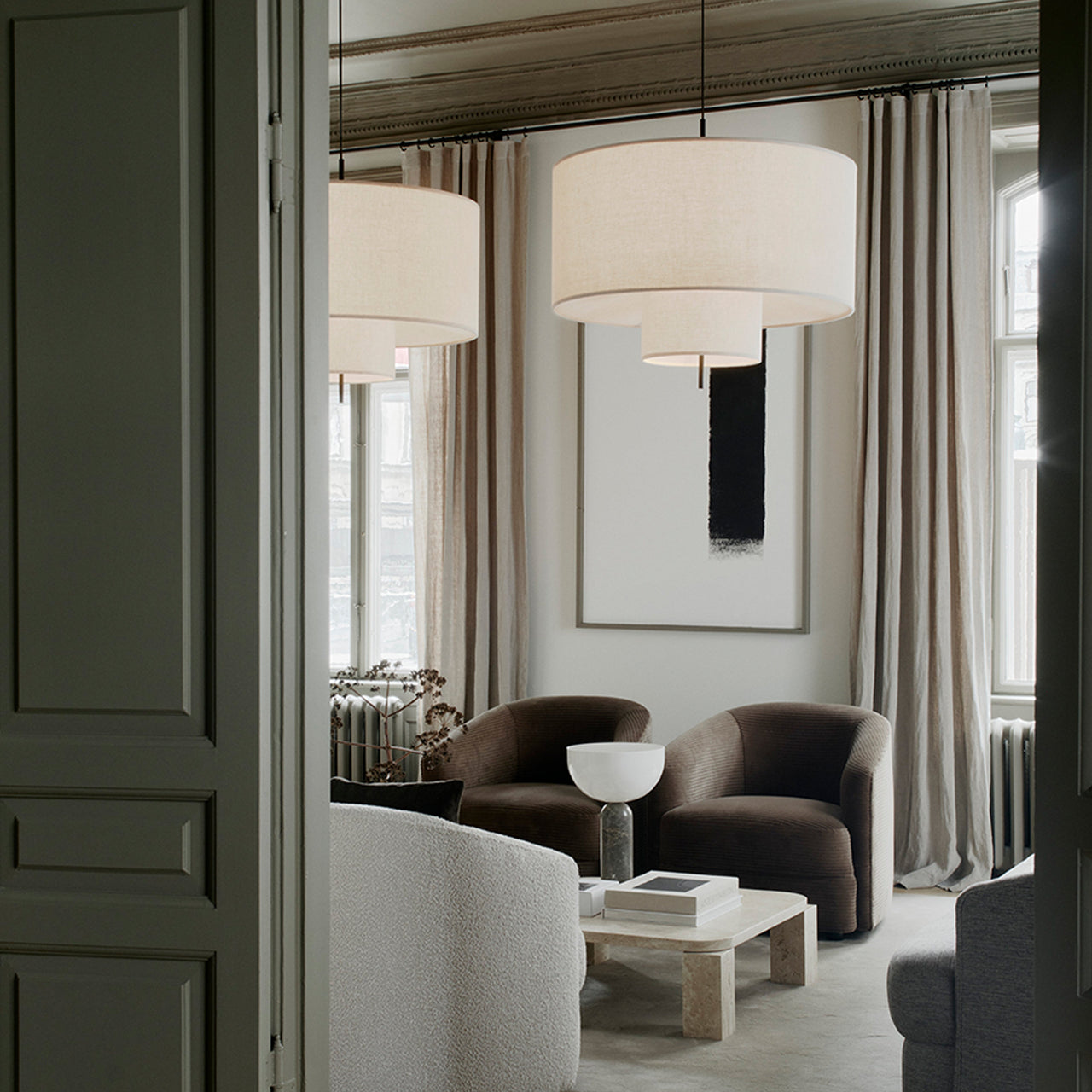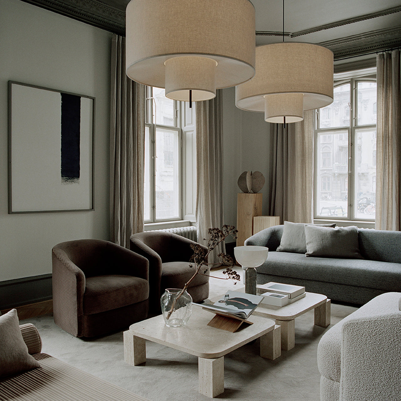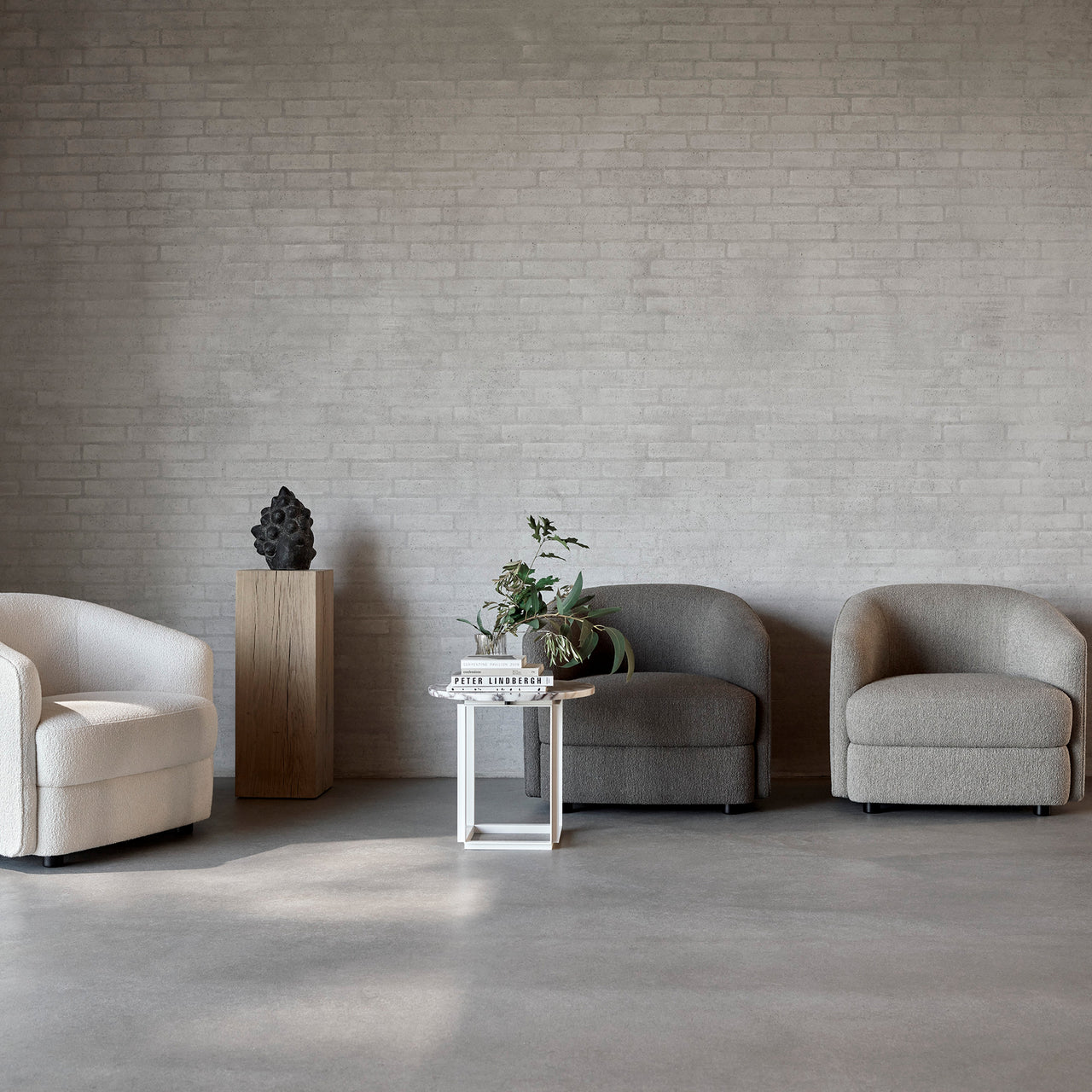 Though a gentle back curvature identifies New Works’ lounge chair as part of the Covent family, its completely upholstered presence signals a mood of complete relaxation. The embracingly cushy seat that denotes the series has been extended to the ground, with the bold frame of the original replaced with the soft touch of an upholstered base—and given generous proportions by Copenhagen’s Arde Design Studio. Showcasing the expert detailing and craftsmanship that comes with a range produced solely in Denmark, it’s available in a choice of luxe leather or select fabric upholstery.