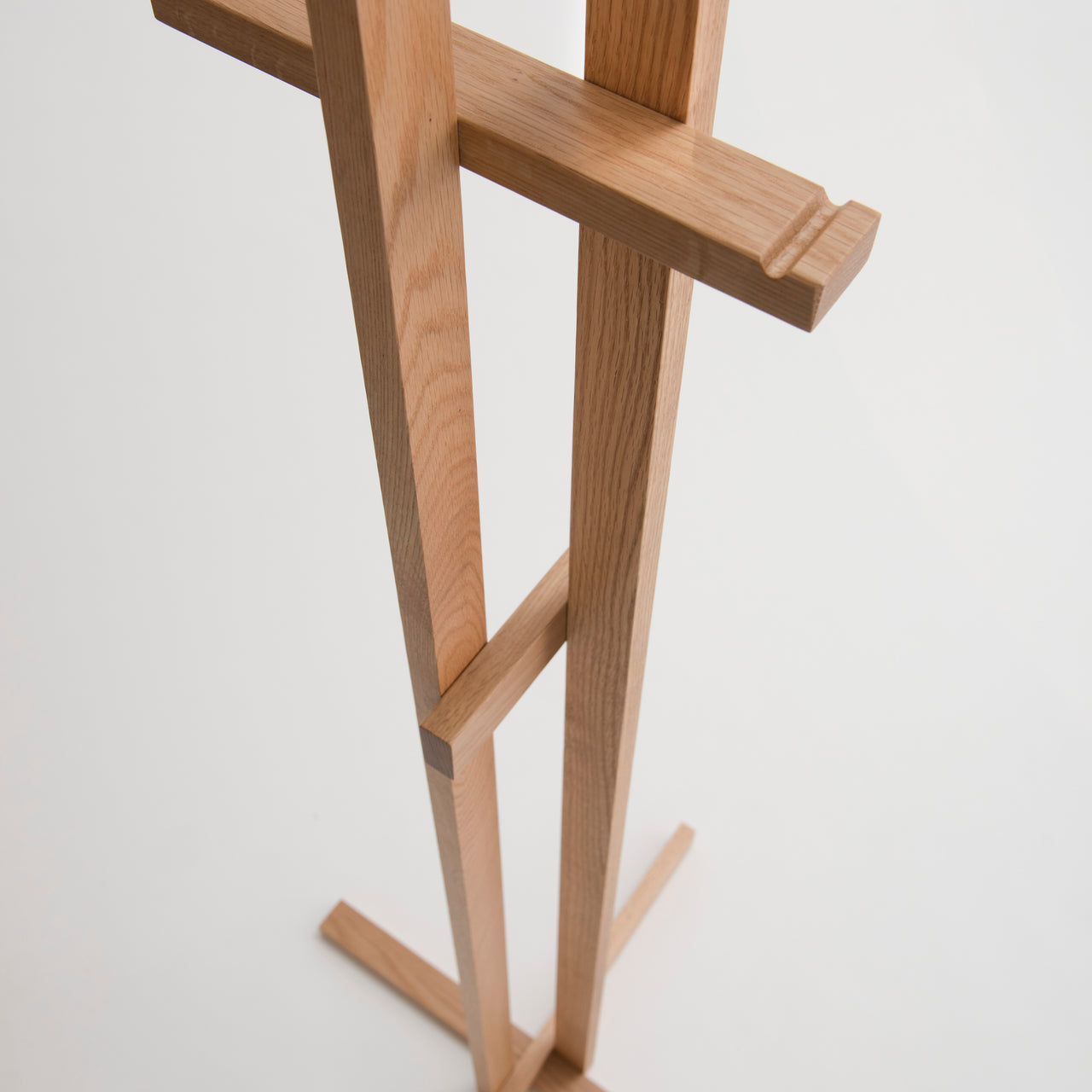 The Elements Coat Stand is a functional sculpture made from a single type of timber in varying lengths. Its unique construction features joints at different angles, allowing the stand to change its appearance based on the viewing angle. Designed with a "face side" for hanging more clothes and a "back side" to face the wall, it is both practical and artistic. Available in 5 finsihes of oak or ash.