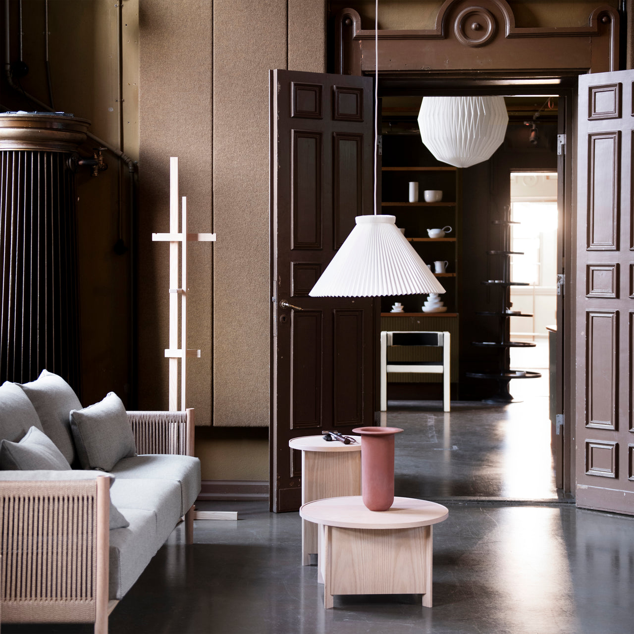 First conceived when a group of the designers gathered for an intensive design workshop that took place in the small town of Morodomi in southern Japan, the expanded collection employs tactile natural materials and rich finishes. Superbly crafted furnishings are fashioned in oak, ash, hinoki and cedar woods; buttery leather; paper cord and fine upholstery fabrics; as well as unique Japanese-inflected finishes. Each piece is crafted in Morodomi, from Mowat’s Aiizome storage cabinet painted with sumi ink, red dye and two shades of Japanese indigo, to Ashizawa’s evocative plumply cushioned Raft platform sofa, to Anderssen & Voll’s sculpted-wood Blest side chair with its curved back reminiscent of a sail.