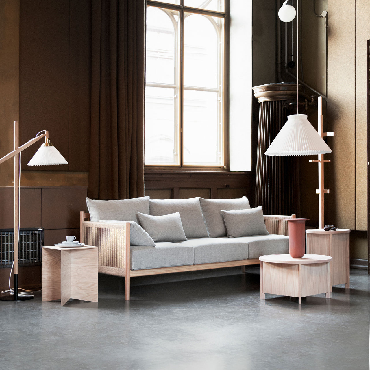Ariake’s side table assumes an attractively calm sense of balance as its solid-wood legs and table top tapers from a thickness of 20mm to 5mm, giving a sense of incredible visual lightness. Designers Anderssen & Voll further emphasize the conceit with the small gap at Paperwood’s base, lifting the table off the floor and letting a sliver of light through.