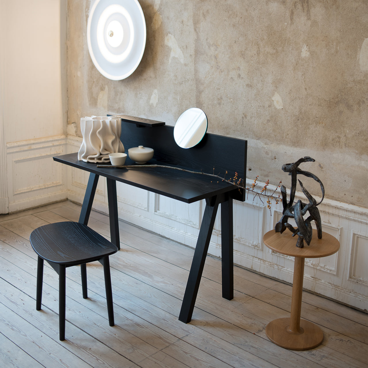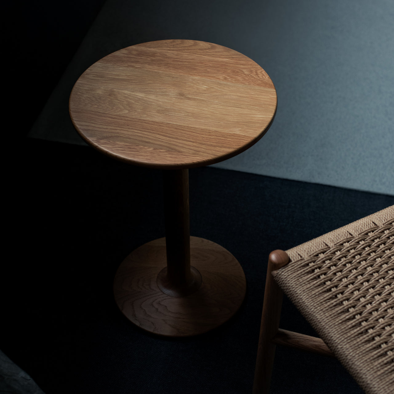 The Taio Side Table by Ariake is a simple circular side table made from solid wood, designed by Anderssen & Voll. It is available in oak or ash finishes, making it a versatile piece for various interiors. With compact dimensions, it pairs well with low seating furniture or can stand alone as an accent piece.