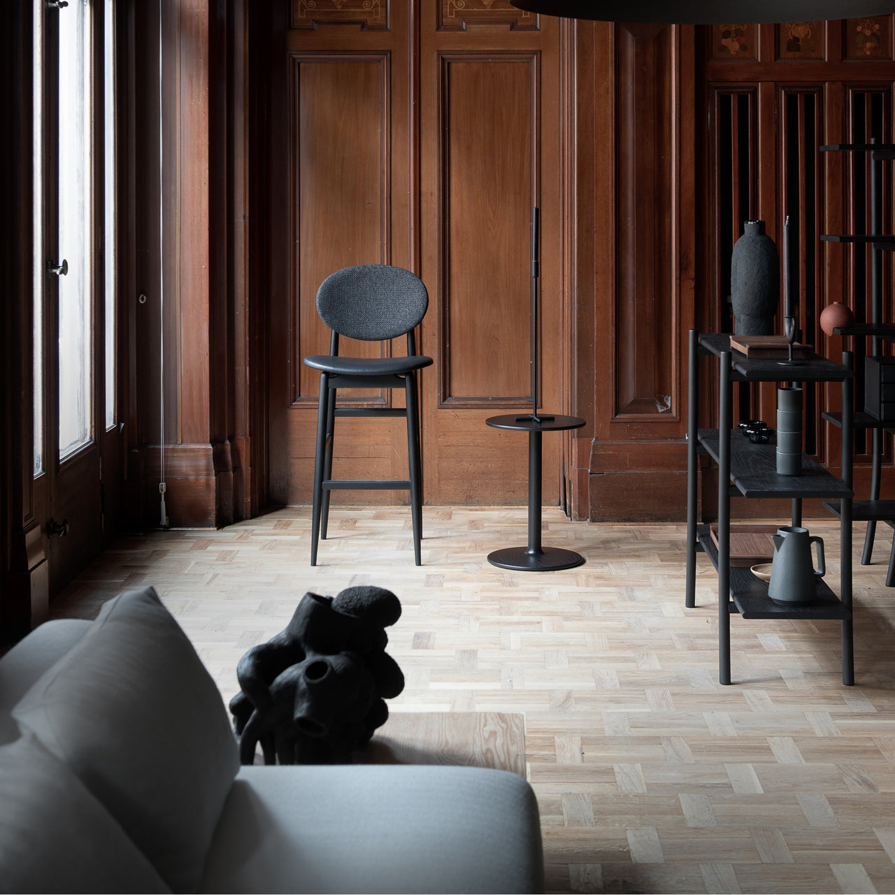First conceived when a group of the designers gathered for an intensive design workshop that took place in the small town of Morodomi in southern Japan, the expanded collection employs tactile natural materials and rich finishes. Superbly crafted furnishings are fashioned in oak, ash, hinoki and cedar woods; buttery leather; paper cord and fine upholstery fabrics; as well as unique Japanese-inflected finishes. Each piece is crafted in Morodomi, from Mowat’s Aiizome storage cabinet painted with sumi ink, red dye and two shades of Japanese indigo, to Ashizawa’s evocative plumply cushioned Raft platform sofa, to Anderssen & Voll’s sculpted-wood Blest side chair with its curved back reminiscent of a sail.