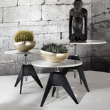 The Brit design superstar once again elevates an industrial notion to refined showpiece with his Screw Café Table. Forthrightly functional, the tabletop height can be easily adjusted via a threaded steel pole mounted on the matte black iron base. Suitable for use both inside and outside, with a duo of tabletop sizes and a versatile selection of marble or oak finishes.