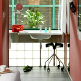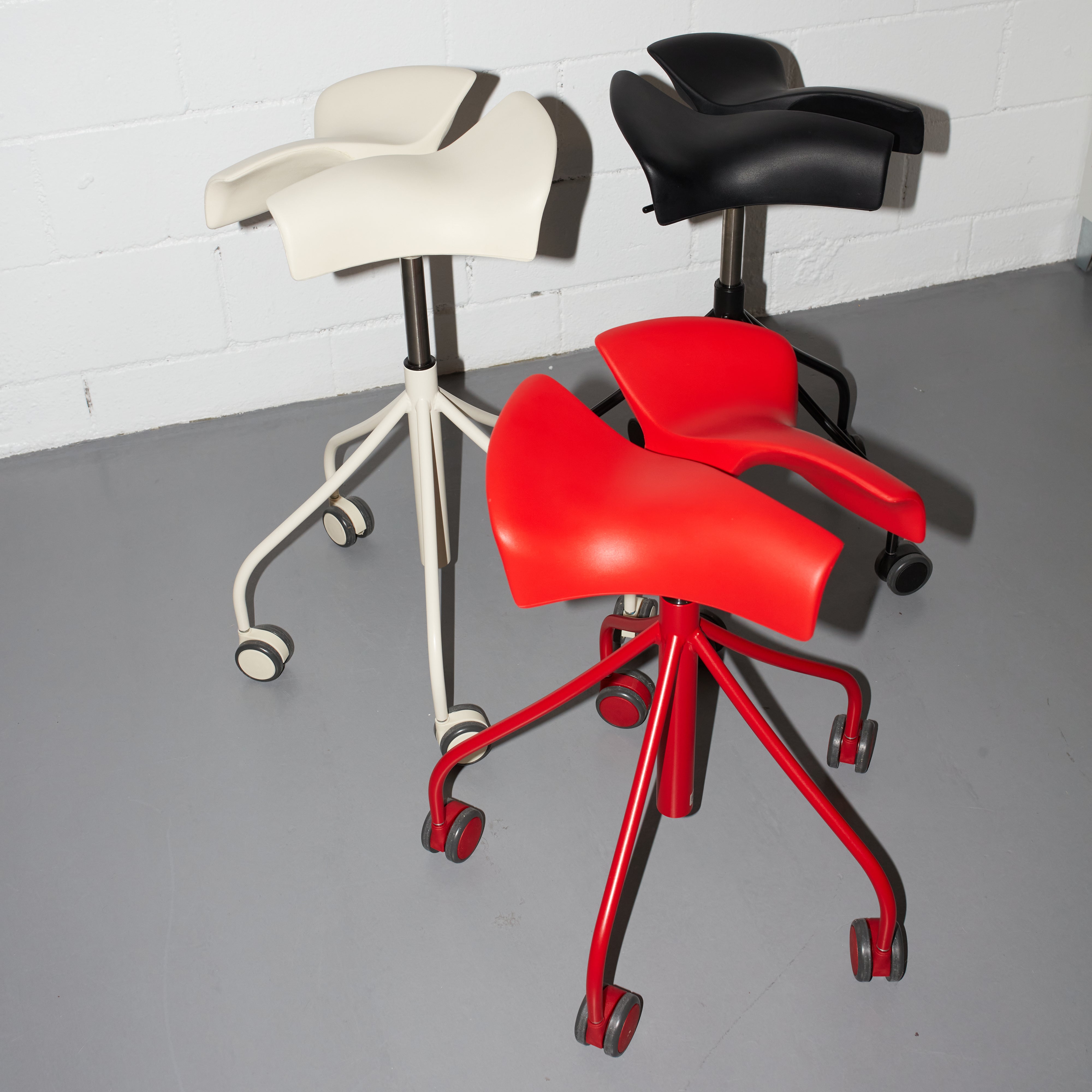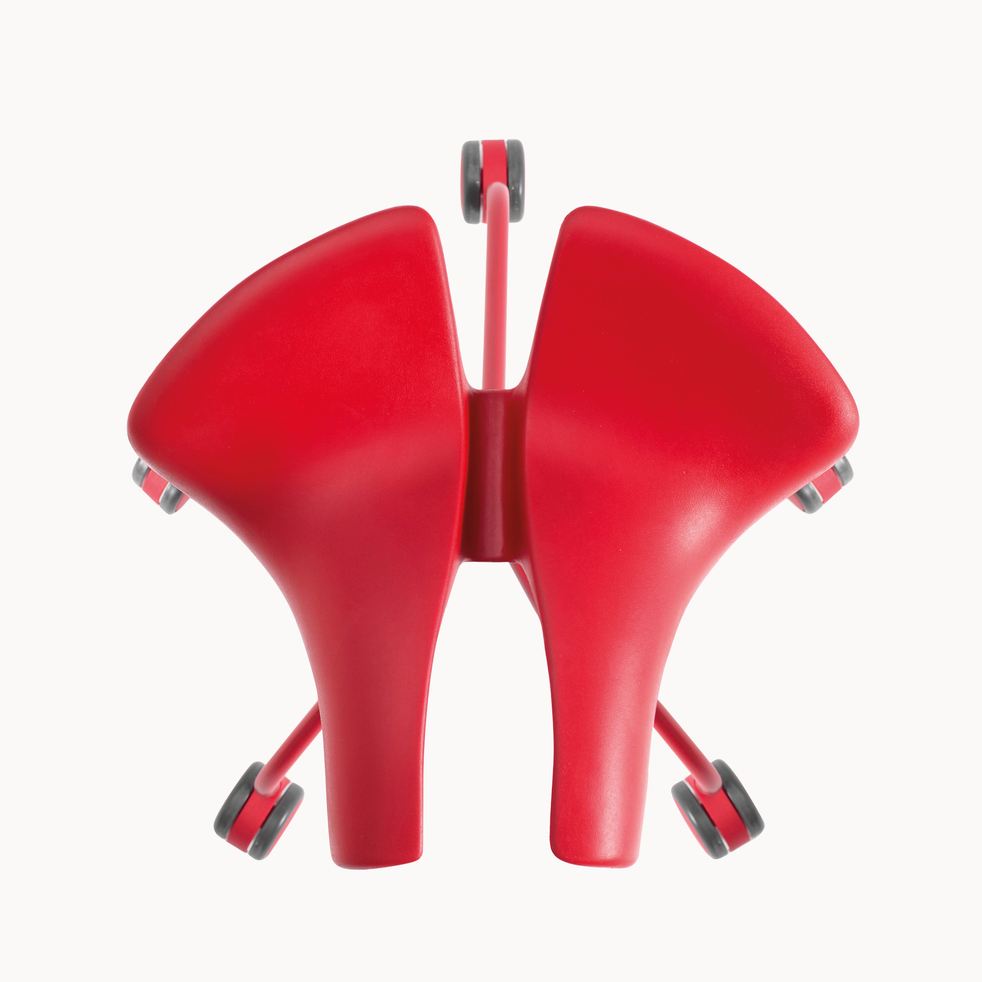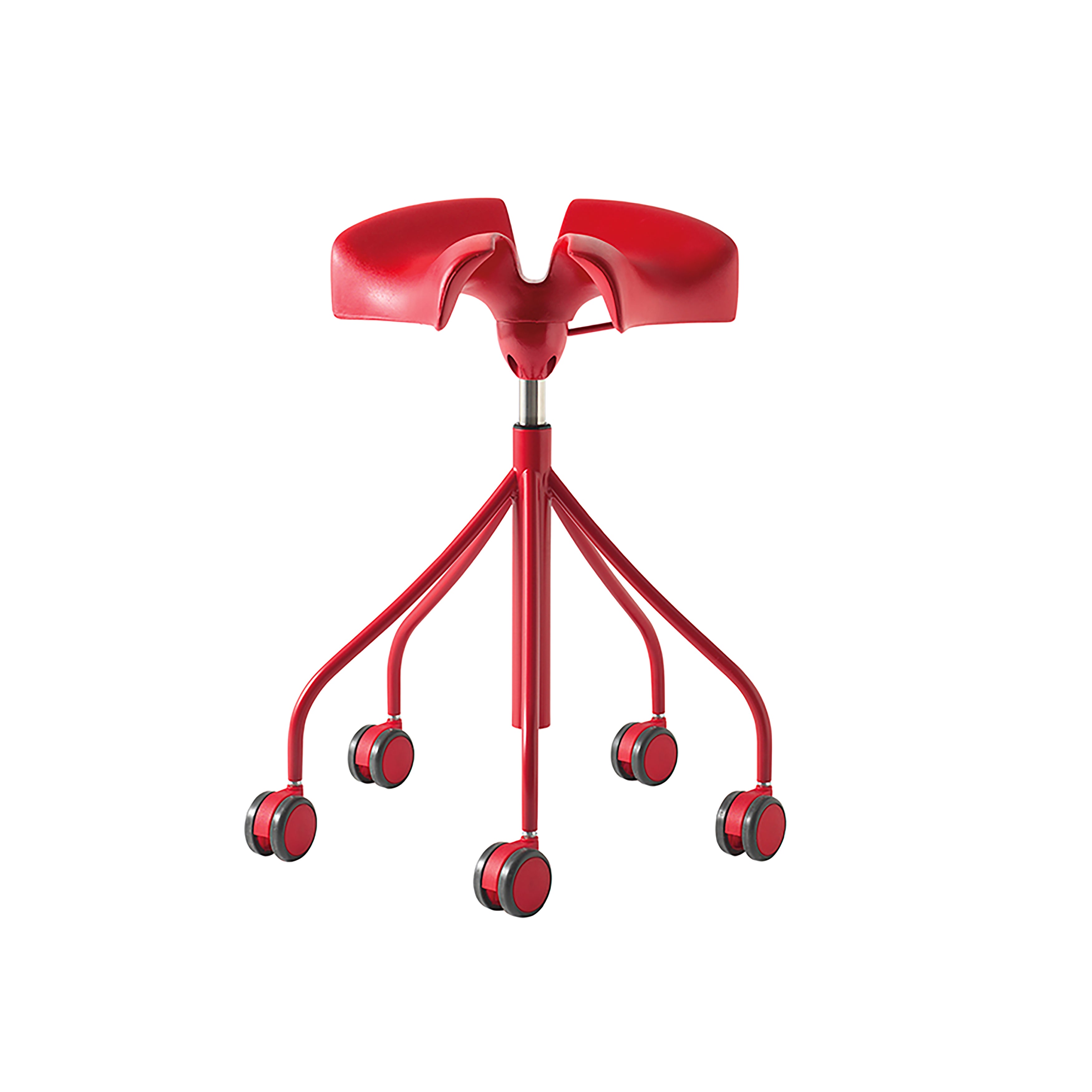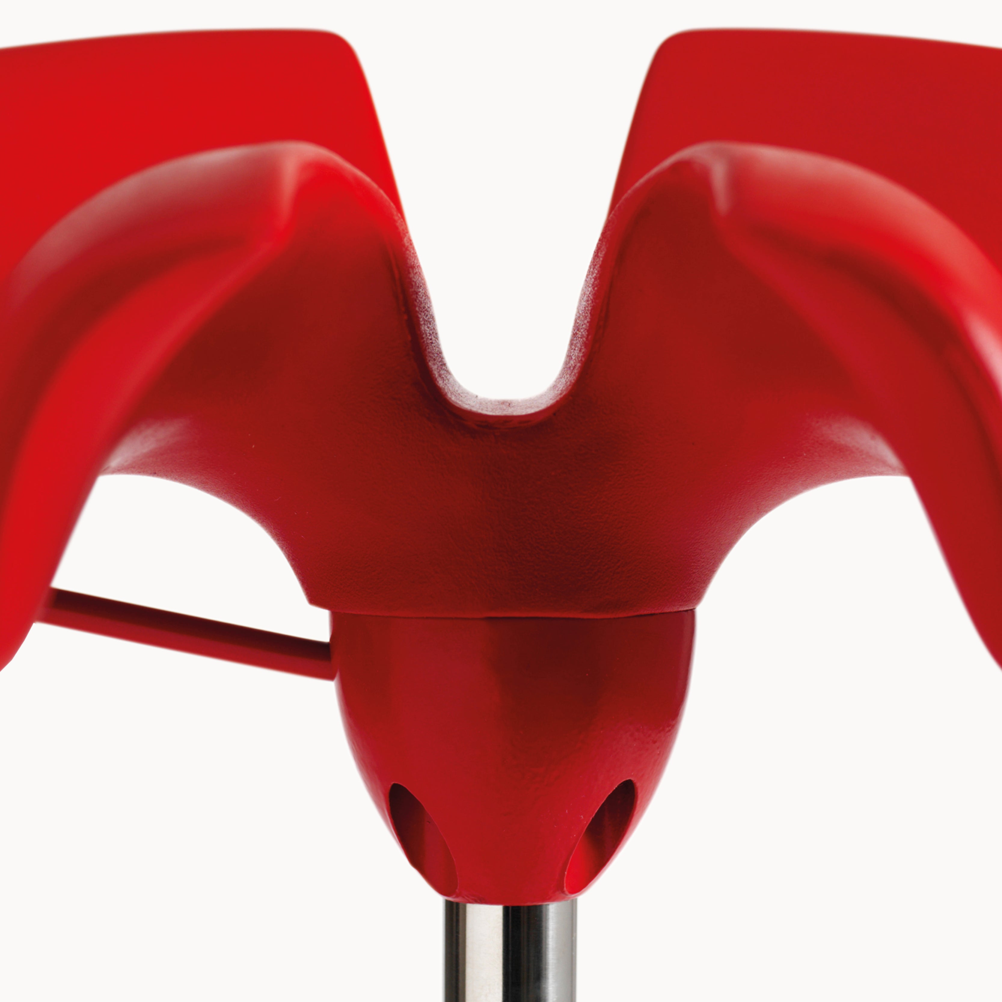 Binaria’s ergonomic design was originally contrived by a dentist and an industrial designer for clinics and offices but the sprightly rolling stool makes itself at home anywhere a mobile seat is desired. With instantly adjustable height via automatic gaslift, it features an integral injected polyurethane seat and a 5-legged steel structure in a choice of powder-coated colors with a satin finish.