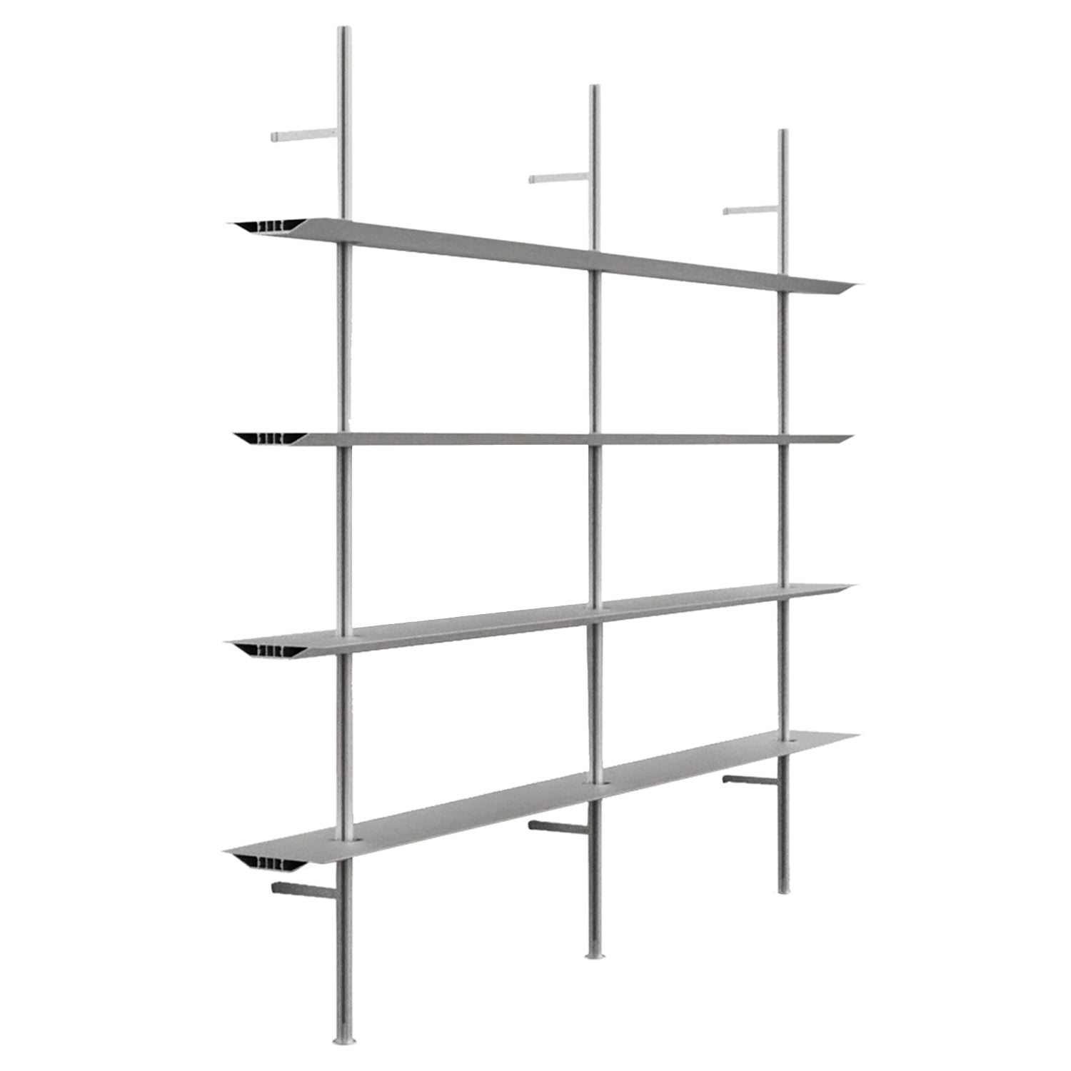 Supporting maximal weight with a minimal profile, Hypostila is a sleek shelving system introduced by Spanish architects Lluís Clotet and Oscar Tusquets in 1979. Presented in a series of configuration options to suit homes, offices and hybrid spaces, the modular construction in extruded aluminum features shelves and vertical supports in a brushed, anodized finish.