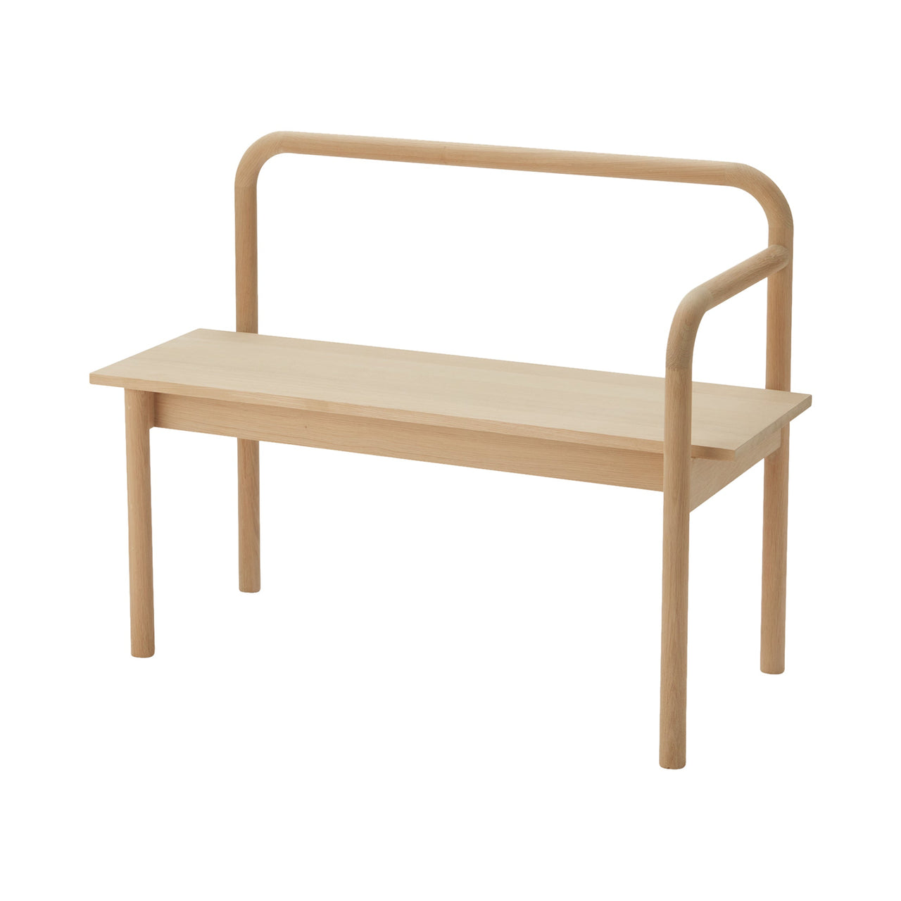 Finland-based designers Wesley Walters & Salla Luhtasela plumb the past with this wood bench inspired by old handrails and industrial machinery. Maissi’s narrower proportions particularly suit placement in a hallway for welcoming guests or as an unusual extra seat in a living space. Crafted in FSC-certified oak, the wood is left in its pale untreated state to emphasize the subtle grain.