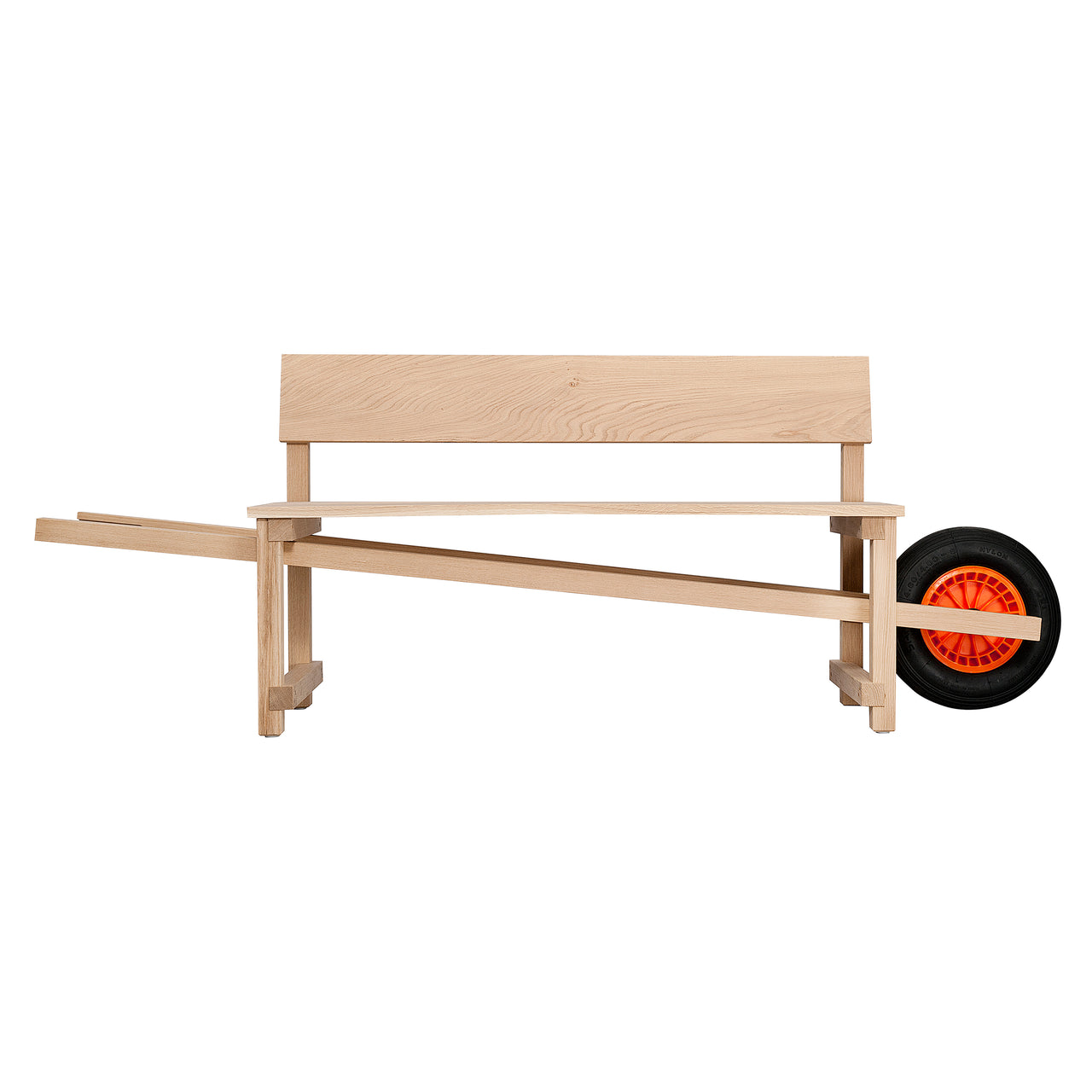 Yes, evidently, you can take it with you. Relocating this sturdy bench for a better view or experience is a snap—and a solo endeavor if you you wish—with this clever design from Dutch designer Rogier Martens. When not being rolled, the effect is an intriguing detail. Crafted from sustainability-rated and highly-durable solid European oak, a long-wearing treated wood.