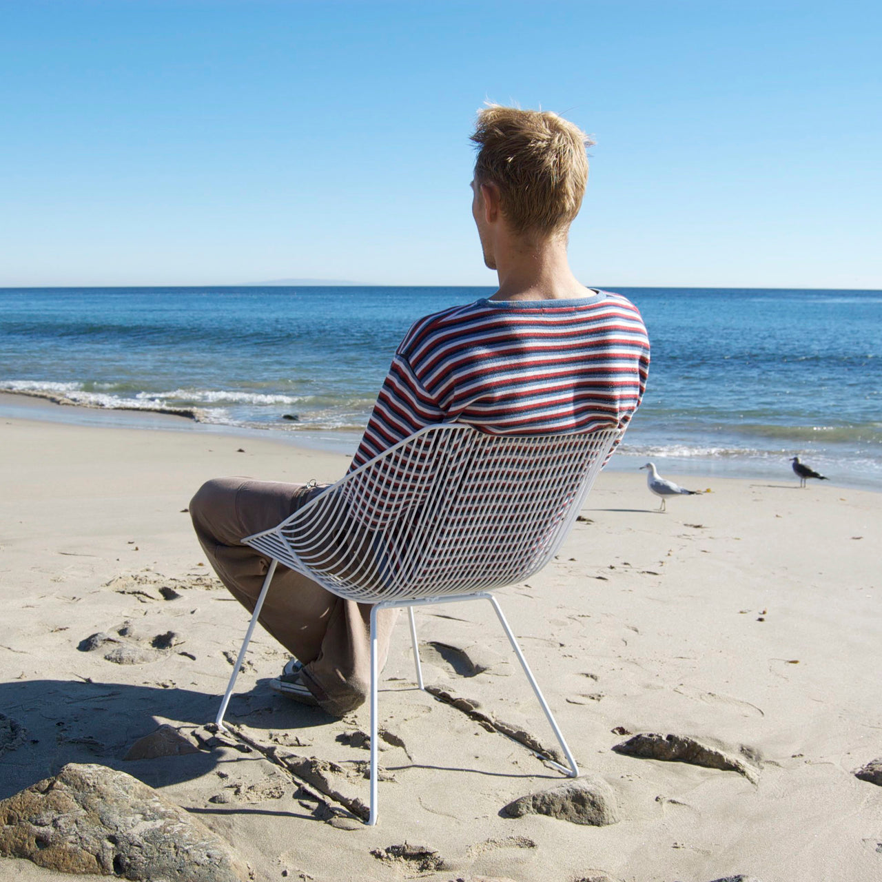 Around the Bend is a bright and happy place to be when speaking of the cool iron wire furniture from Los Angeles' own Bend Goods. In true Southern Cali style, these corrosion-resistant pieces with their pop of powder-coat color can easily meander from indoors to outside. Sculptor, designer and entrepreneur Gaurav Nanda perfected the signature process he calls "bending"—shaping and spot welding the wire by hand—to achieve intricate patterns in Bend's furniture, lighting and accessories.