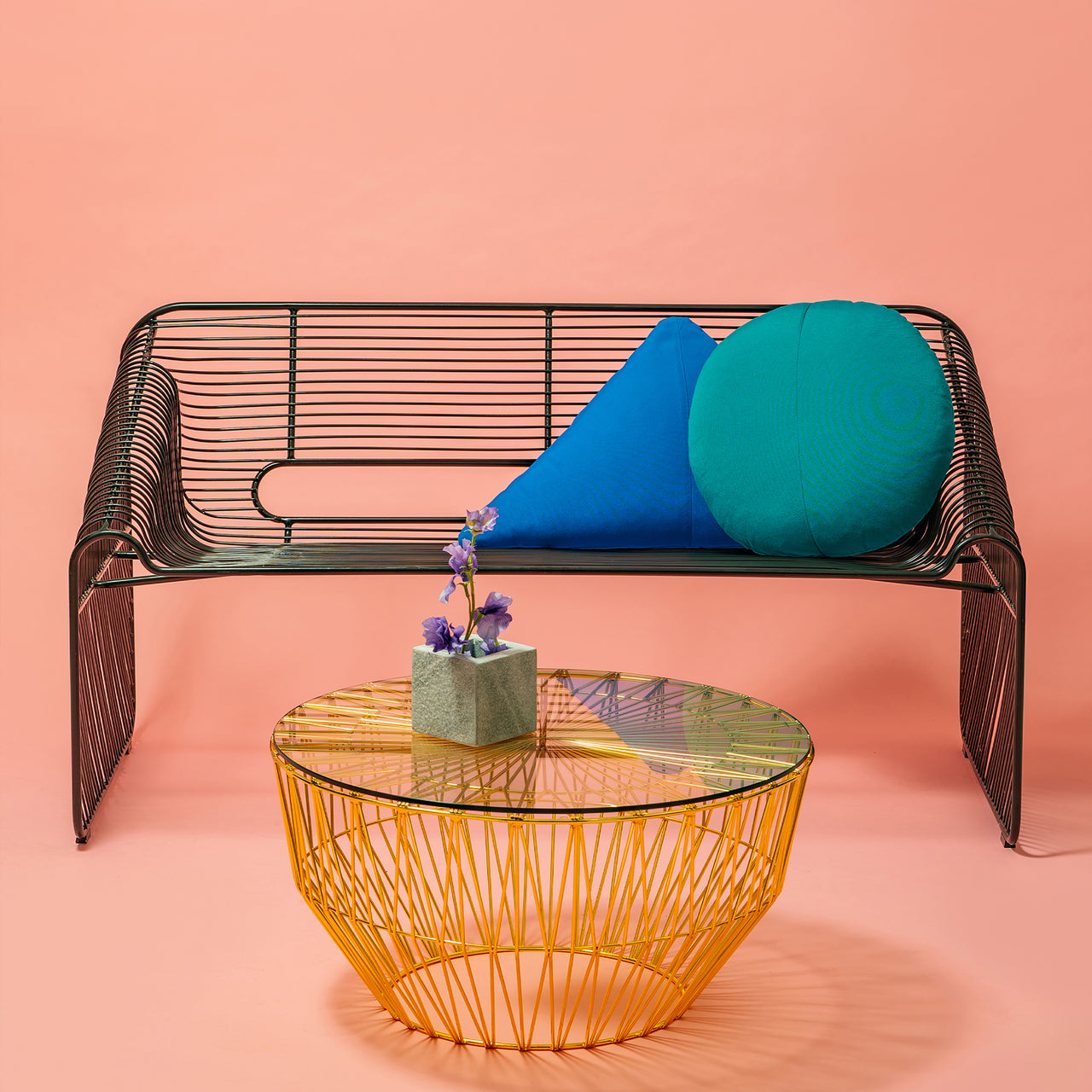 Around the Bend is a bright and happy place to be when speaking of the cool iron wire furniture from Los Angeles' own Bend Goods. In true Southern Cali style, these corrosion-resistant pieces with their pop of powder-coat color can easily meander from indoors to outside. Sculptor, designer and entrepreneur Gaurav Nanda perfected the signature process he calls "bending"—shaping and spot welding the wire by hand—to achieve intricate patterns in Bend's furniture, lighting and accessories.