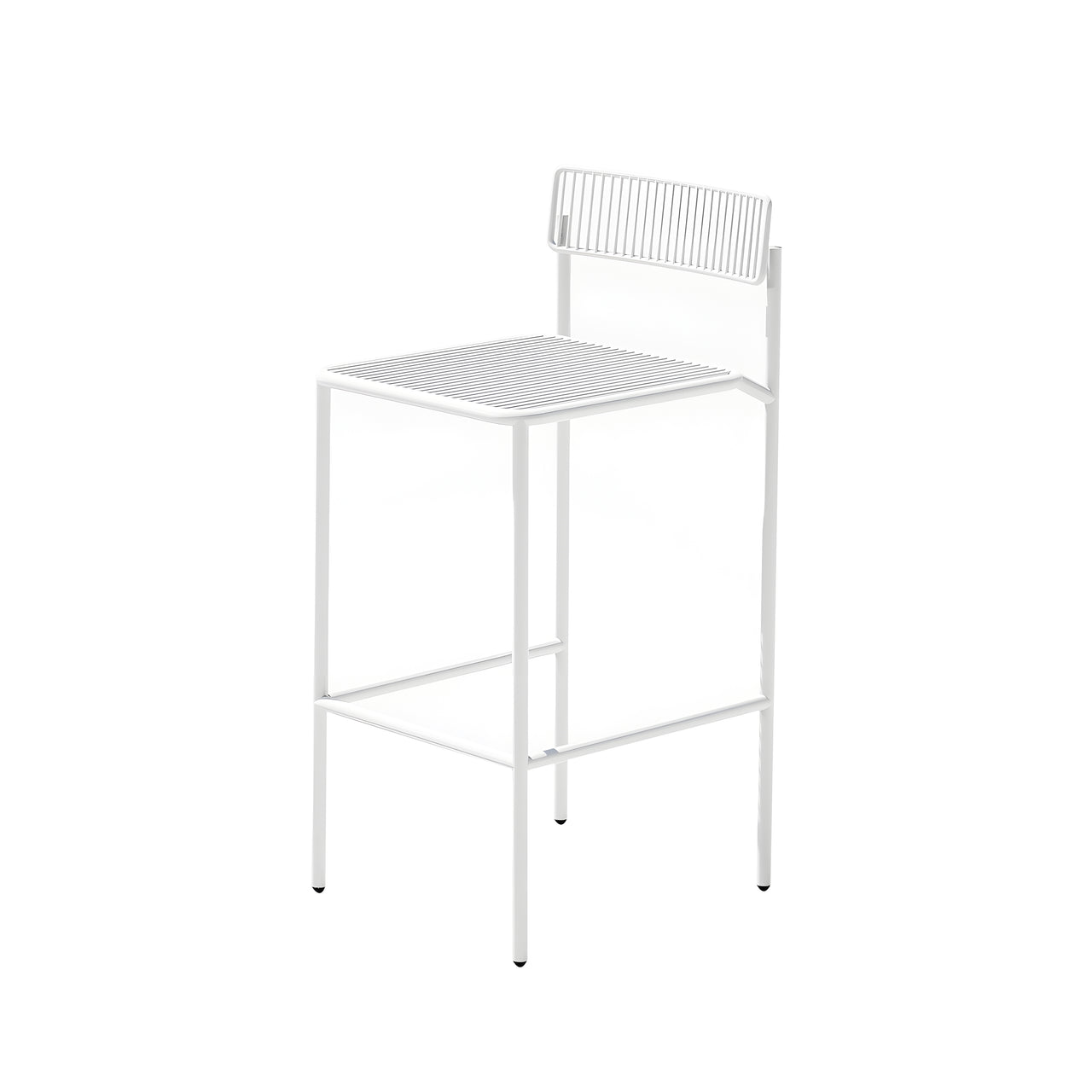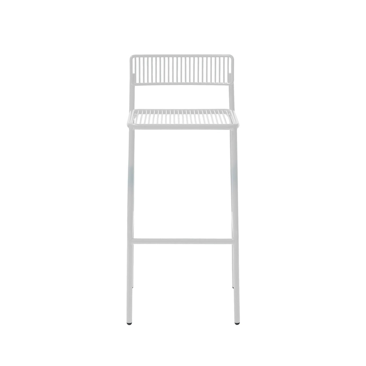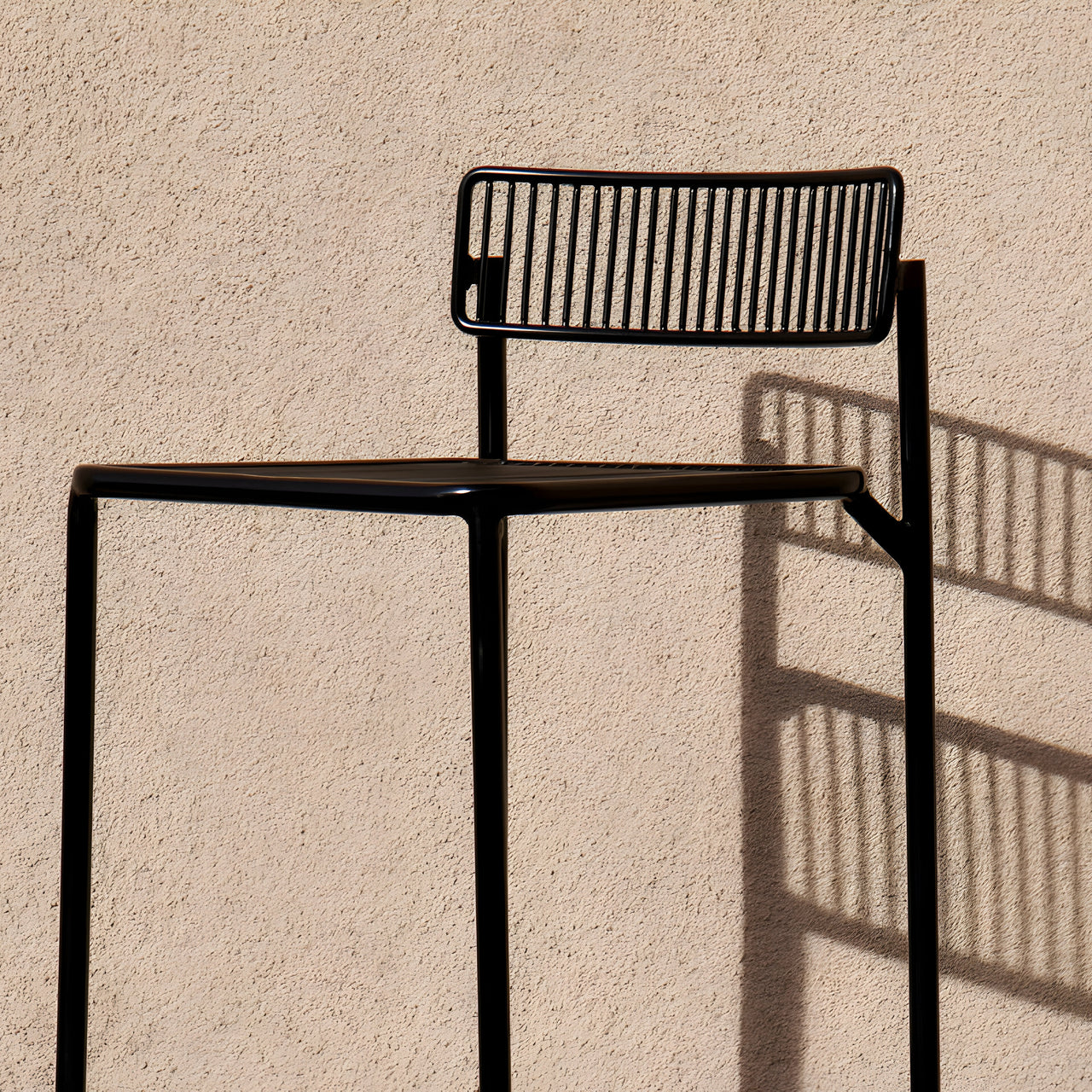 With trim, linear appeal, Bend Goods extends its Rachel seating as a handsome stool in either bar or counter height. Suitable for both indoor and outdoor environs, it's handcrafted in recyclable iron wire and treated with the company's proprietary hot-dip galvanization before the final powder-coat finish to help fight corrosion for added durability and longevity.