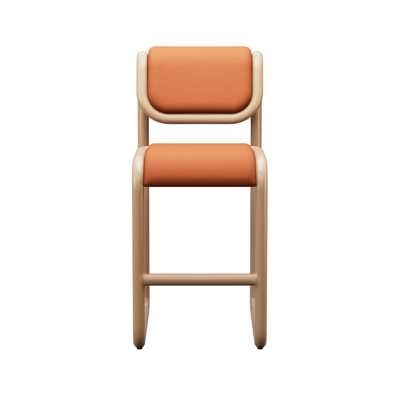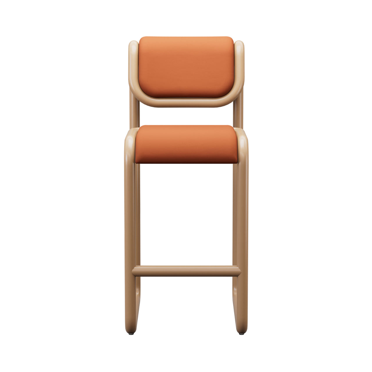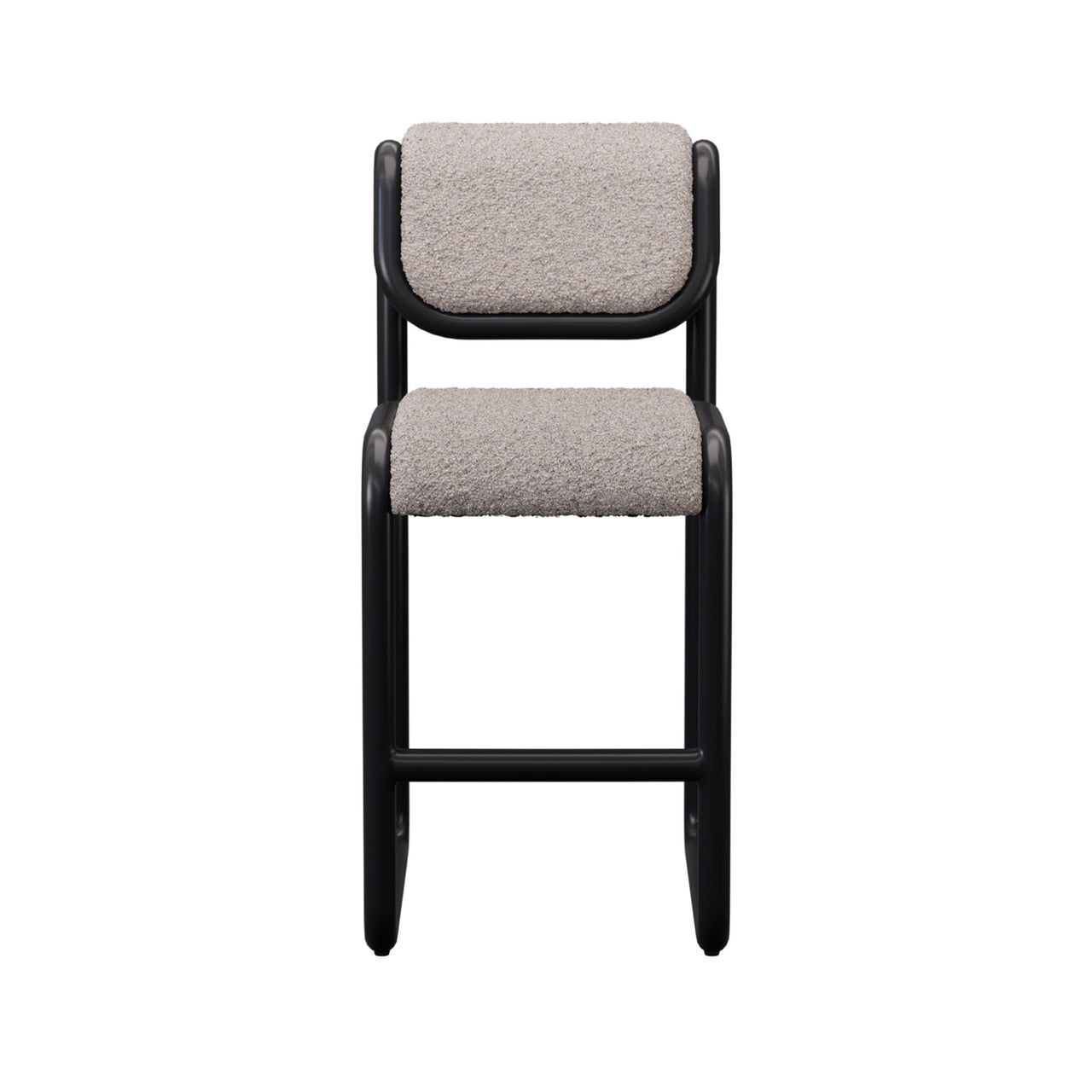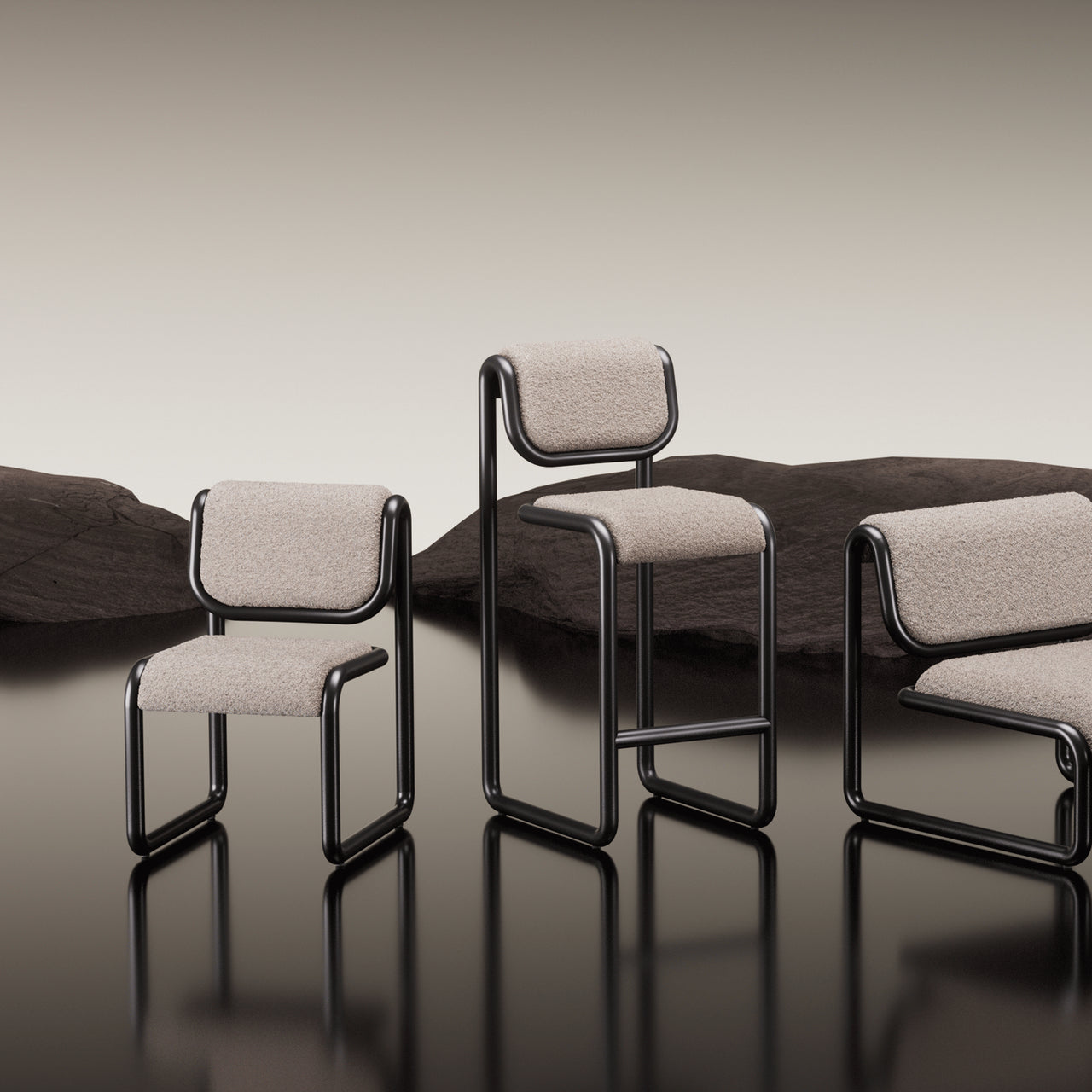 Elevating style in more ways than one, Bend Goods' captivating cantilever design includes a bar and counter stool with a padded seat and backrest featuring nubby bouclé or rich vegan leather upholstery. Tube collection’s signature bold frame is fashioned from sleek aluminum in complementary powder-coated hues.