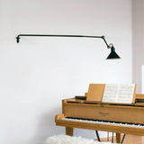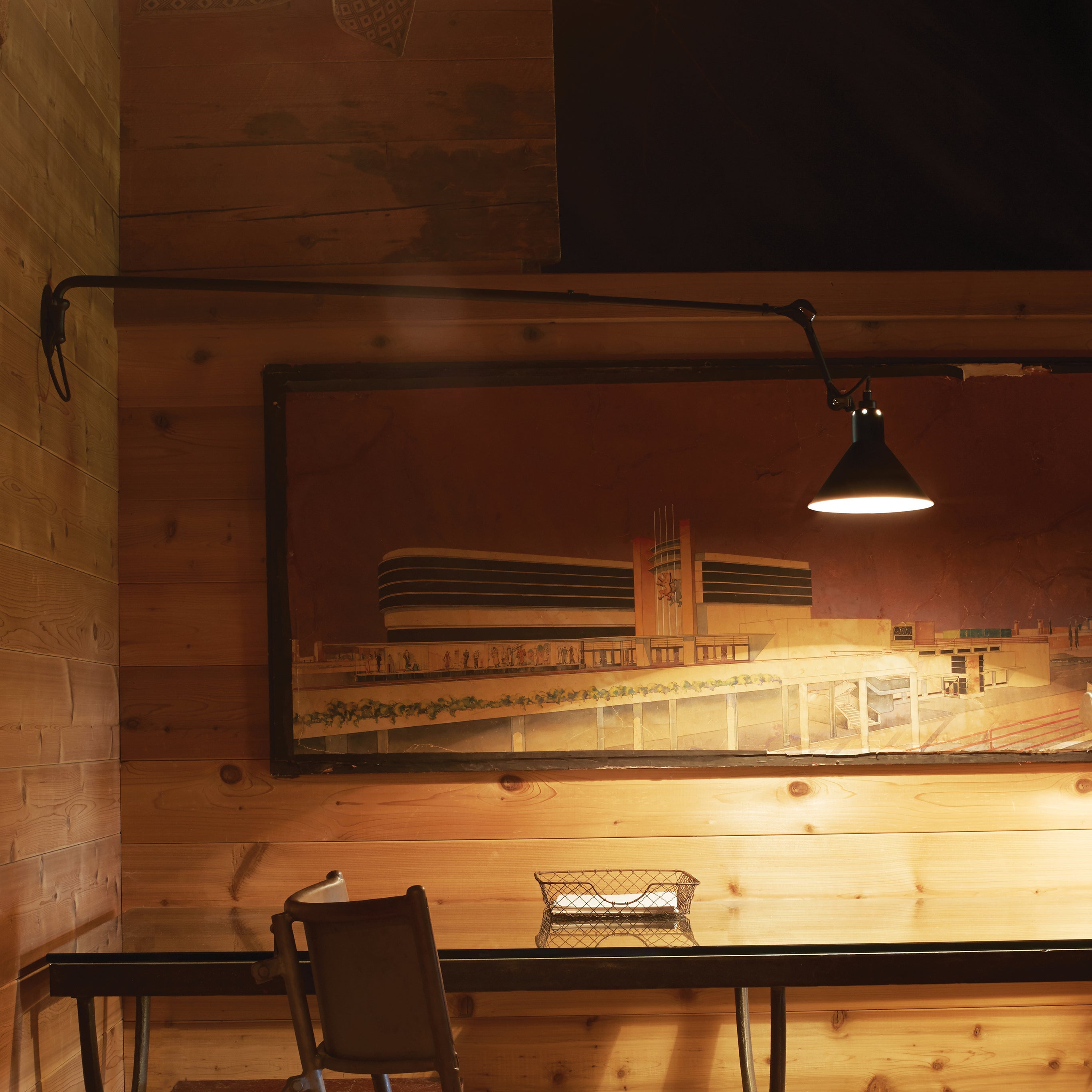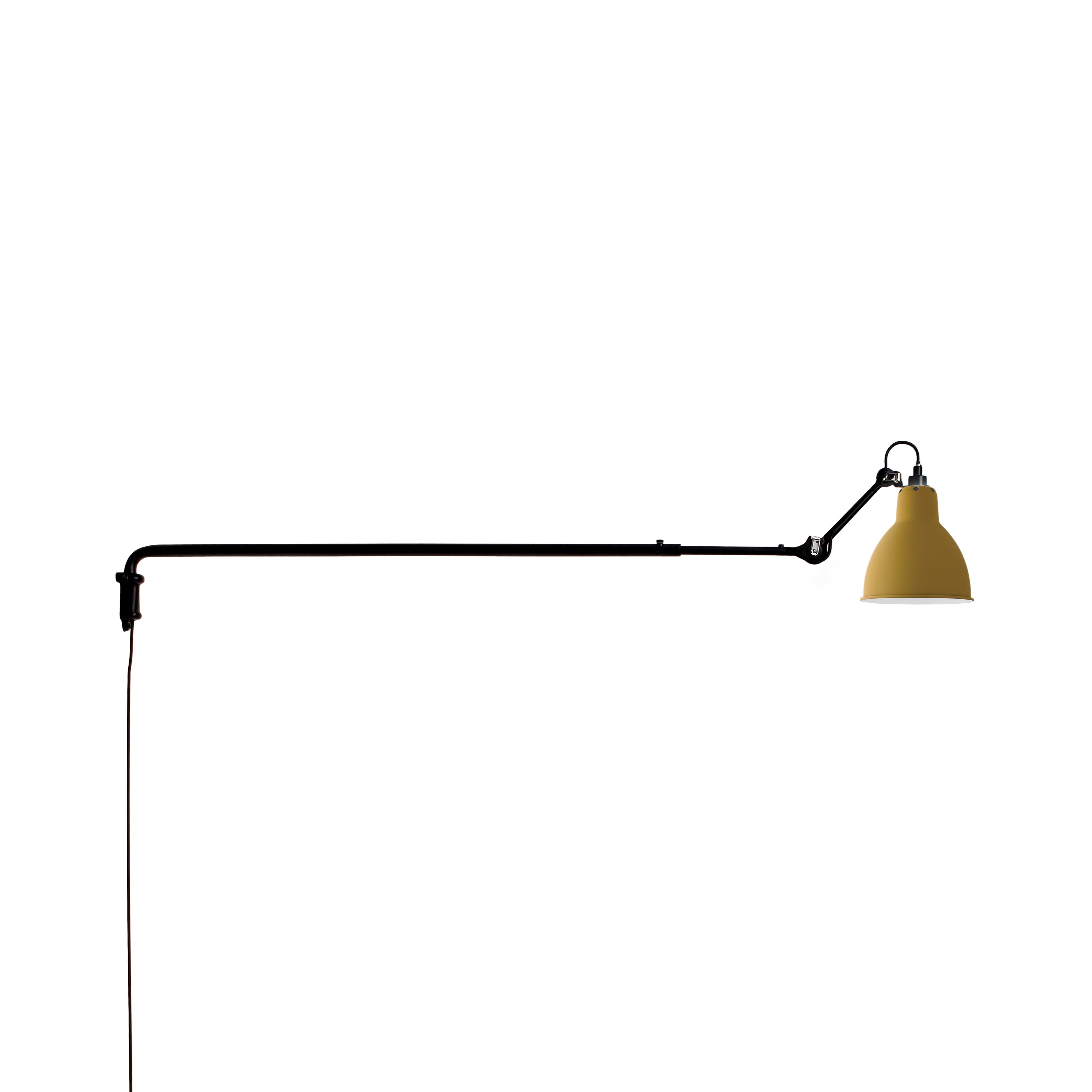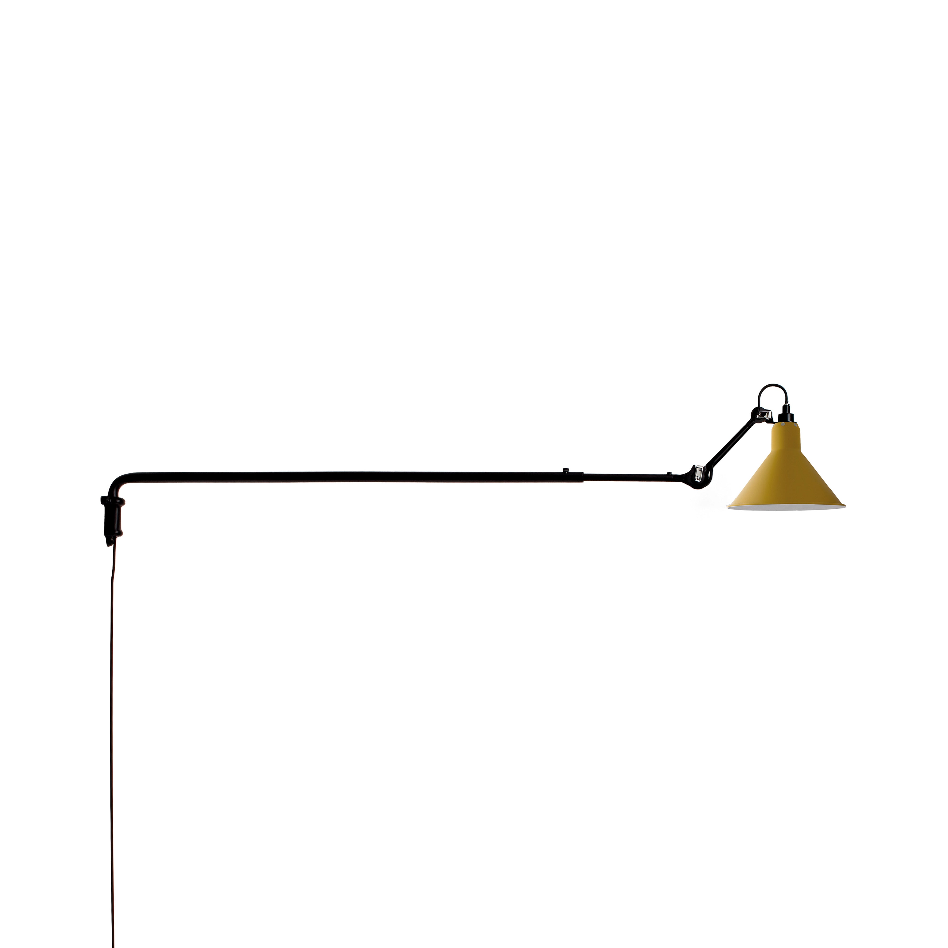 Surprisingly, the long arm of N°213 works both in smaller spaces to save floor space as well as in larger areas, where it might spotlight a desk, conversational grouping, dining table or even a piano. This variant in French designer Bernard-Albon Gras' 1921 series brings a dramatic visual sweep to his pioneering articulated lighting scheme with its usefulness in directing illumination exactly where it is needed most. With a timeless steel structure in black satin-finish, the wall-mounted lamp offers a choice of conic or round shade in a range of colors as well as chrome, copper or brass.