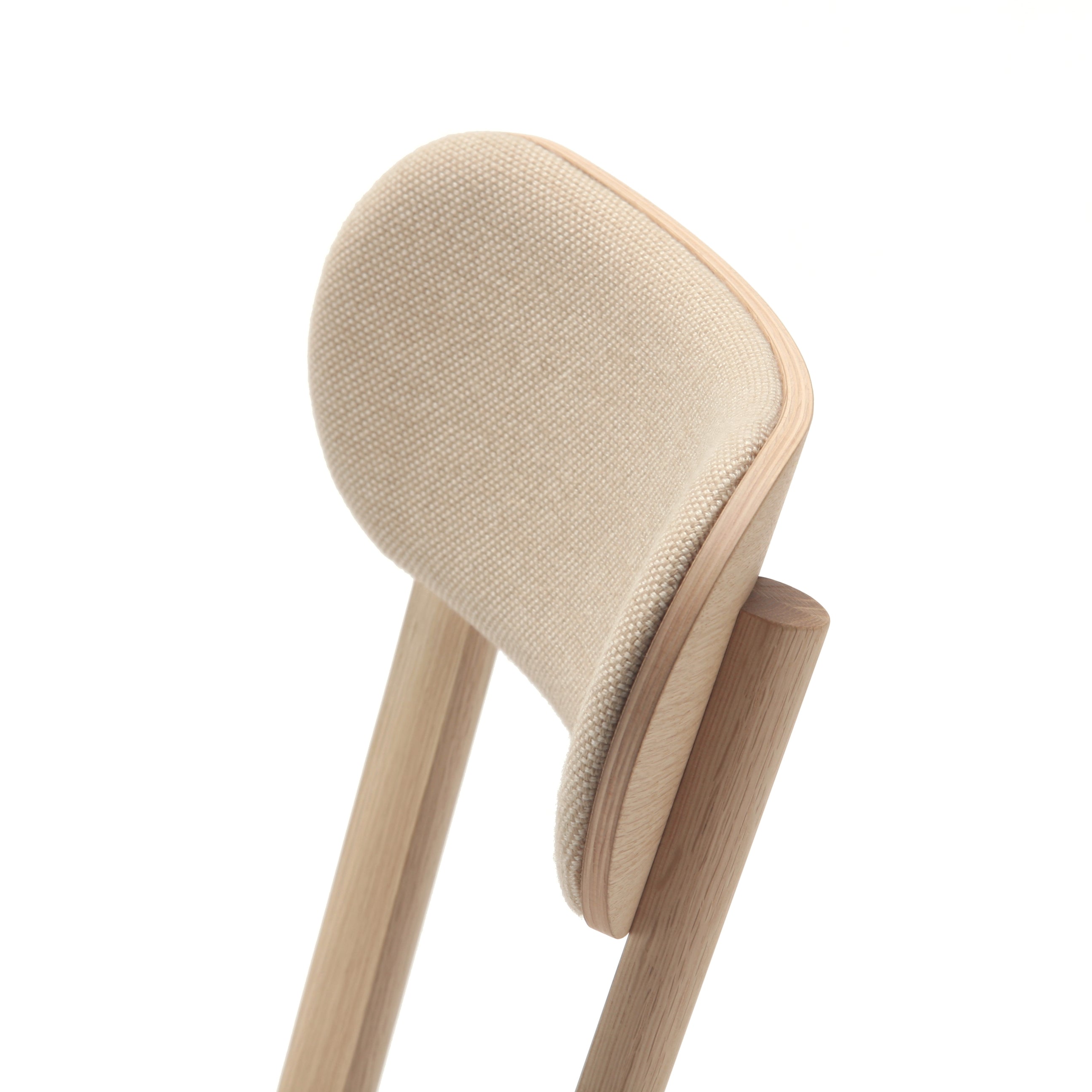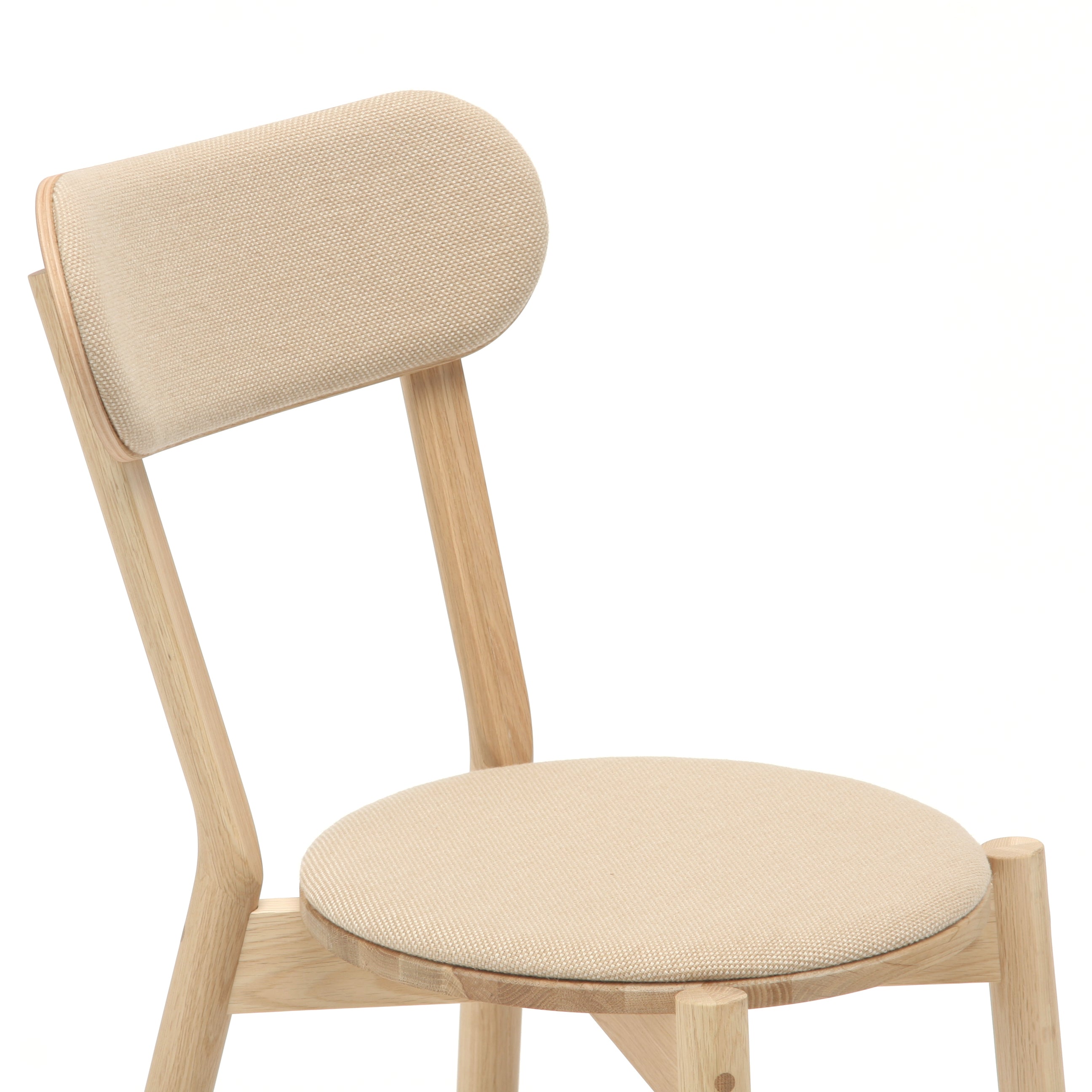 Castor Chair Pad is the upholstered version of one of Karimoku New Standard's iconic mainstays. Slim resilient cushions are attached to the carefully engineered seat and backrest for another level of seating comfort. Conceived by the Swiss-based designers at Big-Game, this modern classic is inspired by the chairs found at traditional European cafes. Sturdy but lightweight, compact yet comfortable for extended sitting, it suits domestic as well as commercial spaces. A clear-coat finish reveals the character of the sustainably sourced Japanese oak.