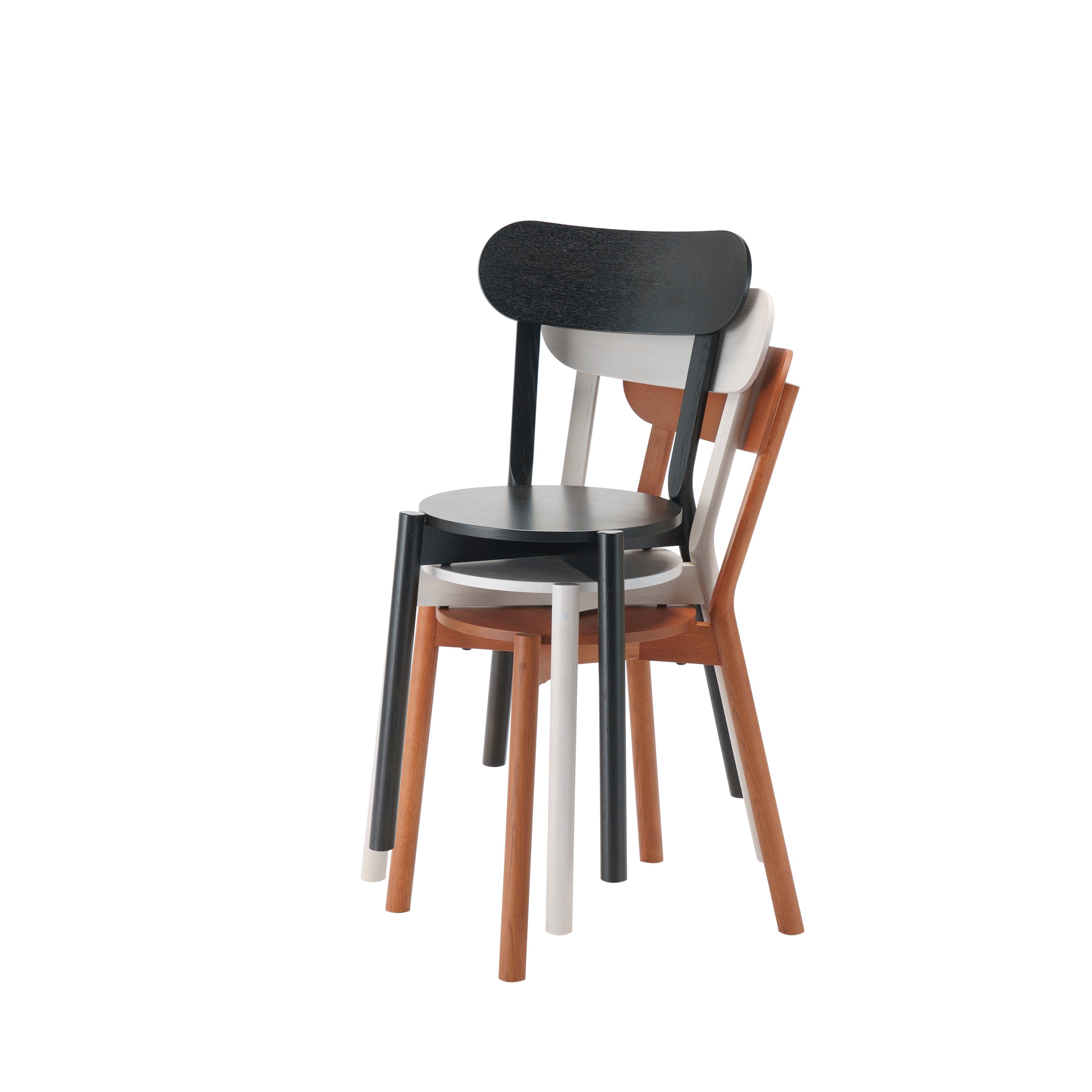 Castor Chair Stacking: Black Oak + Grain Powder White + Terracotta