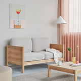The Lobby Sofa showcases soft cushions complemented by a straight, oak wood frame with a low-profile backrest. Fully modular, the sofa system allows for various configurations, making it adaptable for different settings like lobbies, lounges, or social spaces. Its versatility and refined design make it ideal for both private and public use. Availble in 1, 2, or 3 seats.