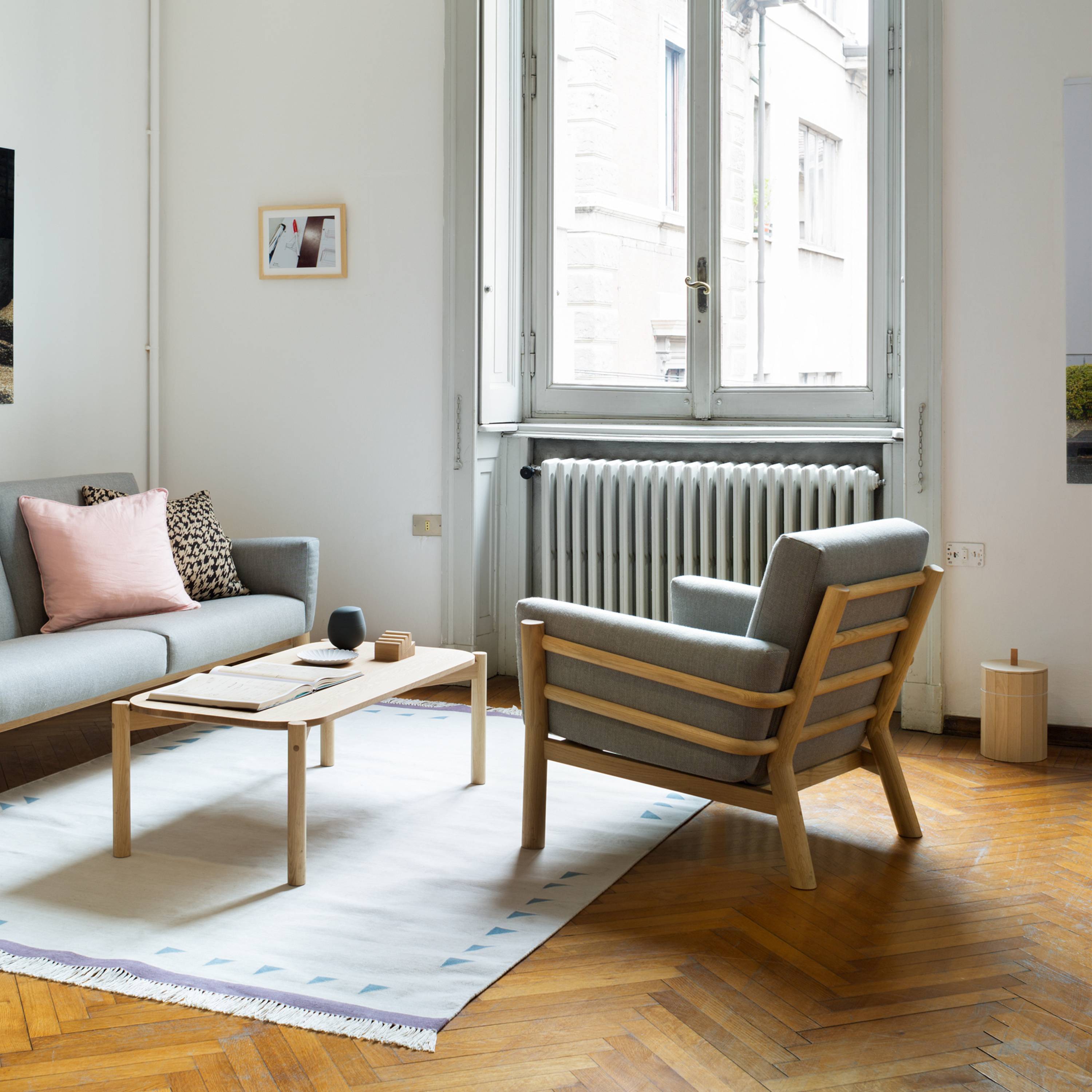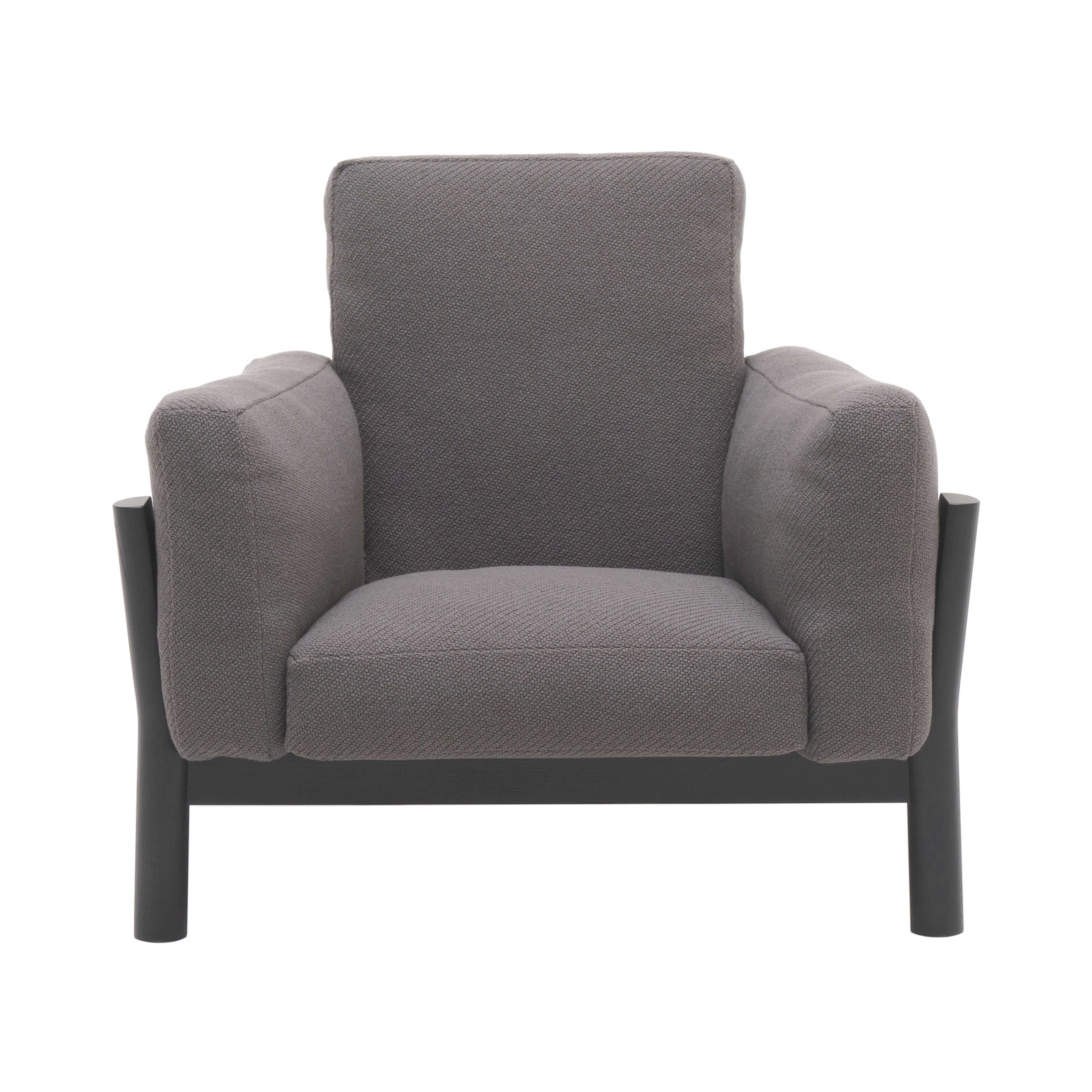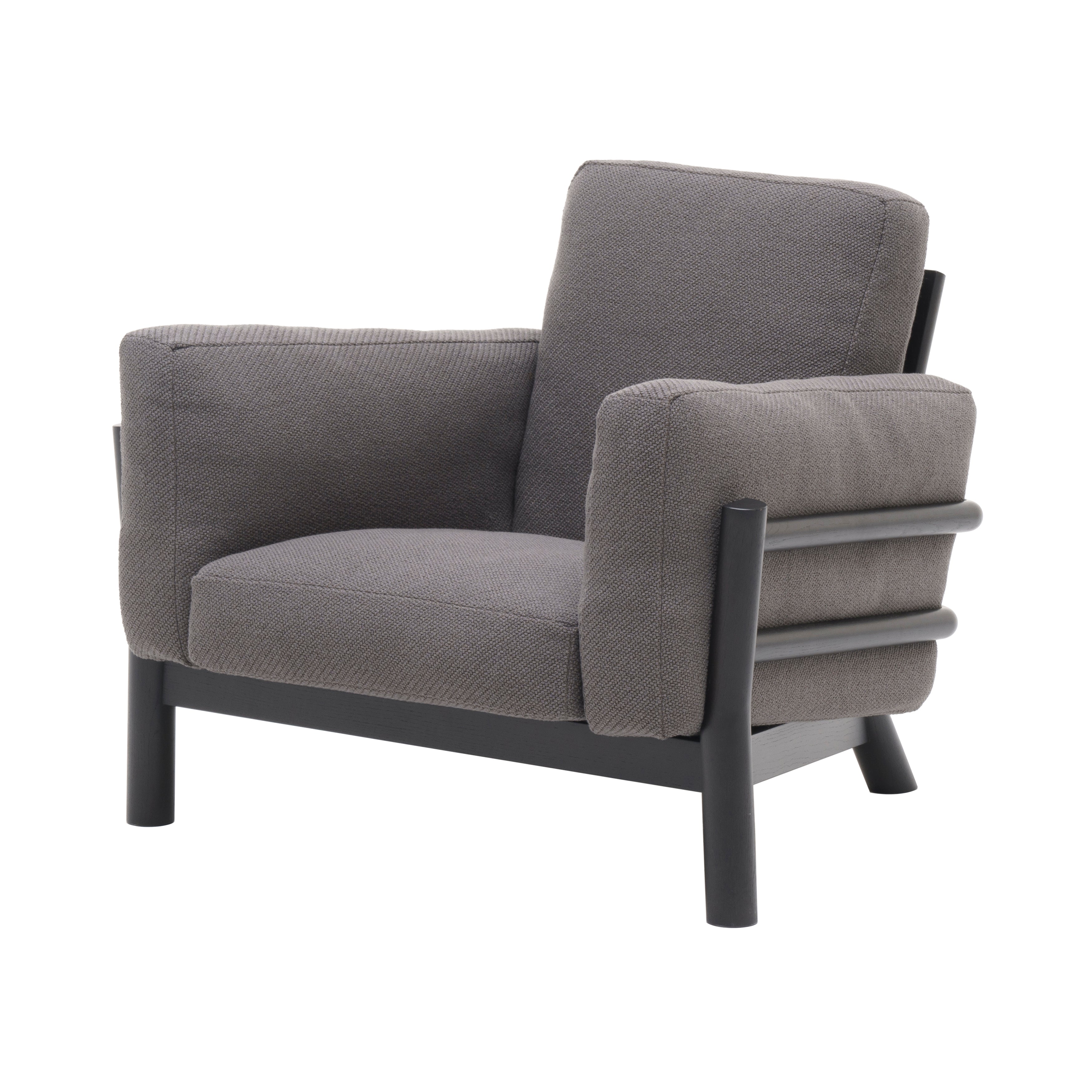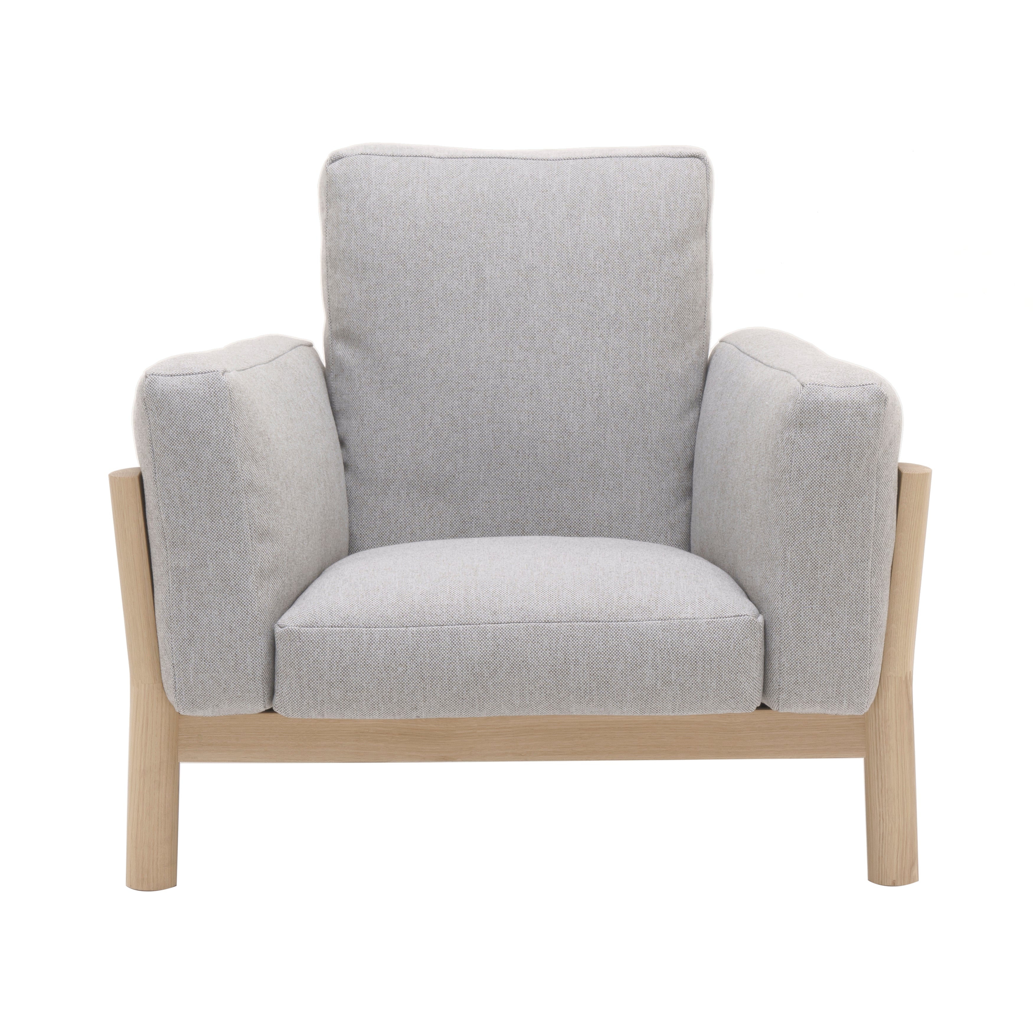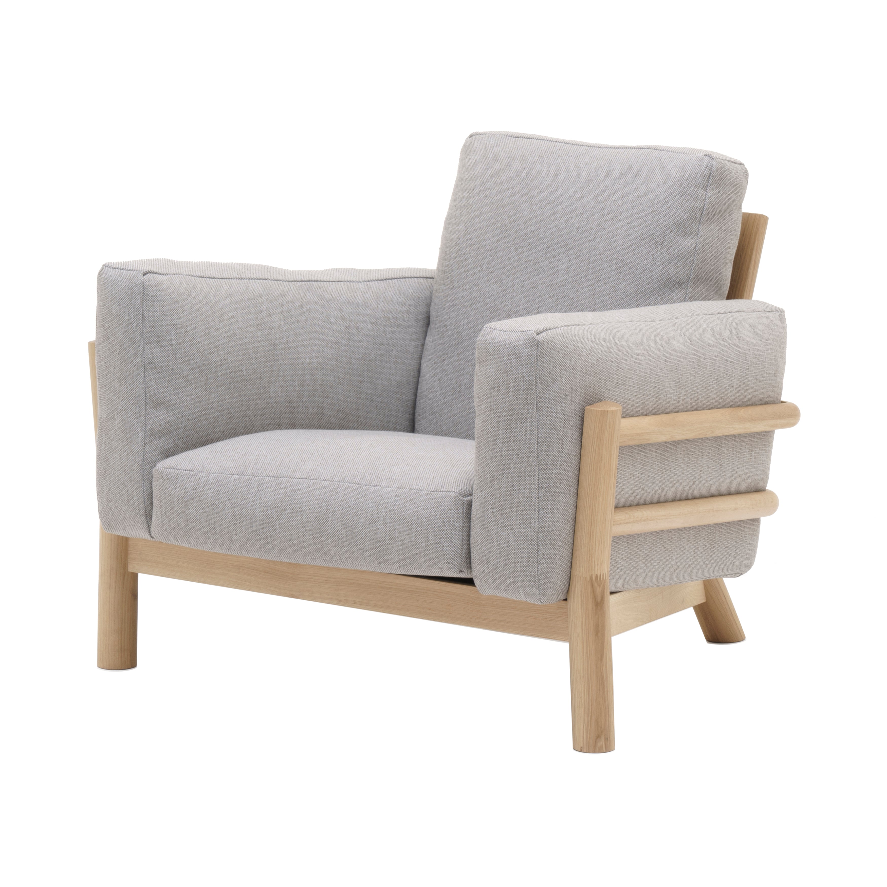 Call it a 1 seater or a lounge chair, but studio Big-Game scales down its Castor Sofa to capacious individual seating. With inspiration from Le Corbusiers classic Grand Confort with its exposed steel framework, the designers explore Karimoku New Standard's stellar heritage of Japanese wood craftsmanship with the striking solid-oak structure. Beautifully crafted and finished on all sides, it is offered in 3 wood tones, with plump cushions via a premium foam and natural feather fill and upholstered in either a fine textile or buttery leather