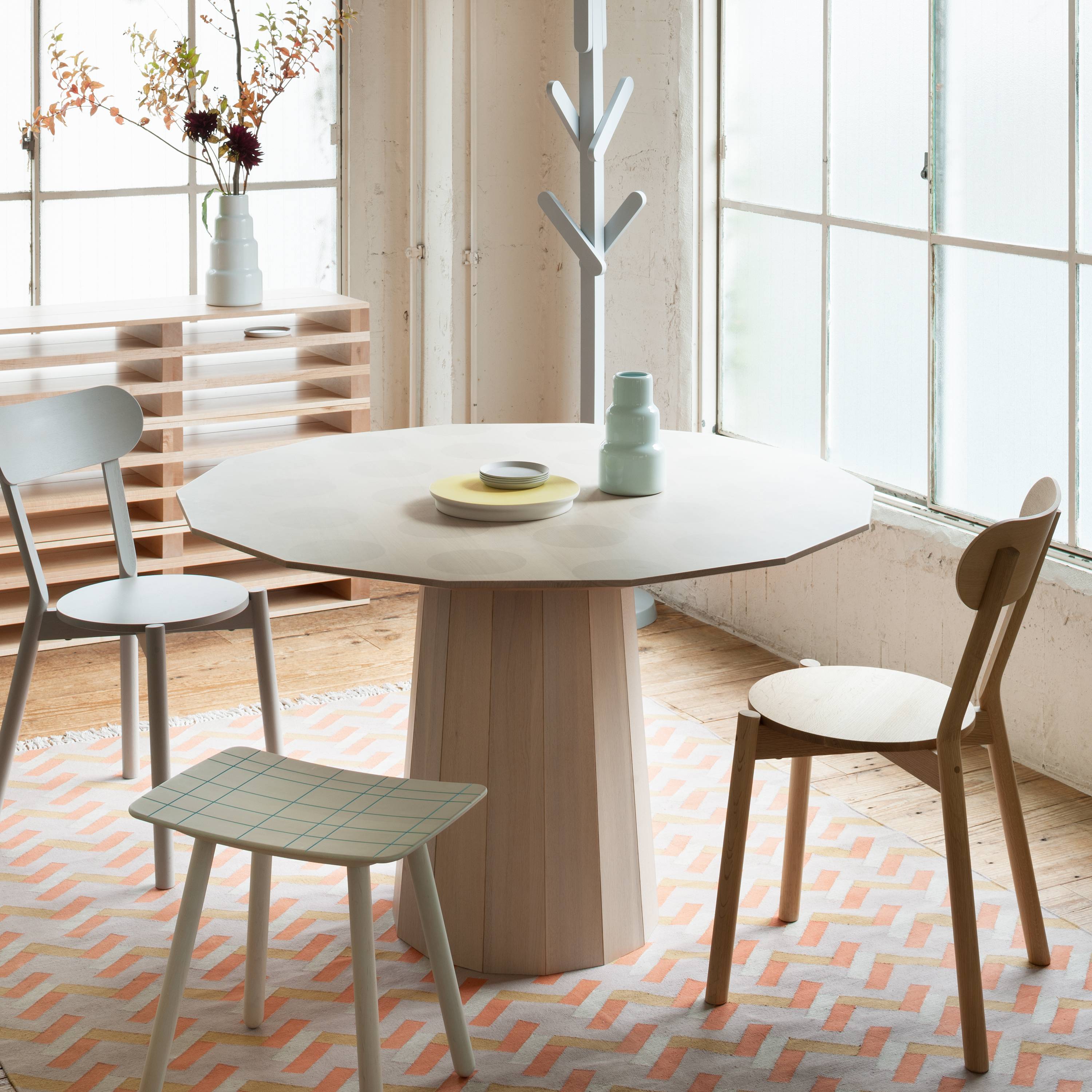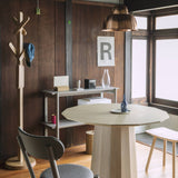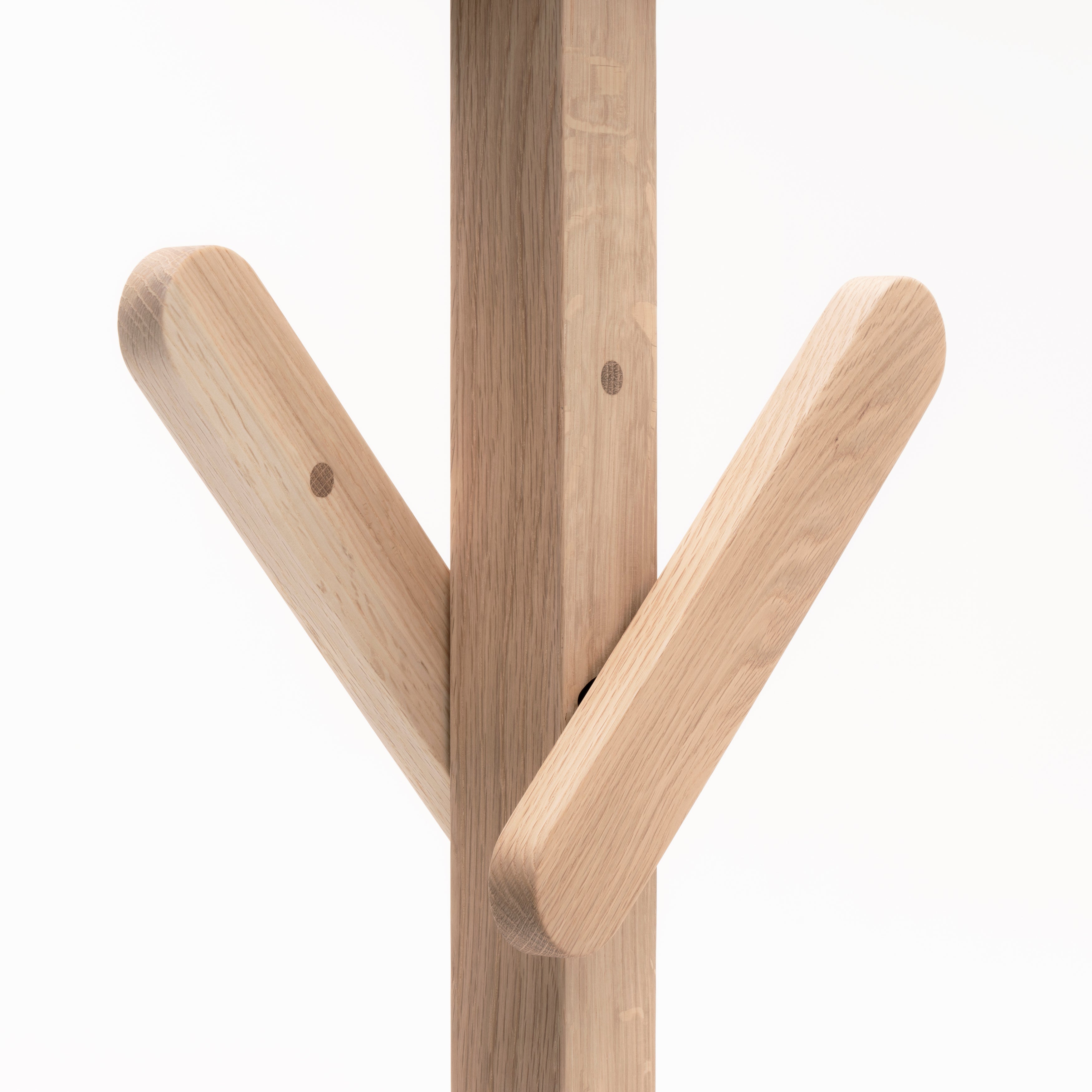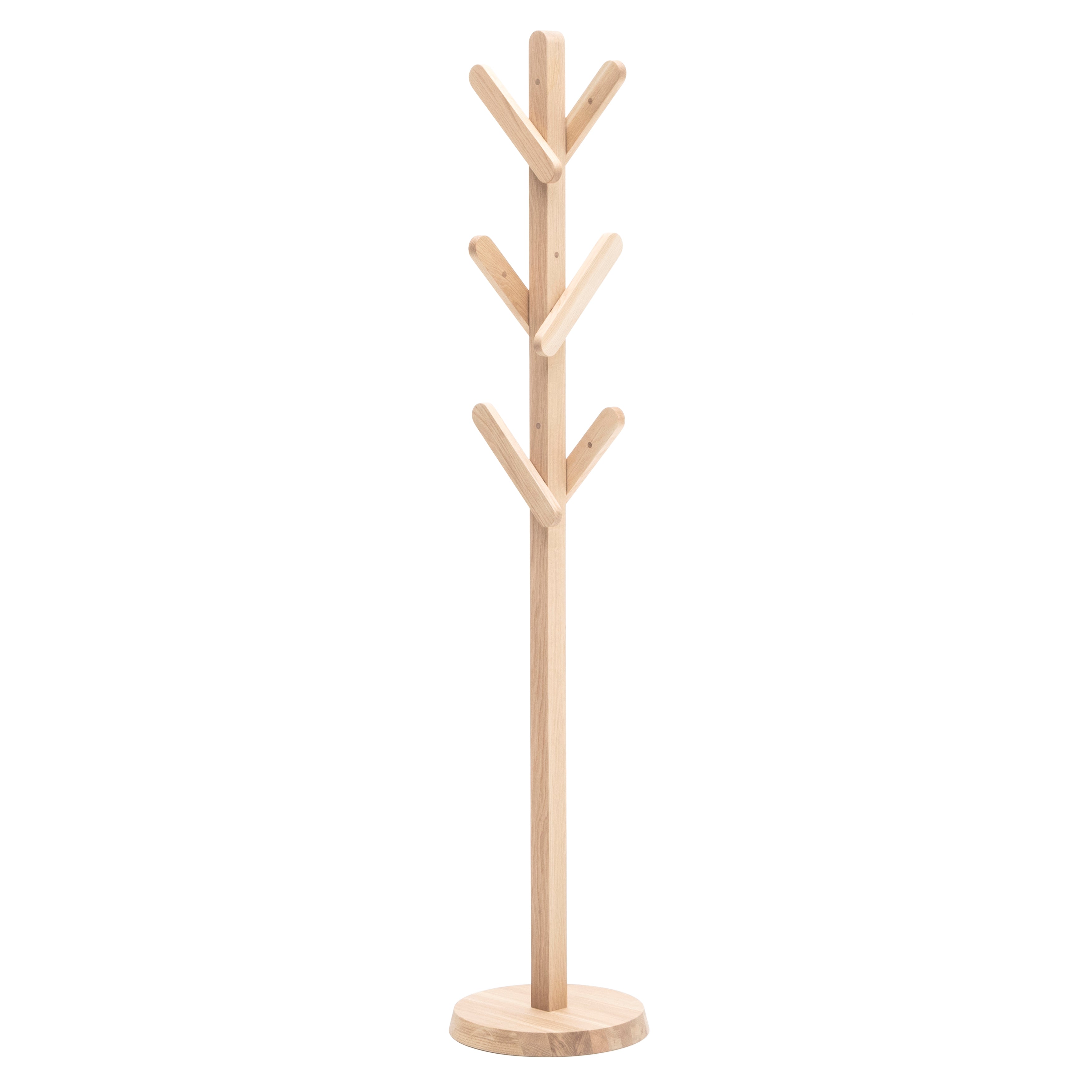 If your image of modernism is filled with dour faces and an unleavened seriousness, the international trio of designers behind Big-Game Studio will change that outlook in a heartbeat. Consider their Signs Coat Stand. Six arms attach to a central wooden post that pivots and folds out in 2 directions to form the hooks that hold coats and bags. A bonus is the amusement factor: with the arms deployed, the hall stand calls to mind the characters of an archaic alphabet. Strong magnets hidden within the 5-foot-7 (1720mm) central post hold the hooks in vertical position when not in use. Unstintingly crafted by the artisans at Karimoku New Standard in Itaya Maple, this rack comes in either a clear-coat natural finish or an opaque sky gray.
