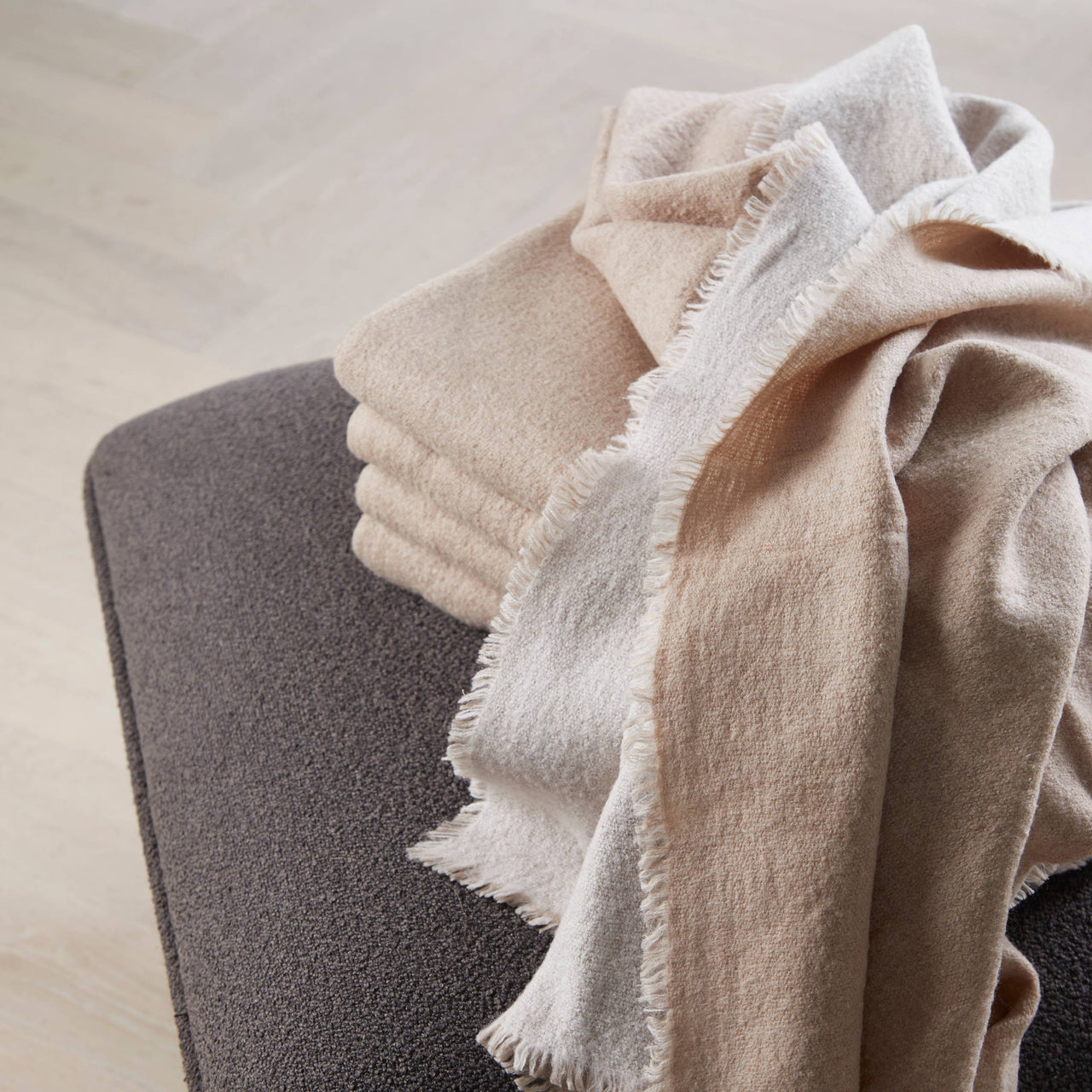 Double is a collection of soft throws, each one in a pair of woven hues displayed on the textile’s alternate sides. Crafted in 100 percent merino wool that’s warm yet lightweight, the blankets are woven in northern India, an area known for its high-quality craftsmanship and an esteemed tradition of beautiful fabrics. Studio MLR designer Marie-Louise Rosholm conceived the throw to also coordinate with the matching colors in her Weave cushions.