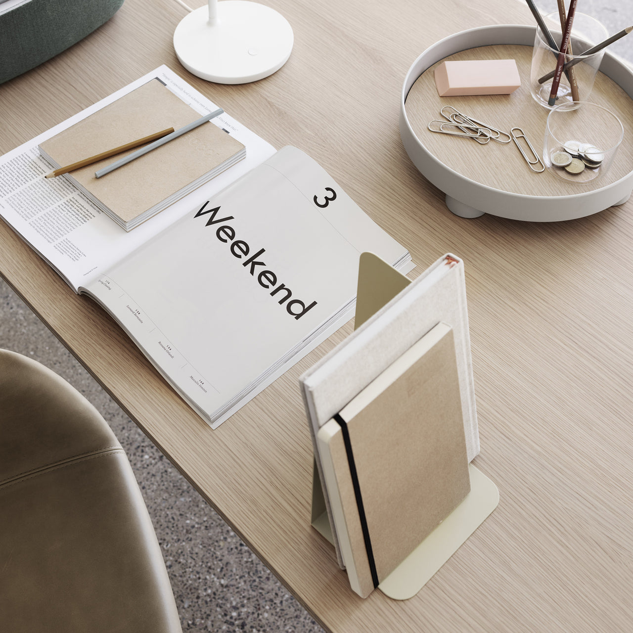 Compile Bookend is an indisputably modern read on adornment from Copenhagen-based Cecilie Manz. Rethinking a book lover's functional necessity for Danish furnishings house Muuto, Cecilie essays a versatile design that can be placed in different ways to support volumes in a range of sizes. The selection of tones will add a hint of color to any shelf or bookcase.