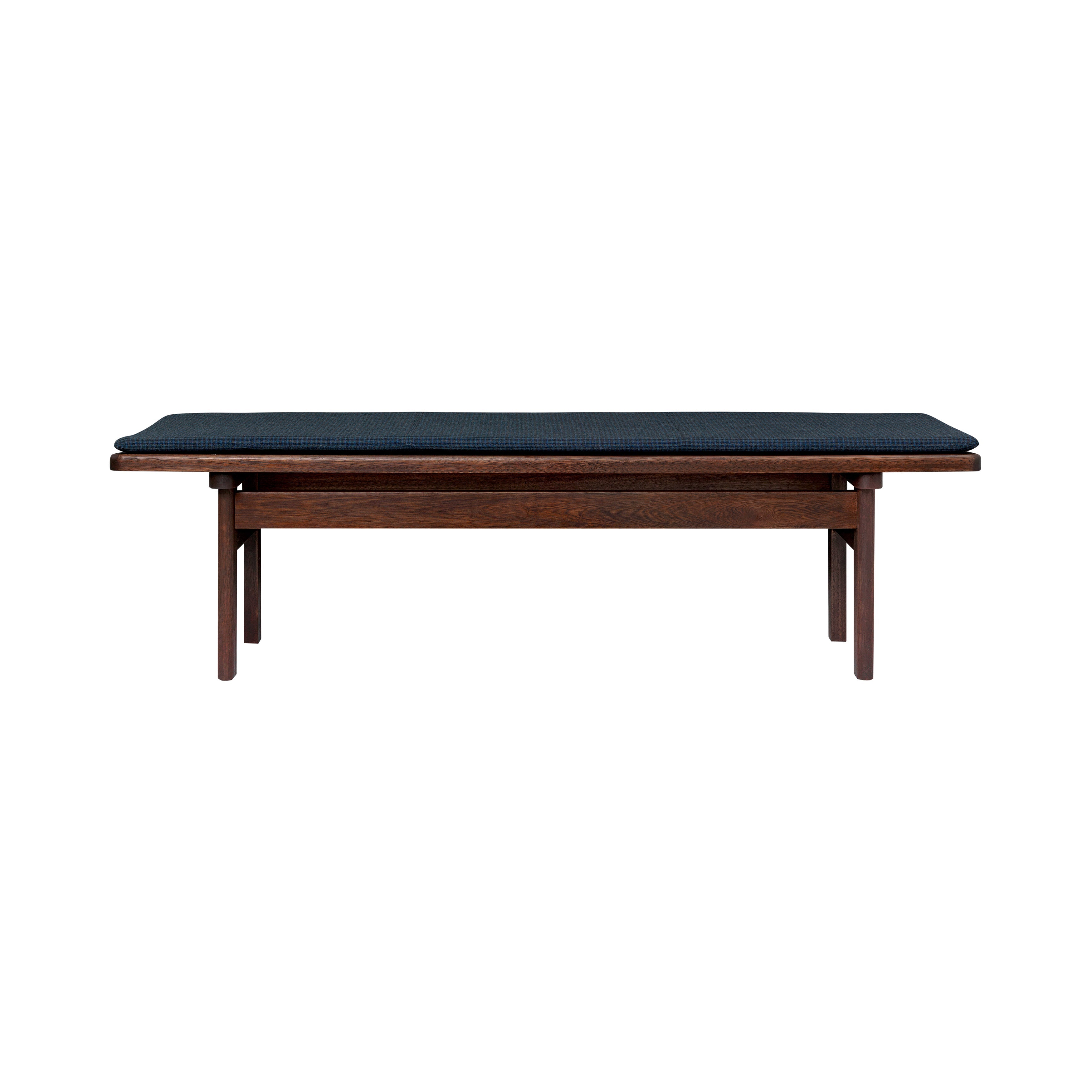 Adding to the comfort of Børge Mogensen's Asserbo, a loose seat cushion offers a choice of hardwearing textiles in this version of BM0700. Reissued in solid FSC-certified eucalyptus, with its inherent beauty and durability, it is also available with a matching wall-mounted backrest. A Danish Modern classic with a touch of Shaker simplicity, the bench has a dark oiled finish and the subtle punctuation point of brushed brass screws and is completely made in Denmark by Carl Hansen & Søn.