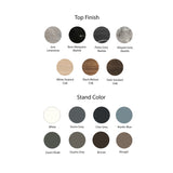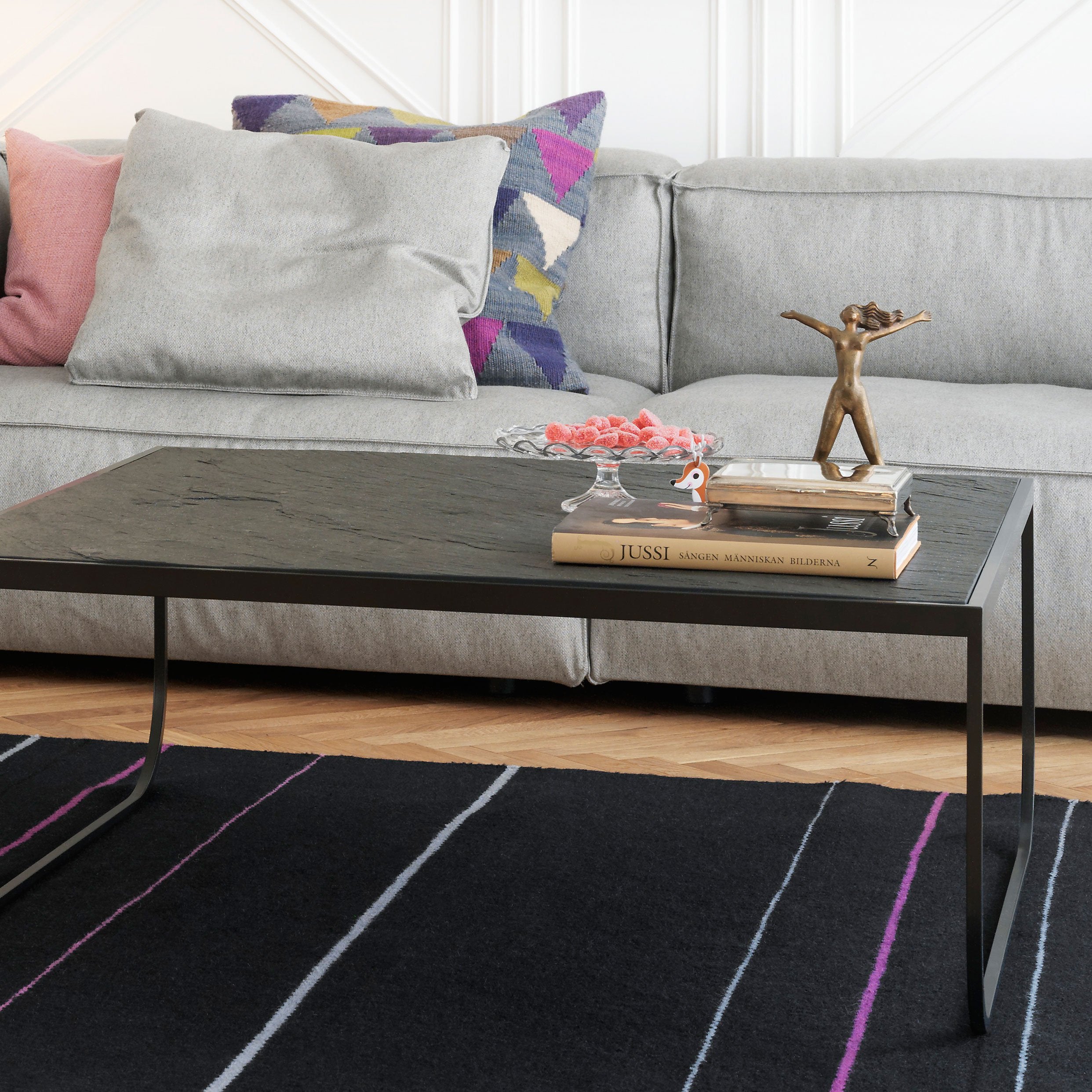 Tati’s higher coffee table hews to the collection’s signature curves and linear metal framework. Designer-architects Mats Broberg and Johan Ridderstråle deliver a versatile piece to use as a cocktail table, a lounge-y dining surface or to slide together as a dynamic duo with its lower counterpart. Stockholm-based Asplund offers a wealth of enticing tabletop choices—in several wood varieties and genuine limestone or marble selections—to complement the range of lacquered metal frame colors.