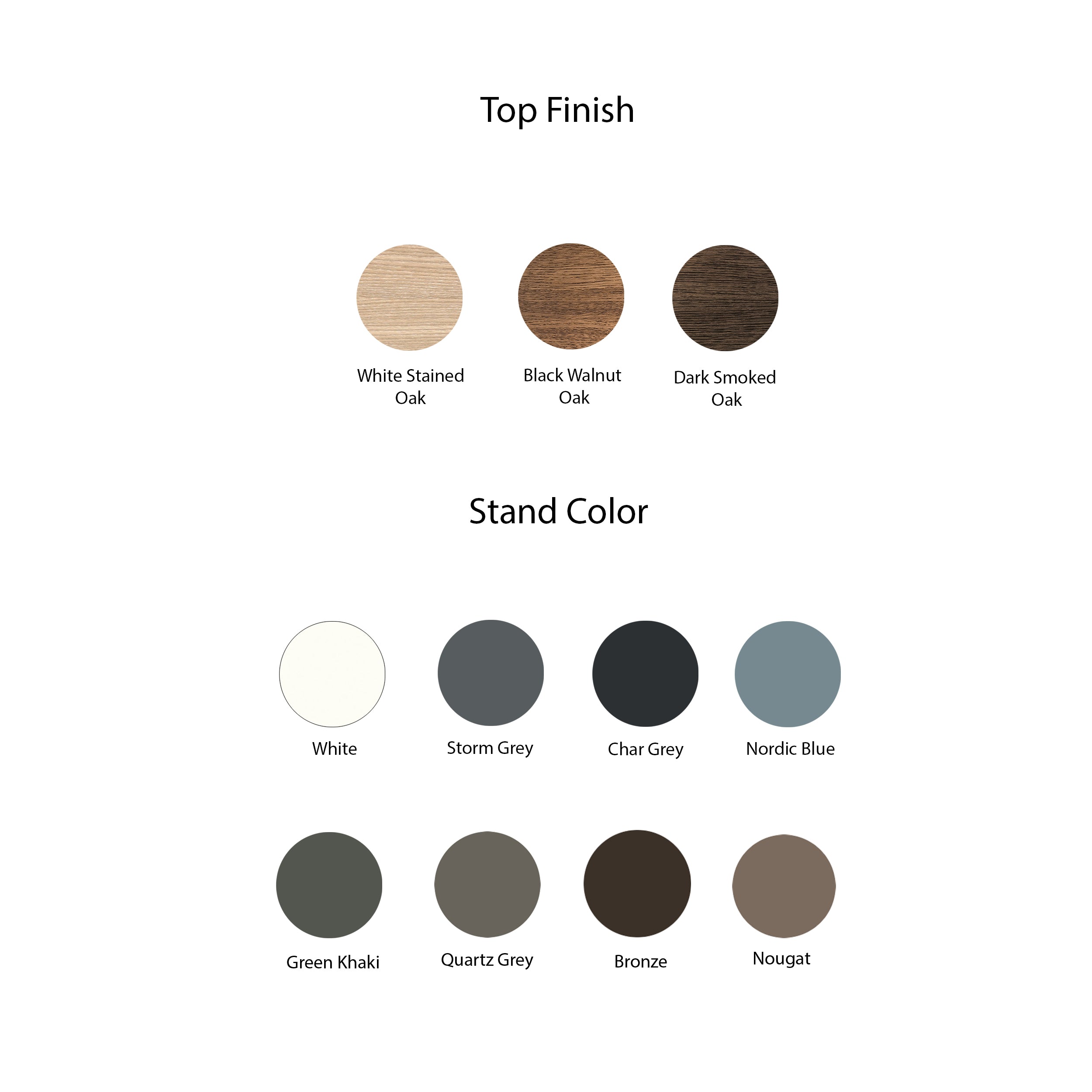 Solid oak in a range of stained finishes makes for a rich tabletop accompaniment to Tati's signature curvilinear metal frame. Stockholm-based Johan Ridderstråle and Mats Broberg adapt their series as a square coffee table that comes in 2 heights, with the slightly narrower lower model designed to slide into the taller one in a pairing if desired. Choose from black walnut, dark smoked or white stained finishes to complement the selected color for the powder-coated base.