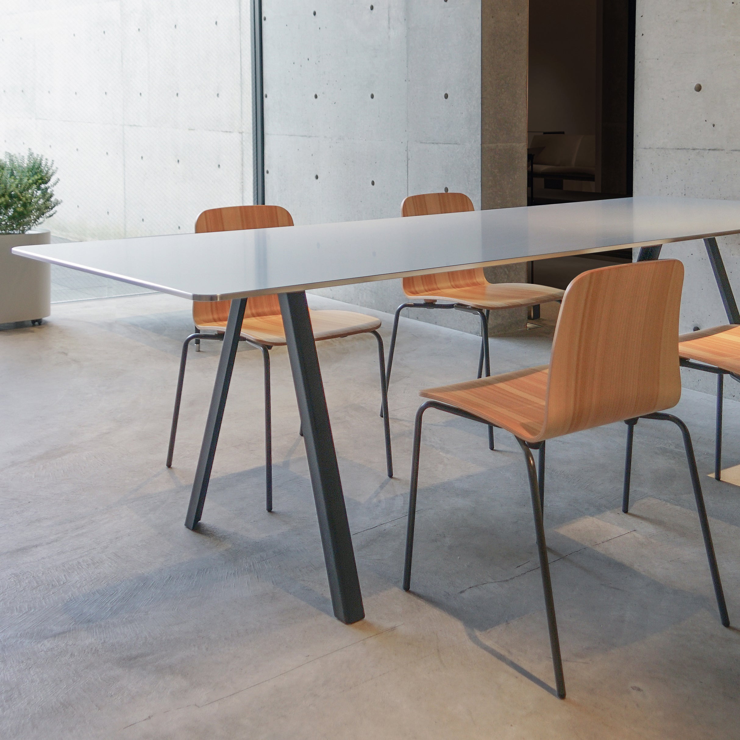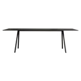 An outdoor version in the Aluminum Table System series features angled pipe legs paired with the signature featherweight but remarkable strong tabletop in ultra-thin aluminum honeycomb. Japanese designer Keiji Takeuchi exploits the precise technology of the airplane-graded material by anodizing the entire top panel after machining for an appealing shine. In silver or black finish with contrasting or matching elements, the table has a simple screw-in construction for easy DIY assembly.