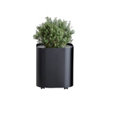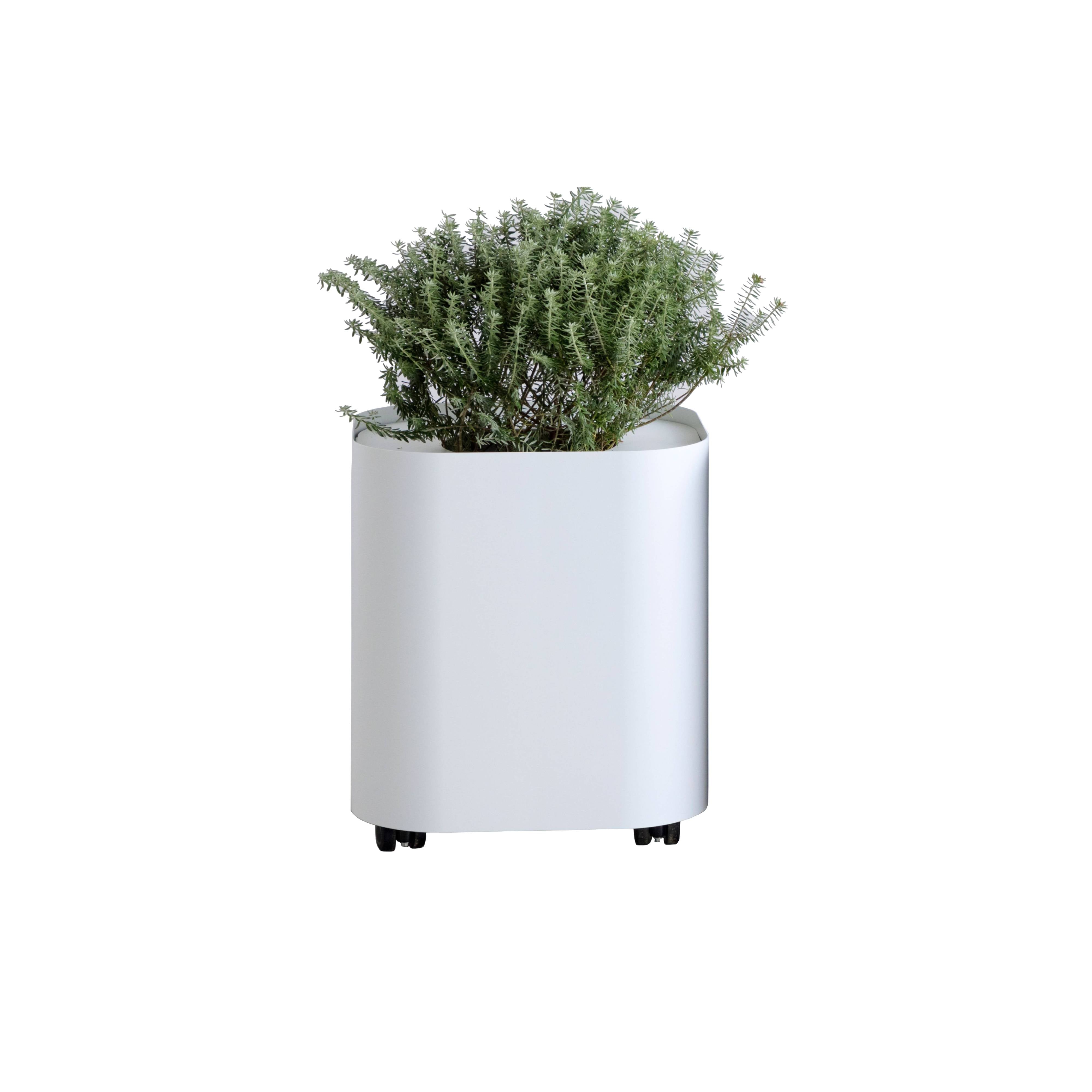 In a version for outdoor use, By Interiors adapts Keiji Takeuchi’s rounded-edge modular design with a special steel powder coating to withstand the elements and a fixed-glide base. Loaf Planter is also equipped with a matching inset steel top with a wide hole for framing the foliage and comes in a choice of crisp black or white.
