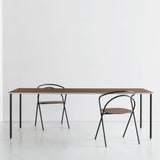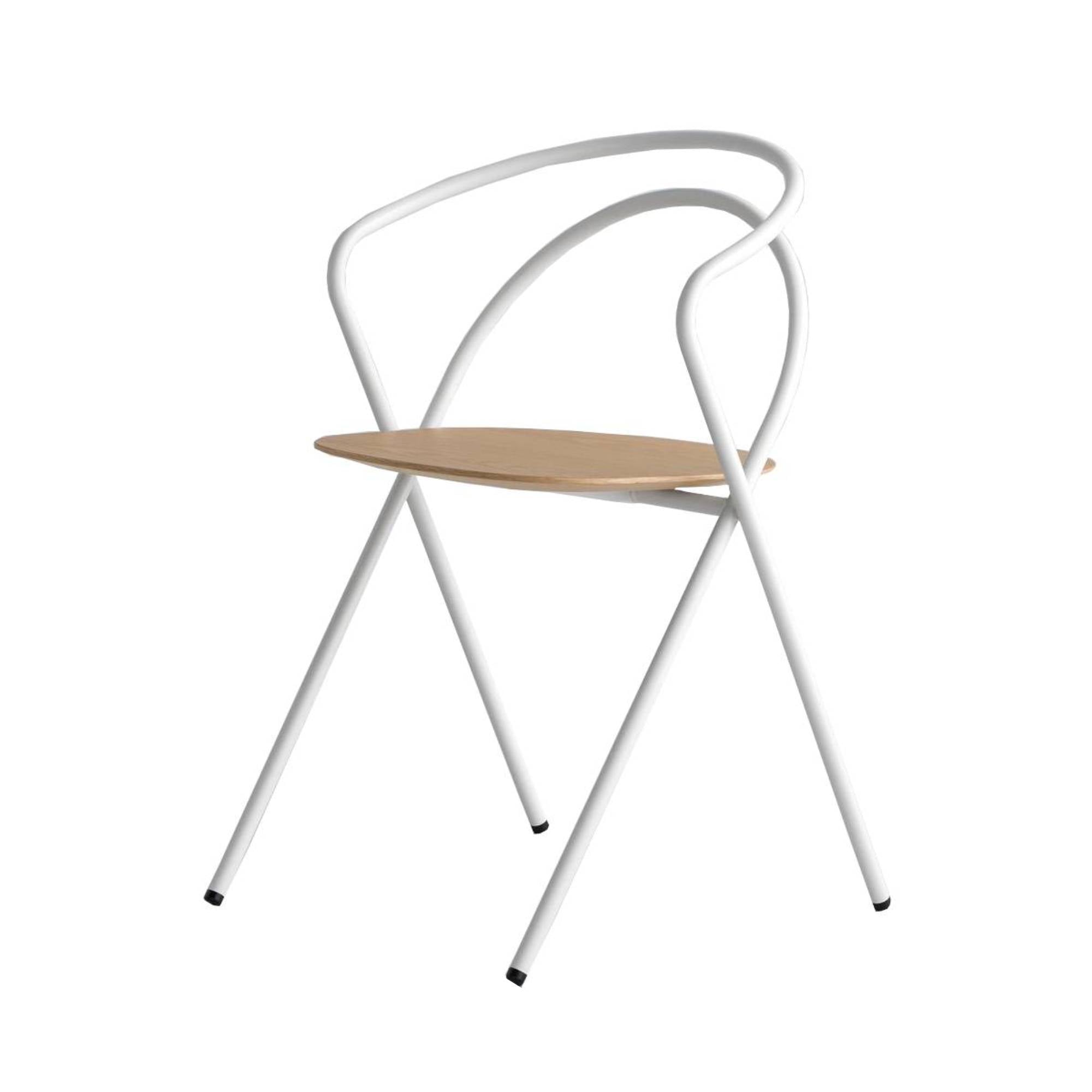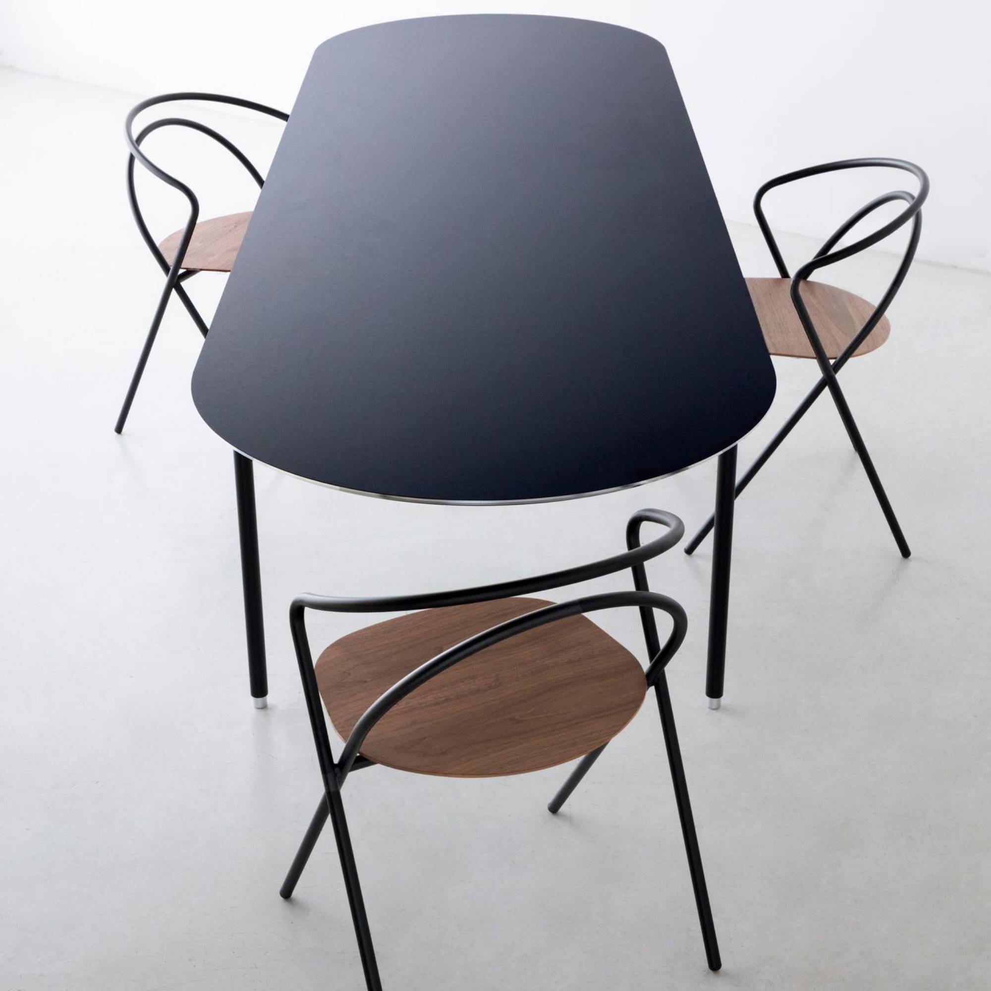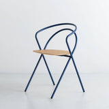 Sleek and stackable, Minima transcends the usual seating of that genre with a fully developed shape in a smooth continuum of 2 lengths of thin steel pipe. Combining fluently curved and straight lines, Spanish design studio MUT assures seating with a unique presence that also melds with a variety of spaces and architectural styles. A powder-coated frame in white, black or ink blue and seat choices in oak or walnut provide varied options for the chair, which can be stored when not needed, stacked up to 5 high.