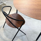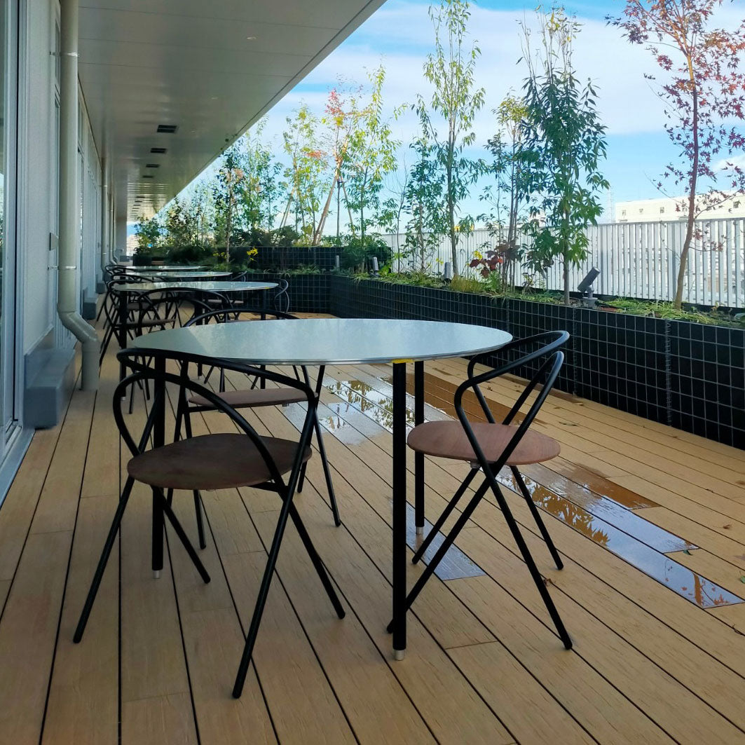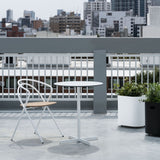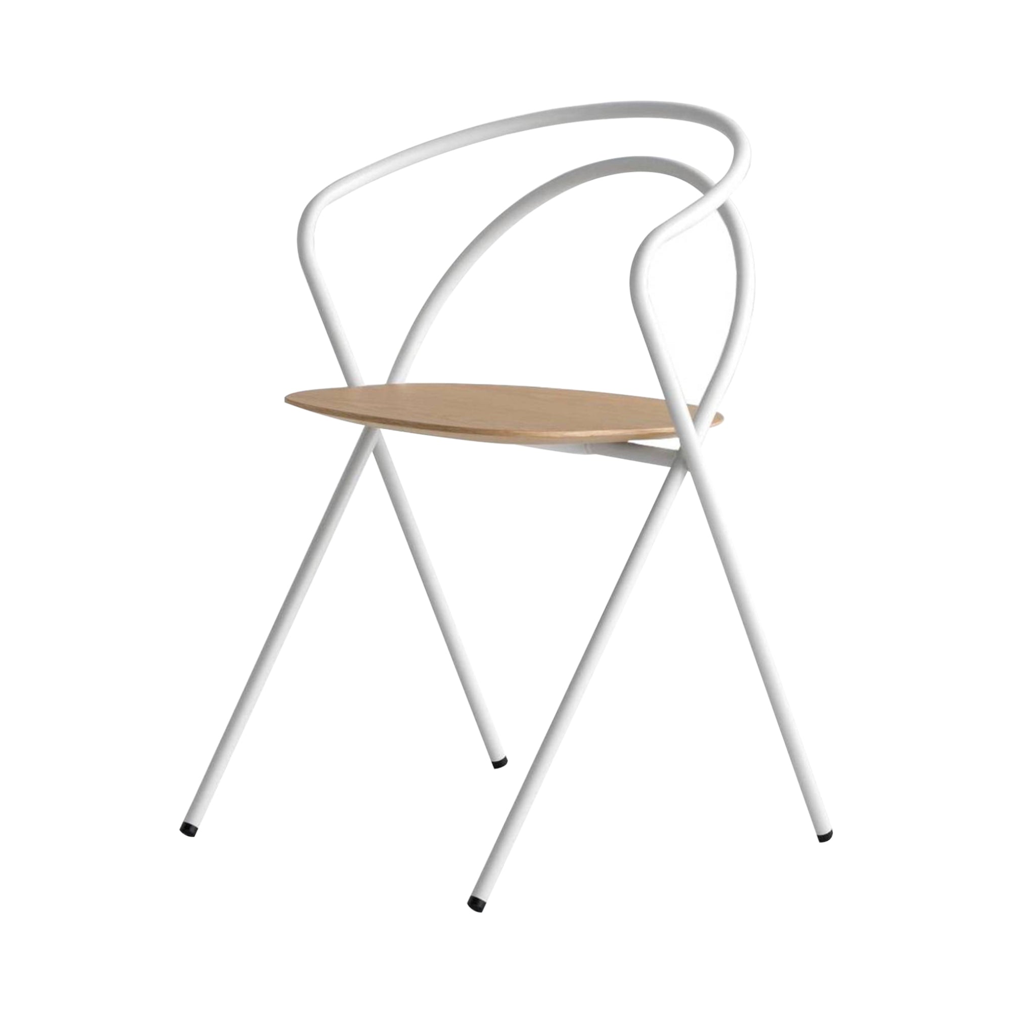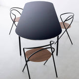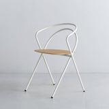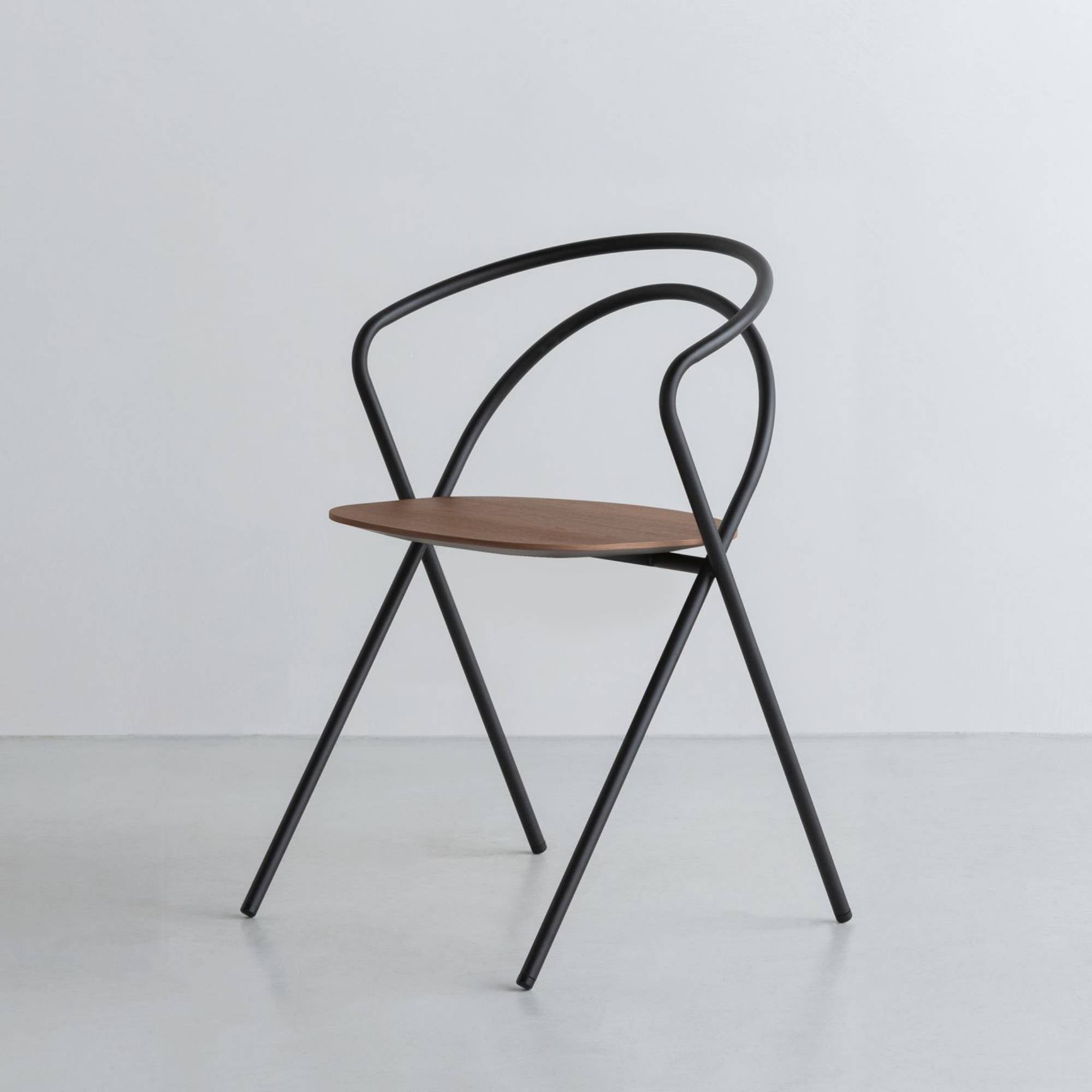 Minima easily translates to an outdoor version that, like its interiors counterpart, is appealingly spare but also conveniently stackable up to 5 chairs. With the charm of a quick sketch, Spanish studio MUT contrive 2 sections of thin steel pipe to create continuous curved and straight lines, keeping materials to a bare minimum and letting the geometric shape speak for itself. The weatherproof powder-coated frame and walnut or oak seat are specifically designated for outdoor use.