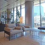 Japanese designer Tomoyuki Sakakida adds a spare but sumptuously padded sofa to his Suki range with its singularly angled style. The collection's moniker refers to the deliberately edited juxtaposition of seating elements, with the cleanly geometric steel frame in either antique brass-plate or inky Urishi powder-coat finish. Plump cushioning and an angled backrest promise extended comfort while a choice of upholstery in fabric or leather adds customized appeal.