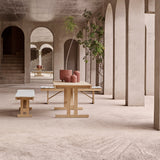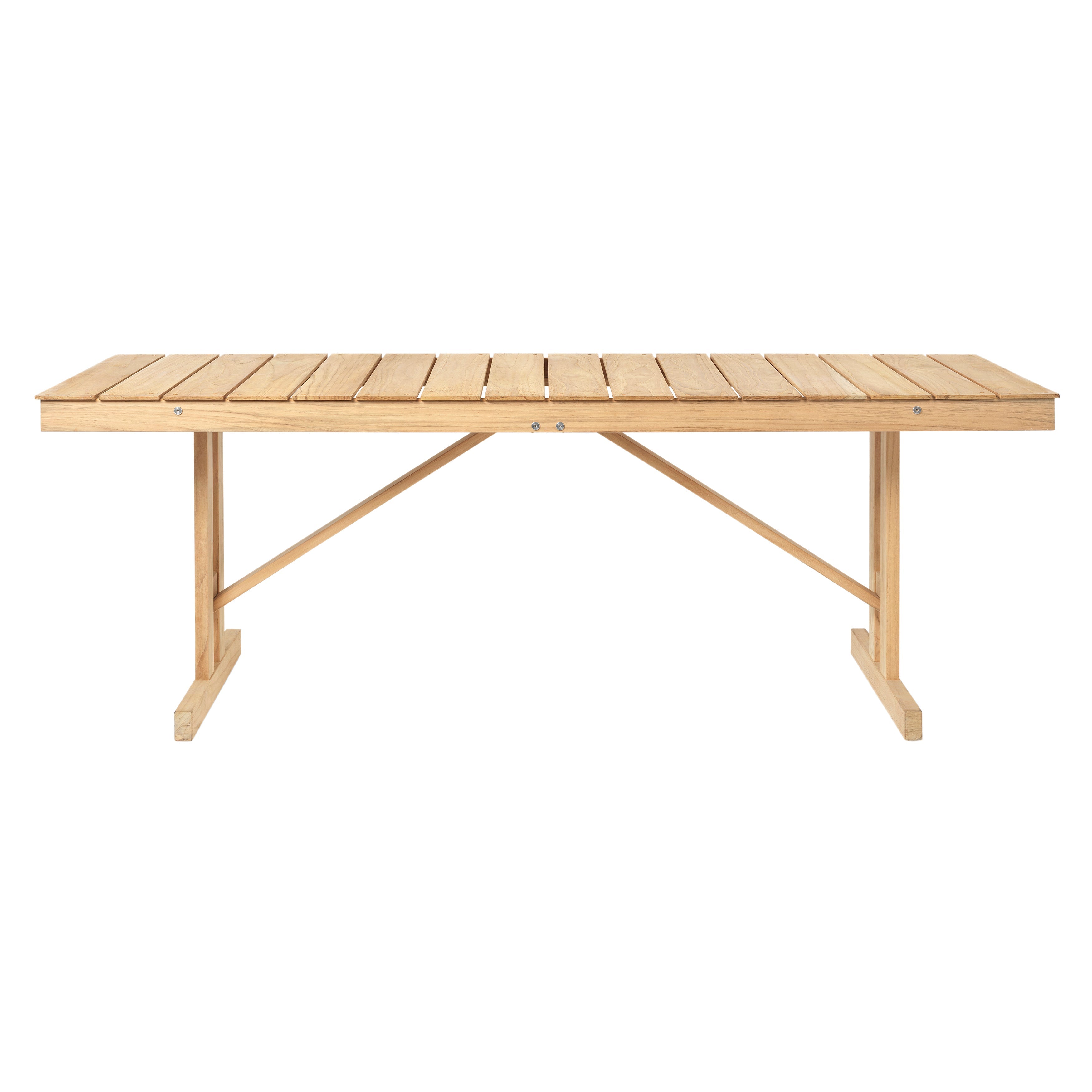 Reworked to today's sensibilities by Carl Hanson & Søn, designer Børge Mogensen’s foldable outdoor table was introduced back in 1971. Set on a sturdy but elegant wooden frame, graphic slats create a durable and decorative surface and both the table and corresponding bench (also at A+R) neatly stow away when not in use. Crafted in untreated FSC-certified teak, the durable design withstands wear and weather conditions, aging gracefully over time to an elegant silver-grey hue.