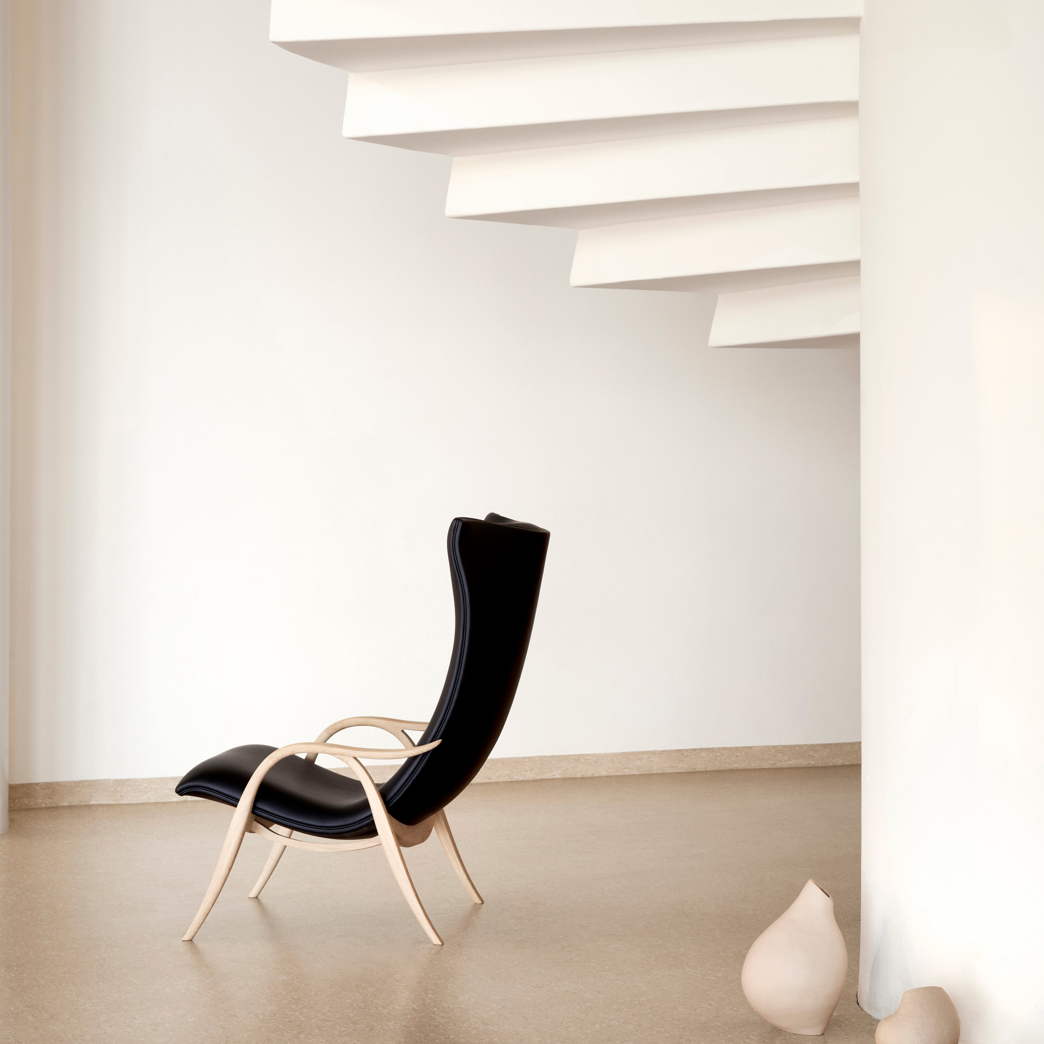 Frits Henningsen’s lounge chair entrances with eye-catching simplicity and sweeping lines, capping the distinguished Danish designer's career in 1954. Fewer than 20 pieces were originally produced until it was more recently reintroduced with painstaking care by Carl Hansen & Søn. Aptly named, Signature's graceful, curved form in solid walnut or oak with its floating armrests and fabric- or leather-clad contours beckons with inviting comfort.