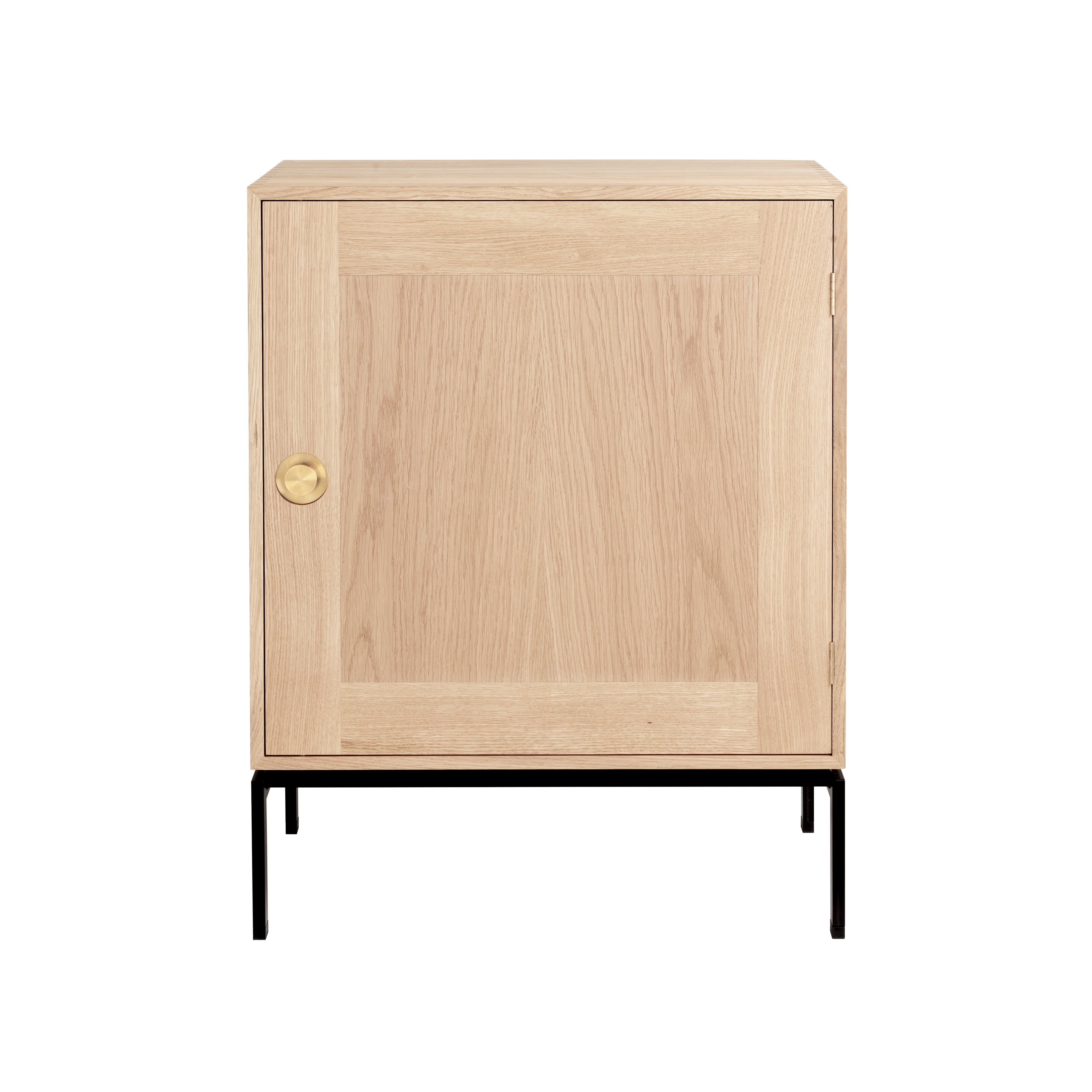 Designers Preben Fabricius and Jørgen Kastholm devised their FK63 storage with a variety of flexible-use modules including this foundational standing cabinet. The deeply proportioned piece with a single door is a functional minimalist design focused on handcrafted details and natural materials. Beautifully crafted by Carl Hansen & Søn in FSC-certified solid and veneer oak with black powder-coated steel legs, it comes in a choice of oiled finishes to accentuate the texture and grain of the wood.