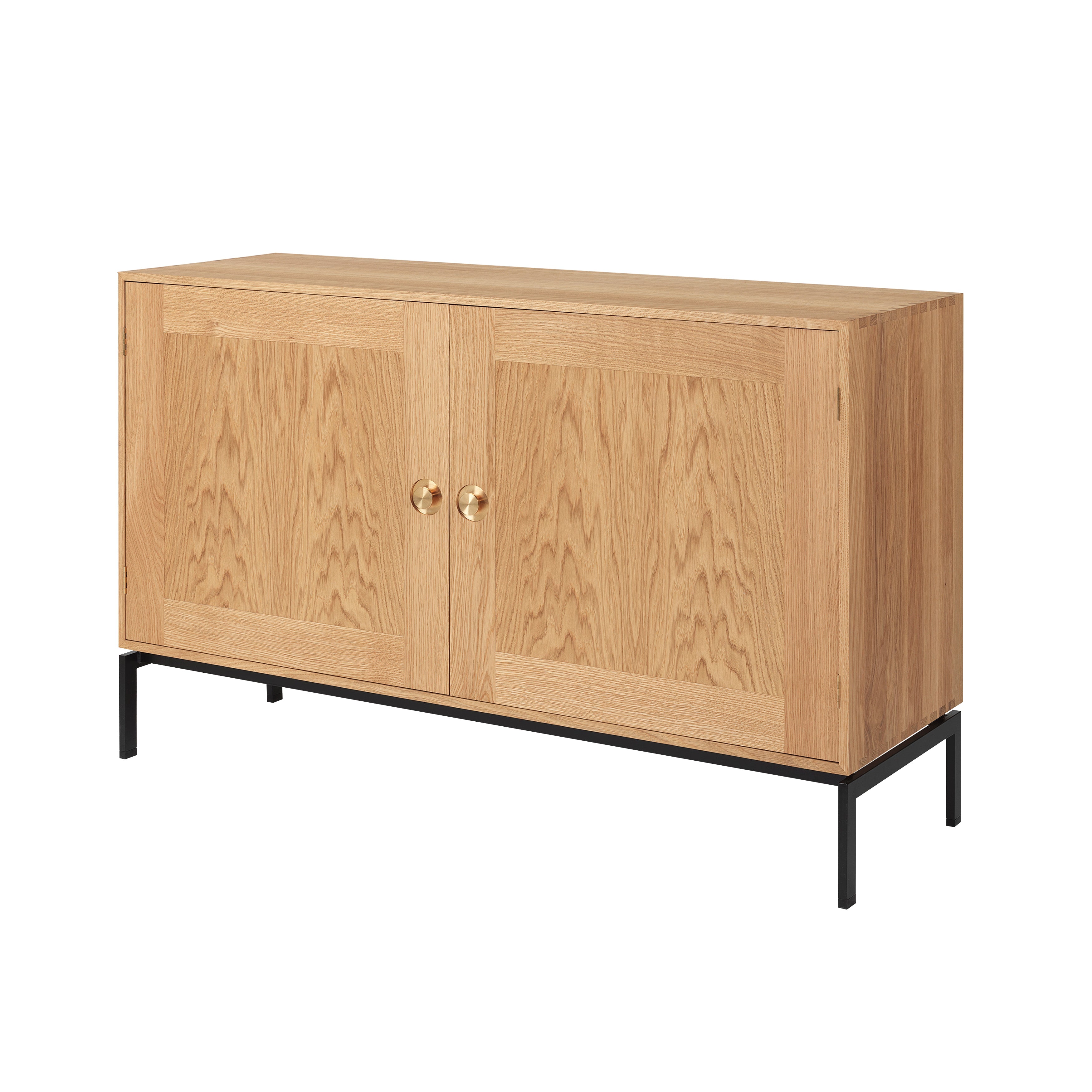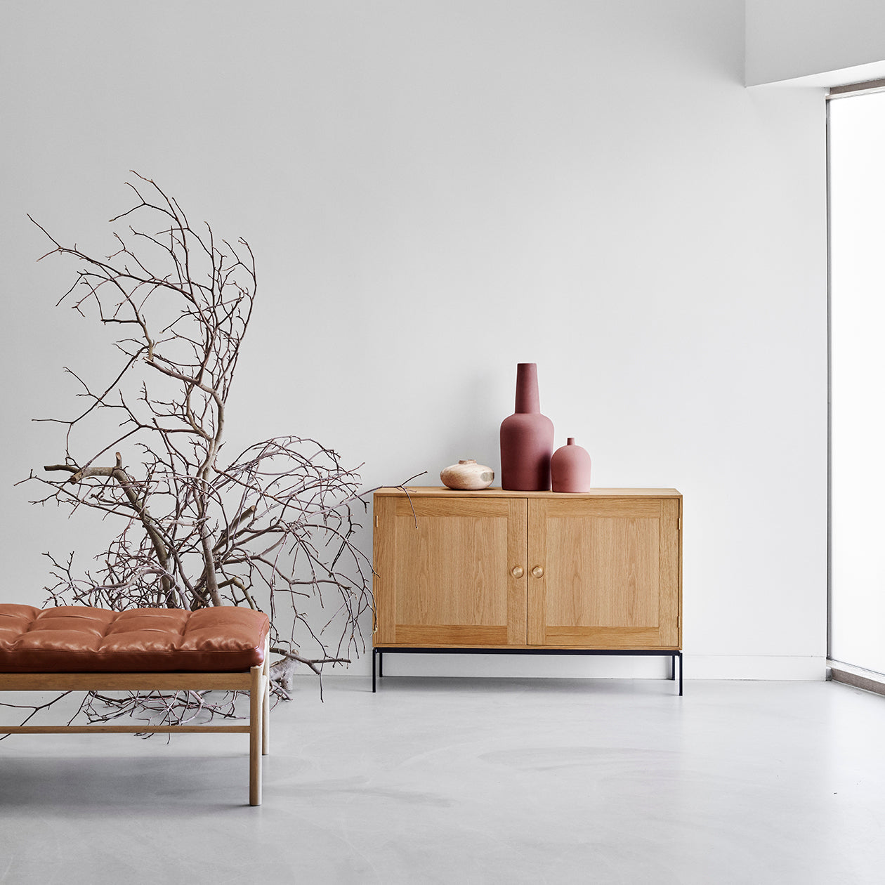 The FK63 storage series by Preben Fabricius and Jørgen Kastholm adds a double-wide cabinet with doors, a key piece on its own or a foundation for multiple-unit configurations, gorgeously realized by Carl Hansen & Søn. The deeply proportioned confines offer plenty of storage space in a minimalist guise, handcrafted in FSC-certified solid and veneer oak with black powder-coated steel legs, offered in a range of oiled finishes to accentuate the woodgrain and texture.