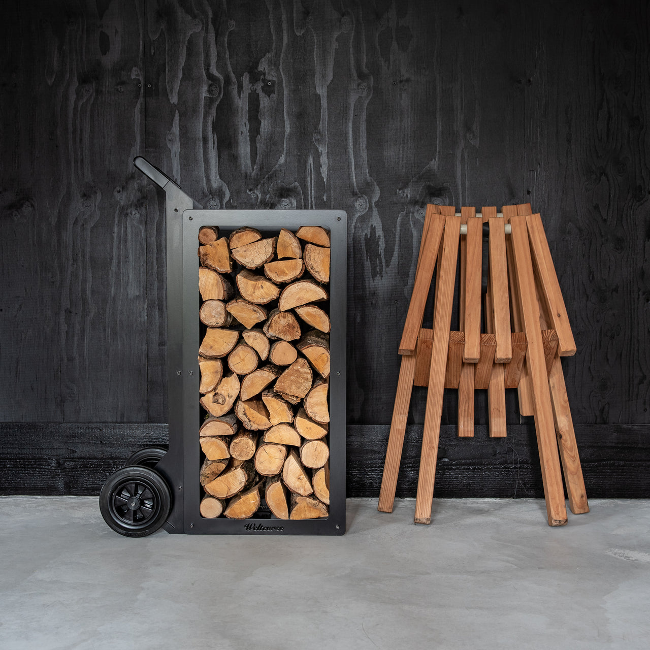 It’s doubtful there is a more elegant way to transport and store firewood. Woodstock Frame, an elegant bin for stacking logs, and Trolley, for moving the supply with ease, are available separately or as a set. The trolley has small grooves and integrated hooks to fit Frame as well to safely transport larger cargo like stacked crates or even Weltevree’s Outdooroven. Designer Dirk Wynants’ minimalistic duo is smartly crafted in zinc-plated and black powder-coated steel.